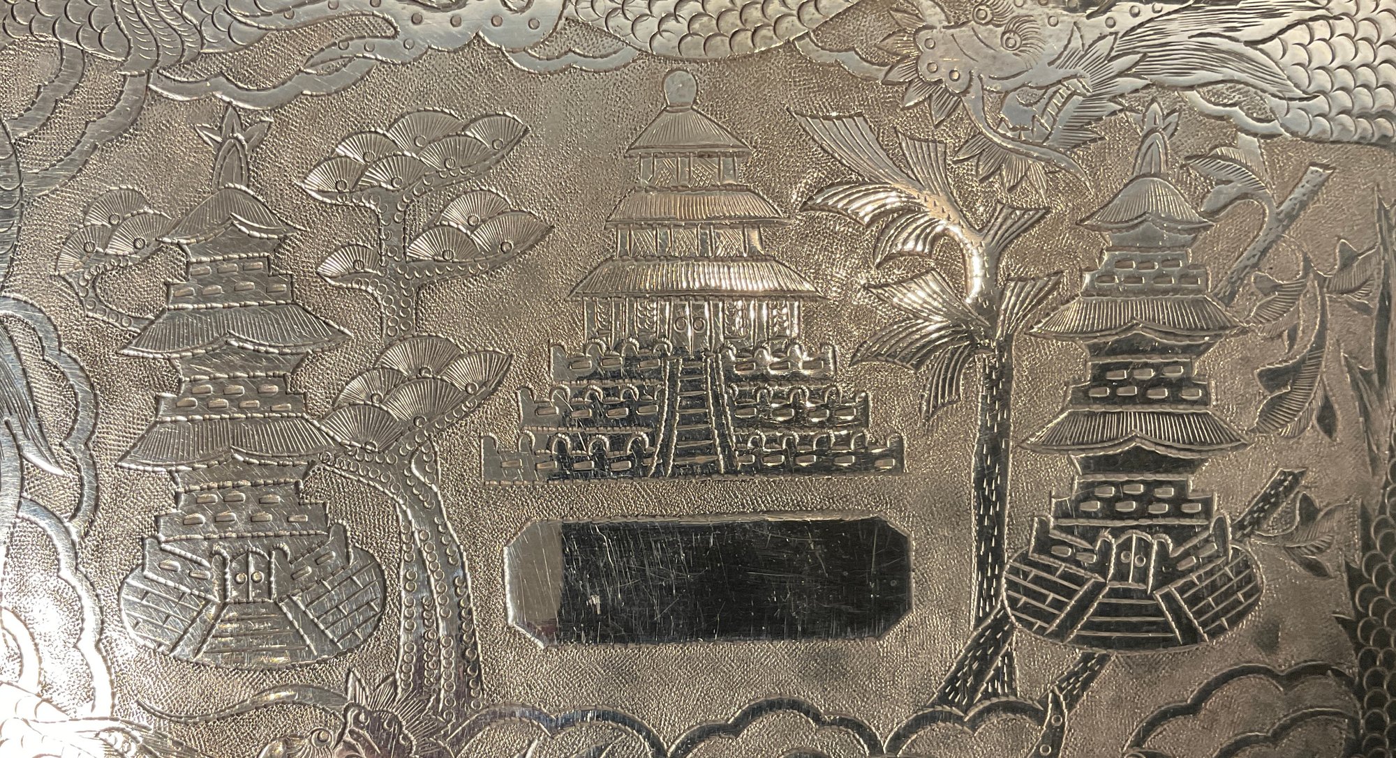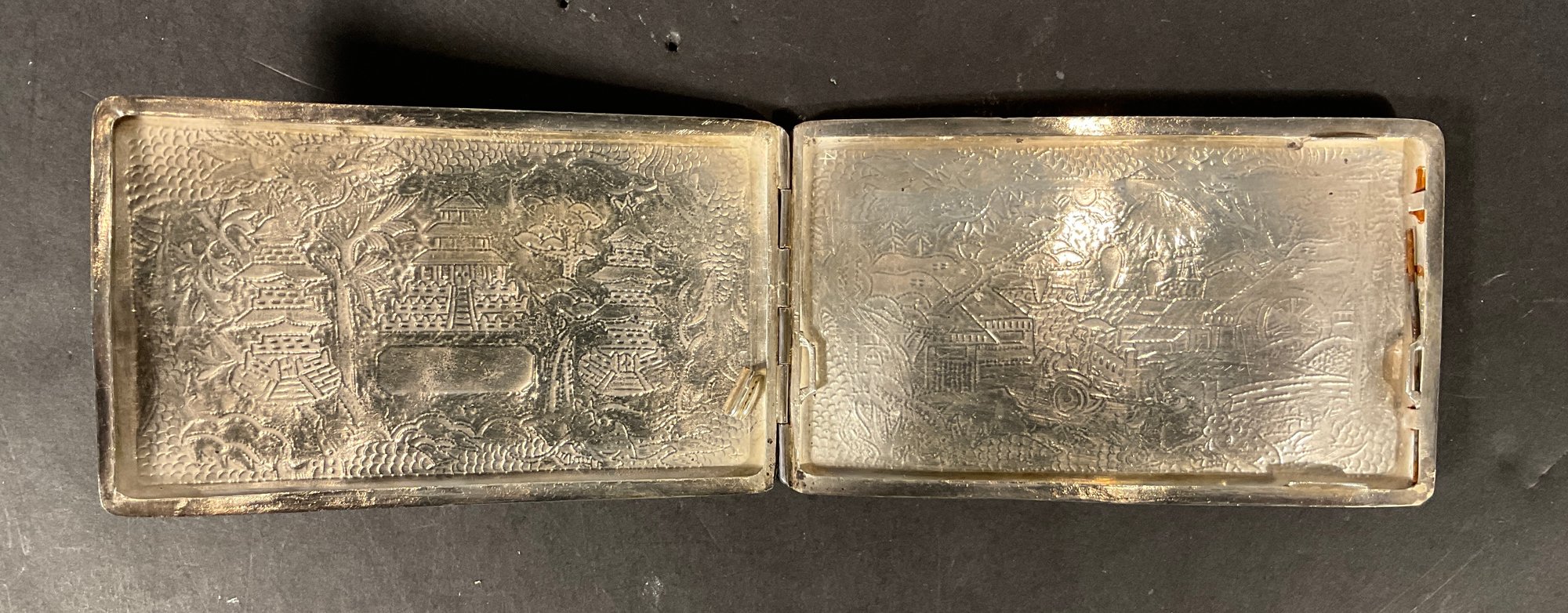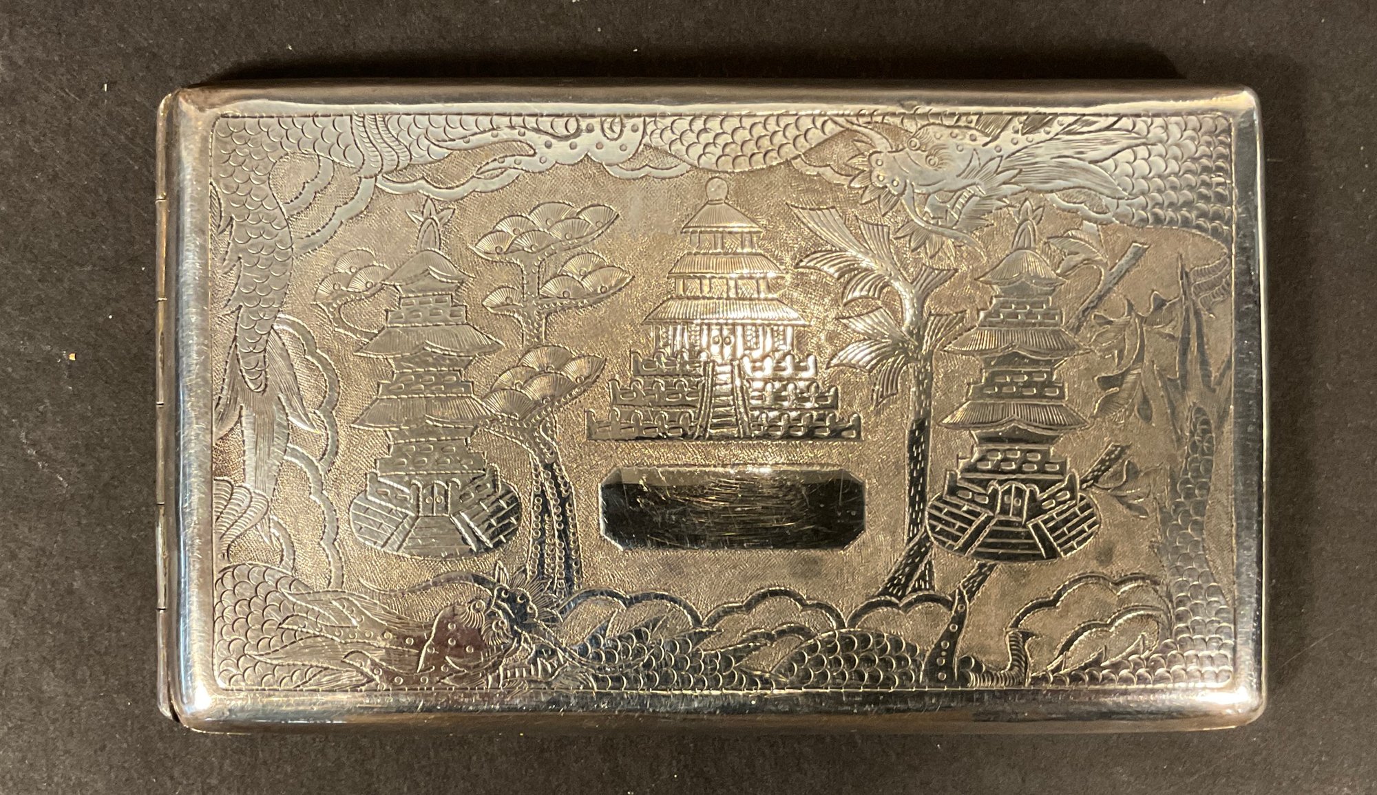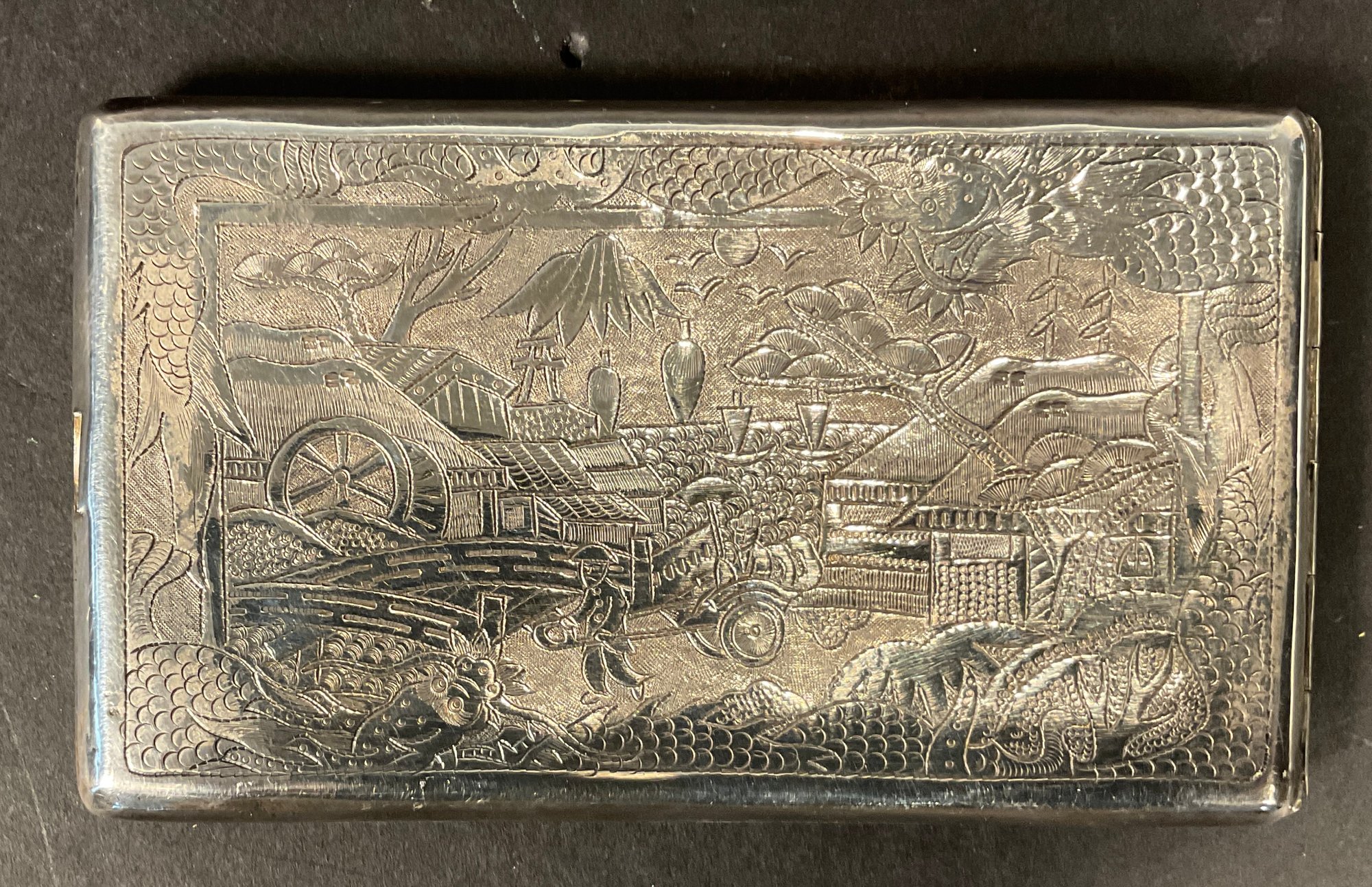 A very fine Chinese export, large size curved cigarette case made for the western world circuit 1900 very handsome and very heavy card case.