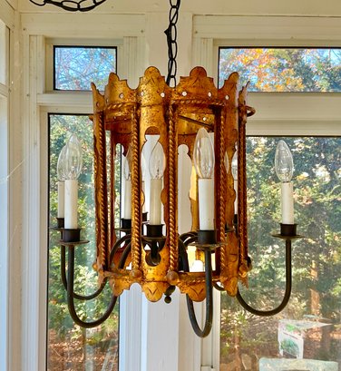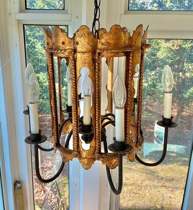 Very nice details great size has about 12 feet of chain so you can make it into a swag lamp. Iām ready to use all in good condition.