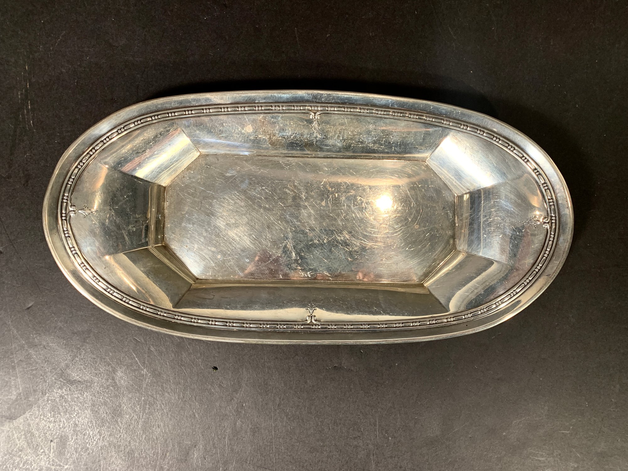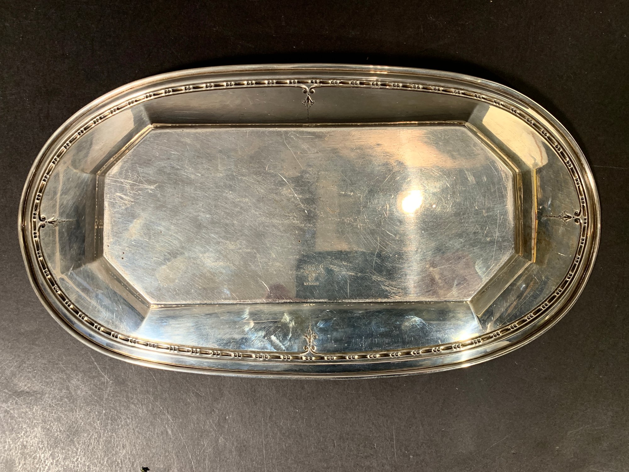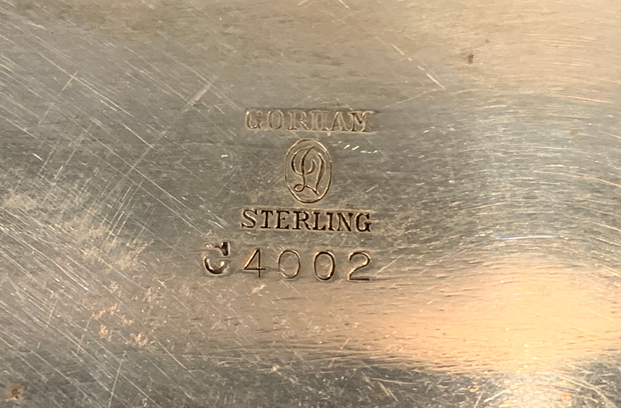 Here we have a very substantial Gorham sterling silver Eduard bread tray and a very simple, elegant pattern. No monogram, no dents ready to use and enjoy.