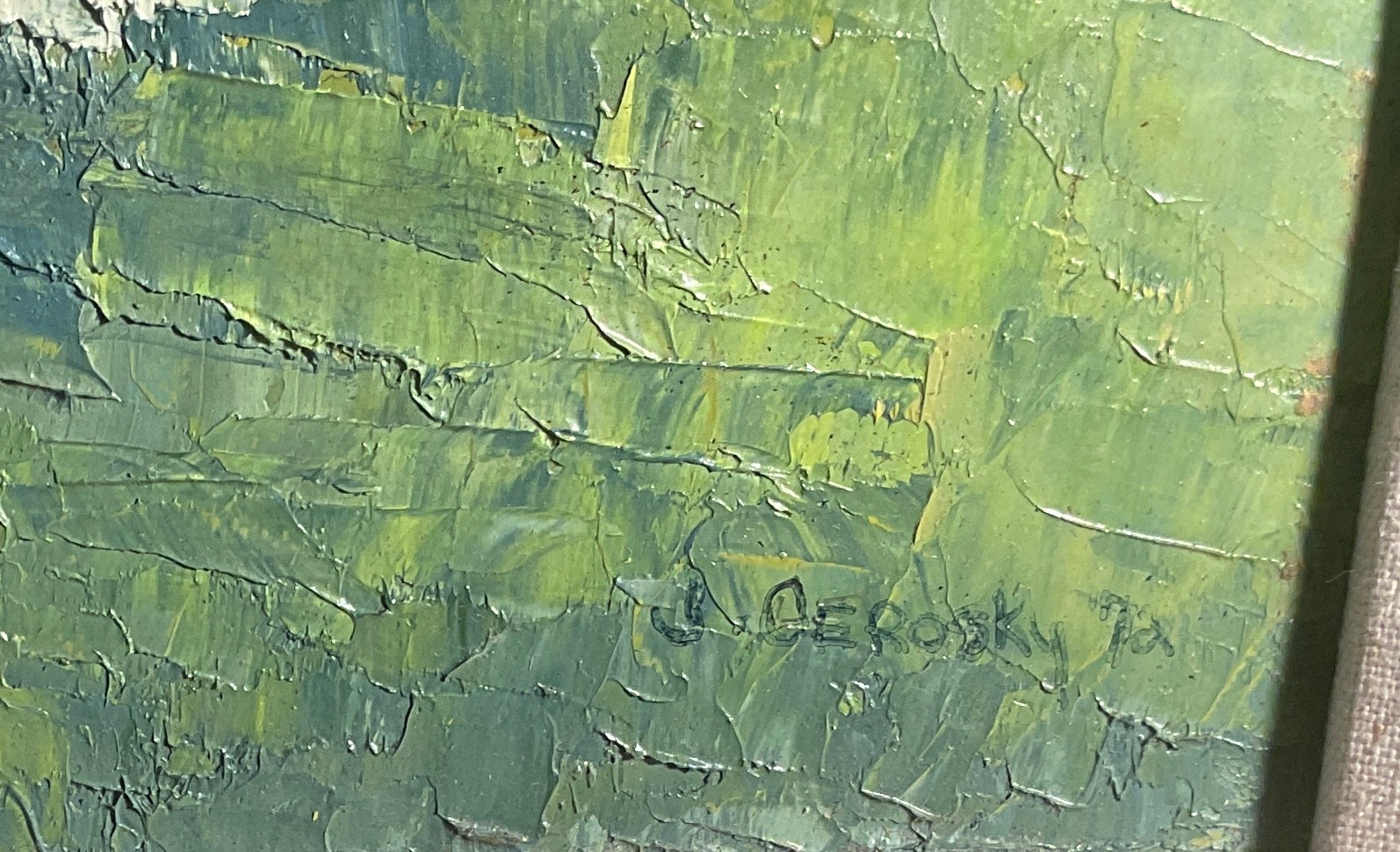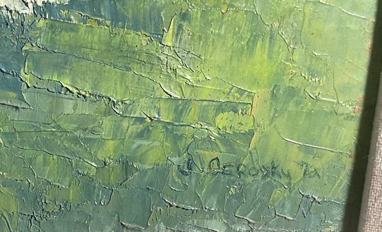 This painting was done using a pallet knife for most of it, and the colors are extremely pleasing and somber, yet lively and thought provoking.