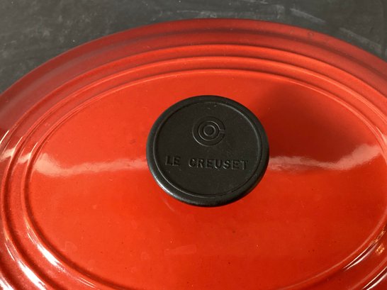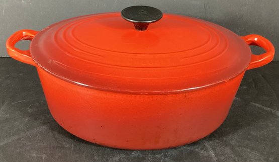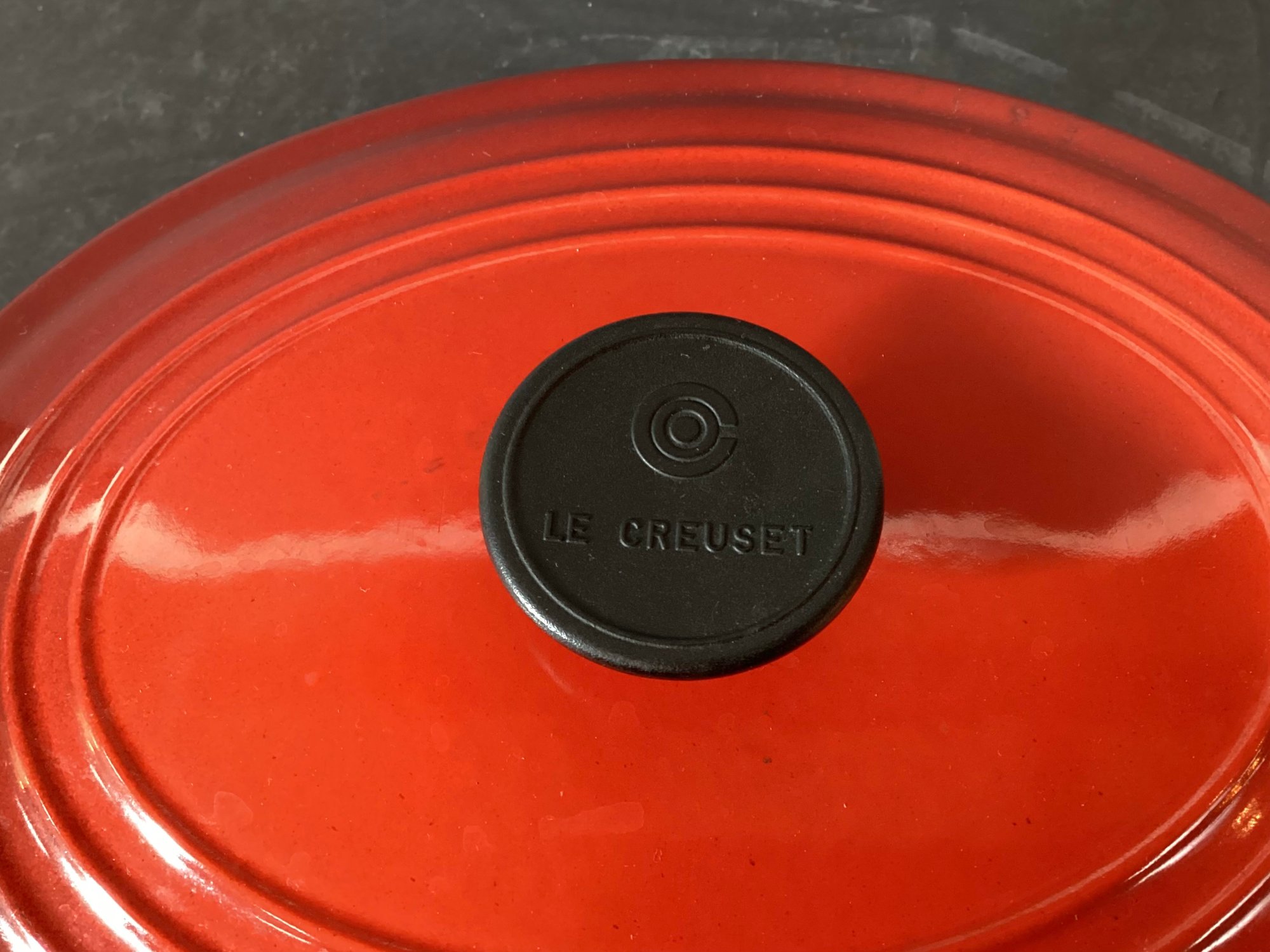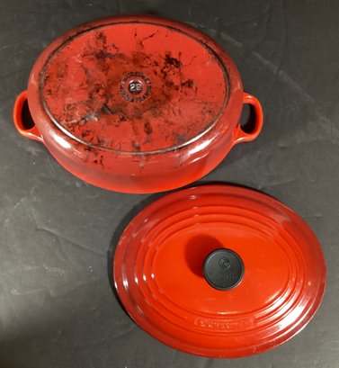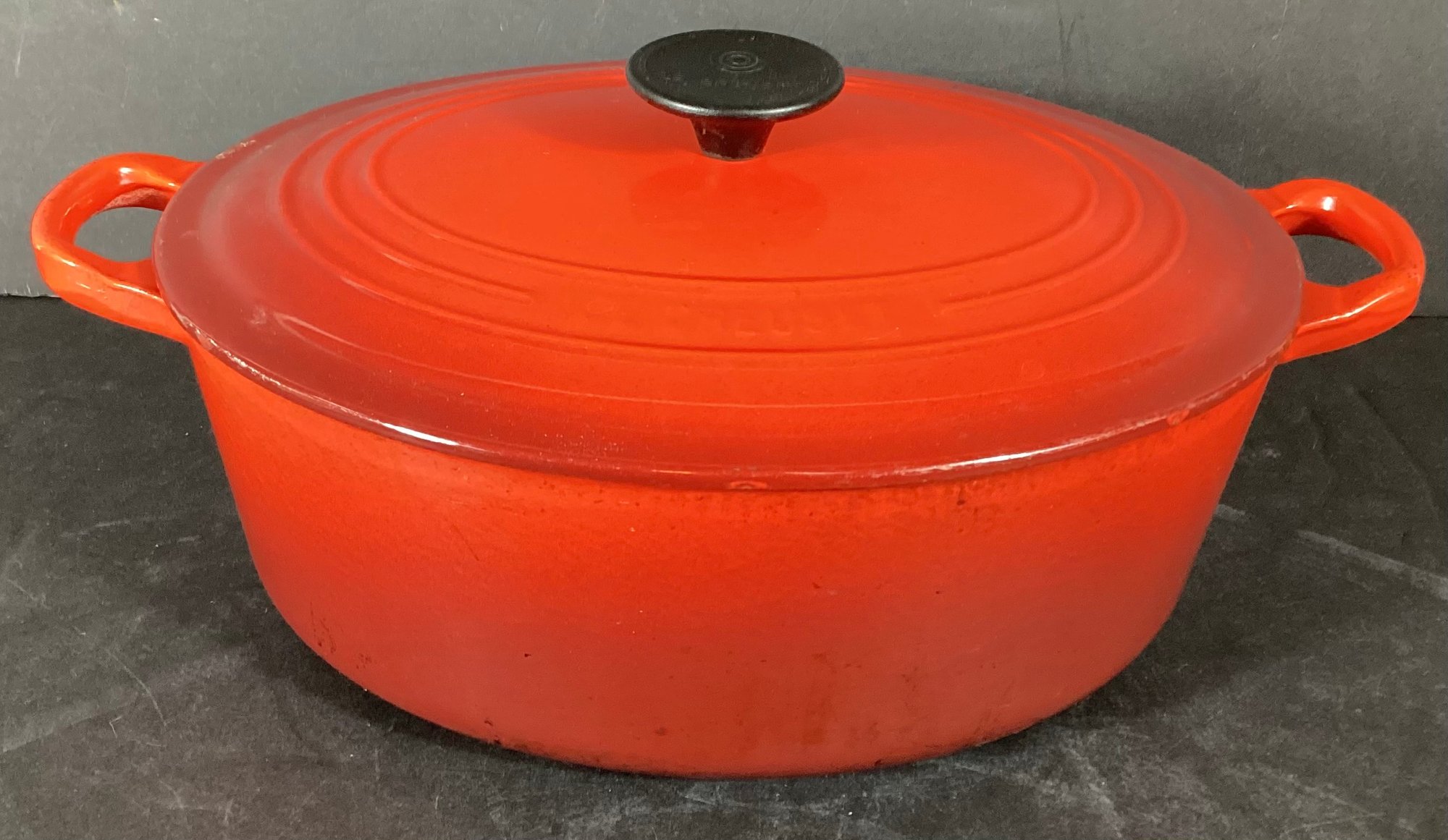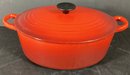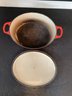 Here we have a Le Creuset 2.75 quart Dutch oven in cherry red enamel.