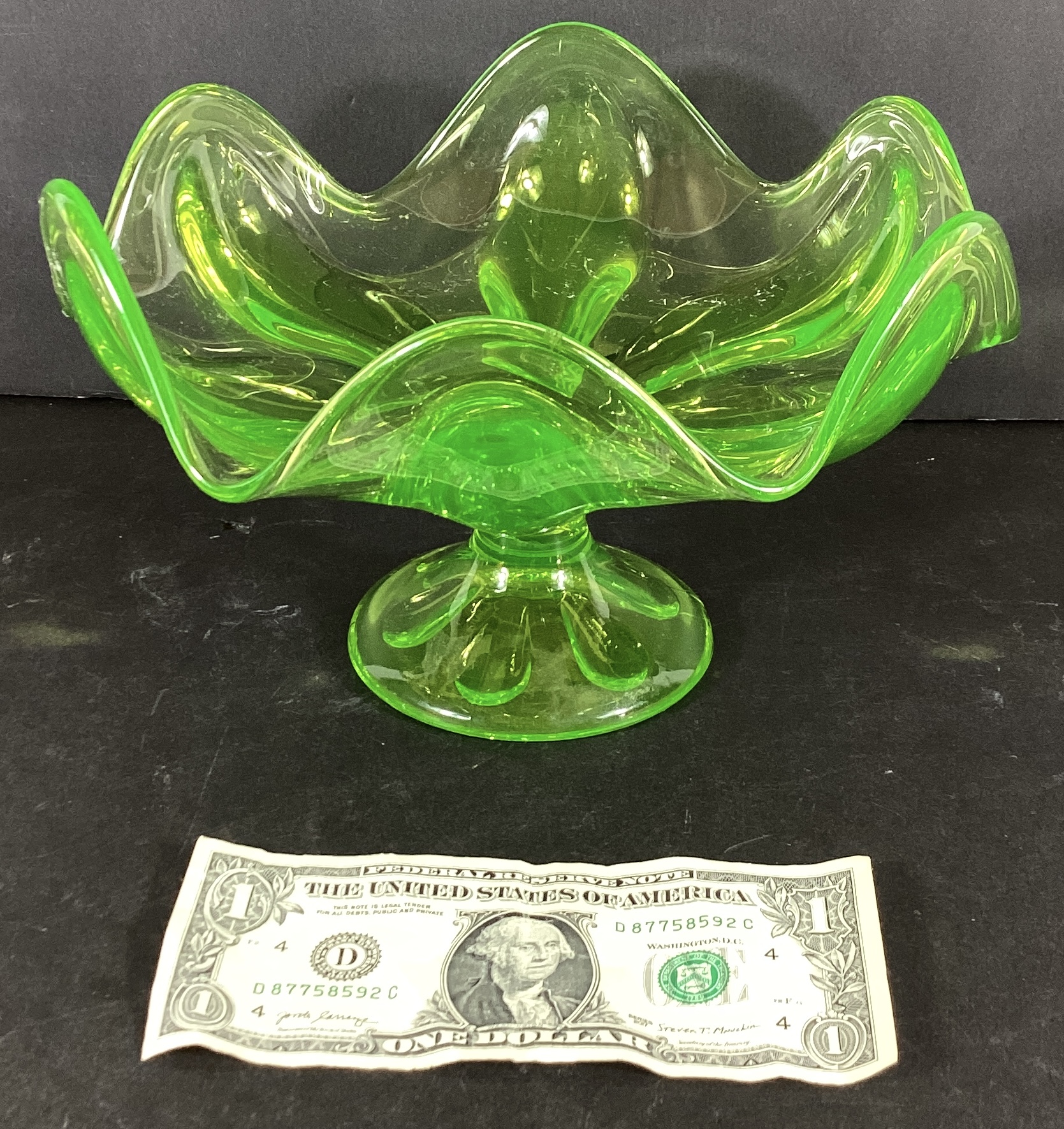 Wow! Here we had an absolutely beautiful pedestal bowl. This bowl has been made out of lime green glass.