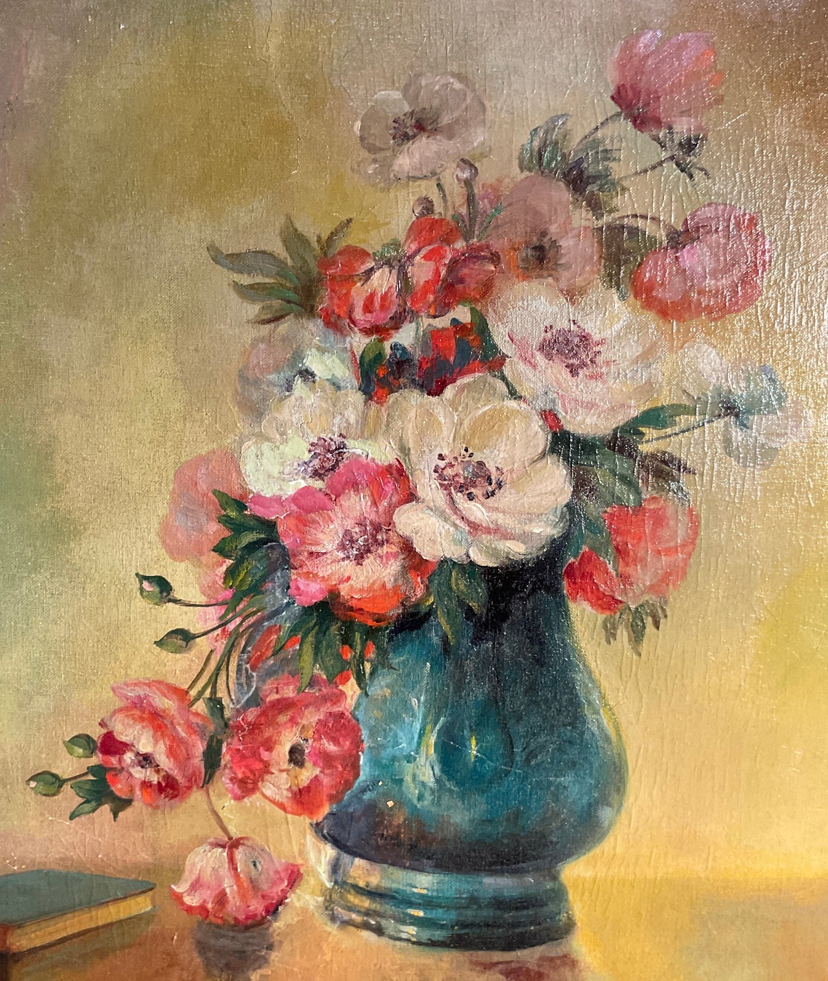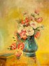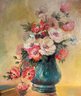 Here is a very nice well done, academic still life oil painting on board of a vase filled with beautiful summer flowers.