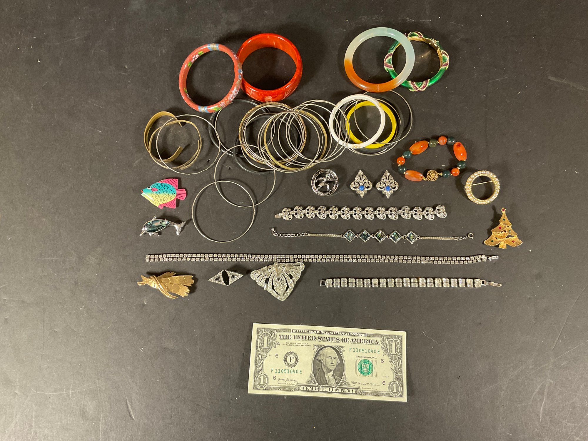there’s quite a selection here rhinestones bangle bracelets. Couple of pieces are signed all cost all usable, no damages.