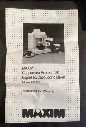 A great new old stock cappuccino machine from the MAXIM company.