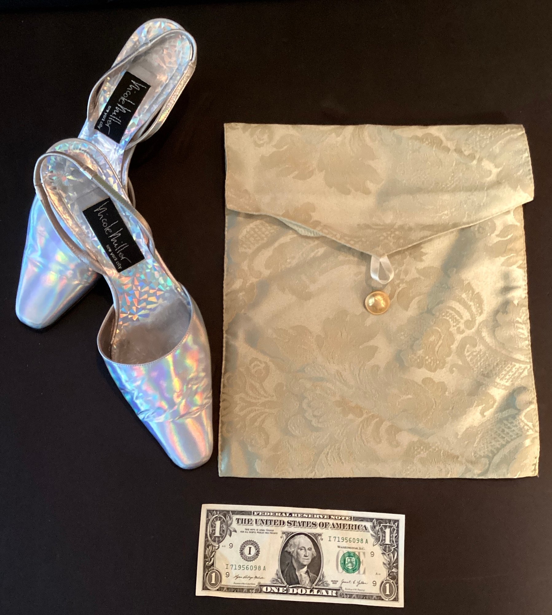 Here we have a very nice pair of vintage Nicole Miller slingback evening shoes.