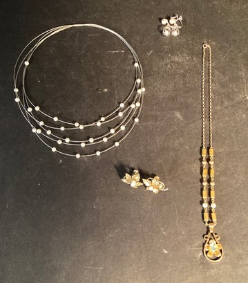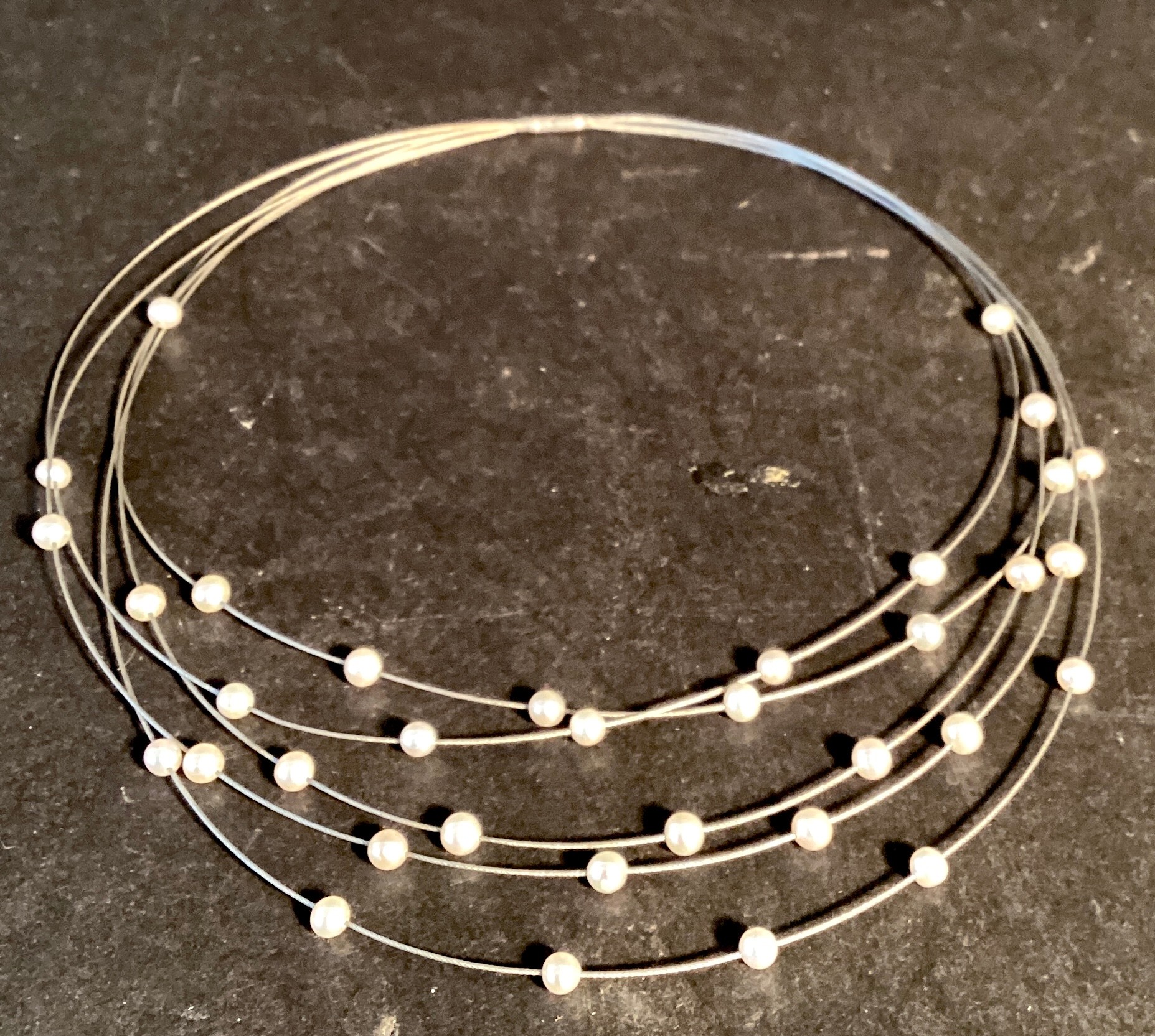 * a 5 wire strand necklace that has pearls interspersed throughout.fits a size 16”, and is very well made.