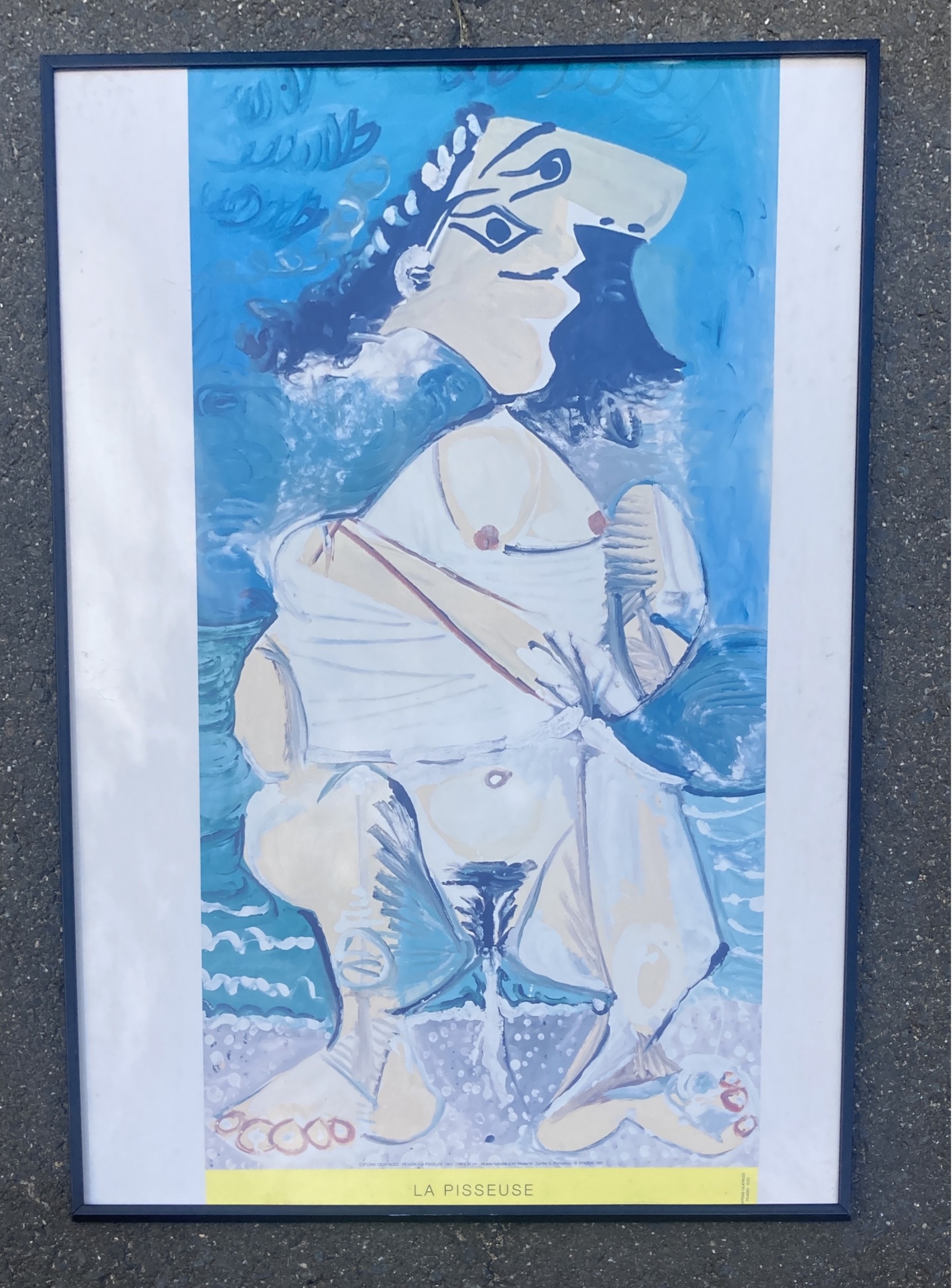 Picasso's La Pisseuse exhibition poster from Musée National d'Art Moderne - Centre G. Pompideu, SPADEM 1991 . Poster is loose in frame not mounted on board.