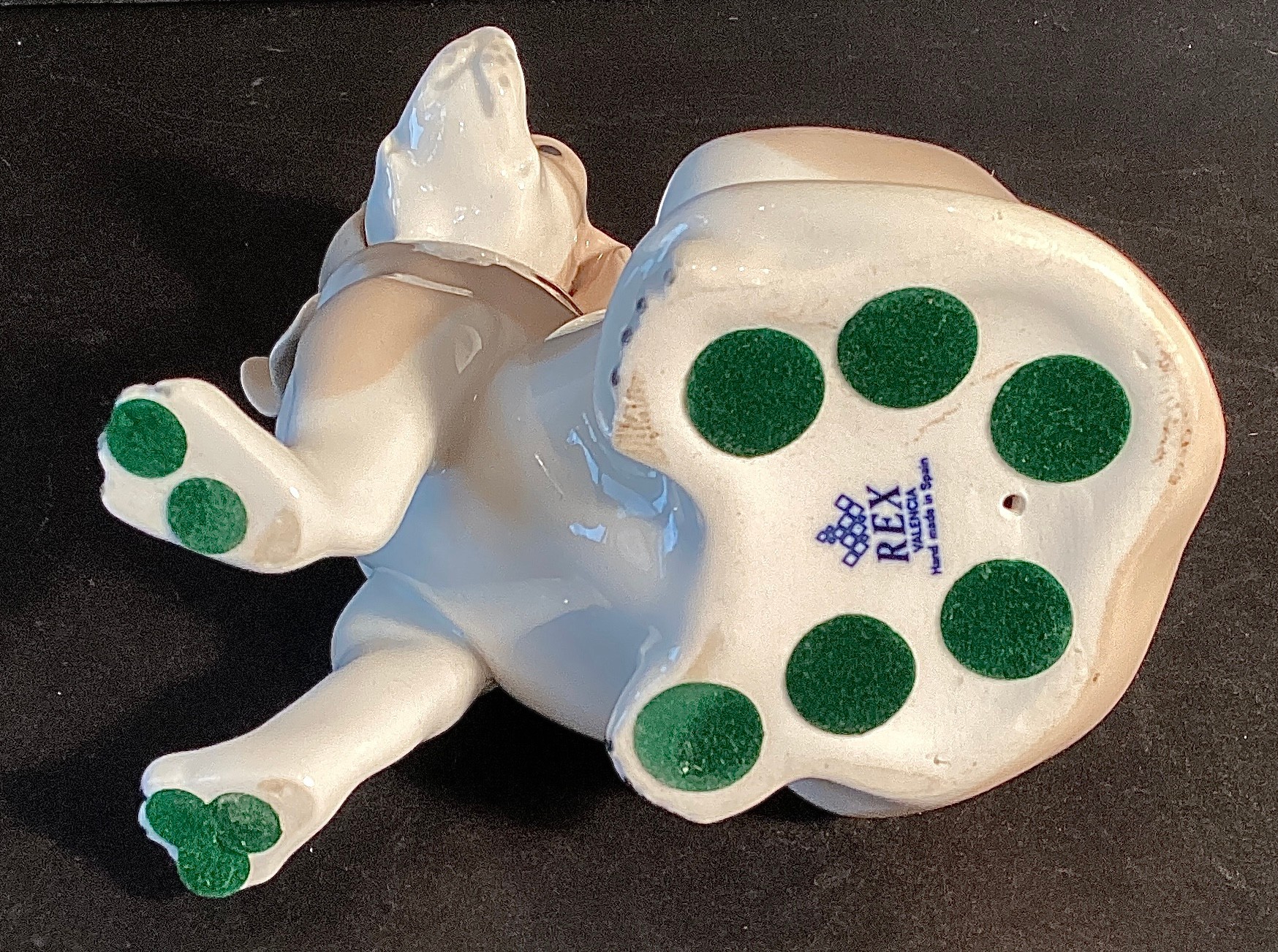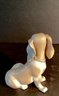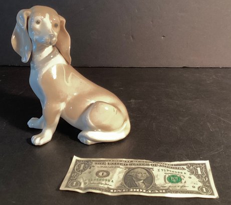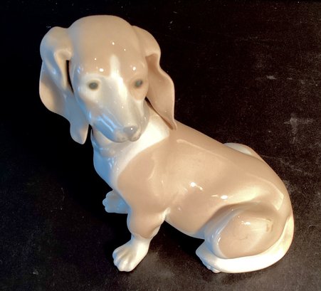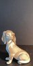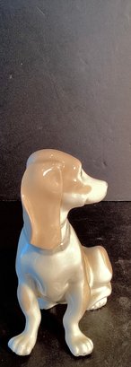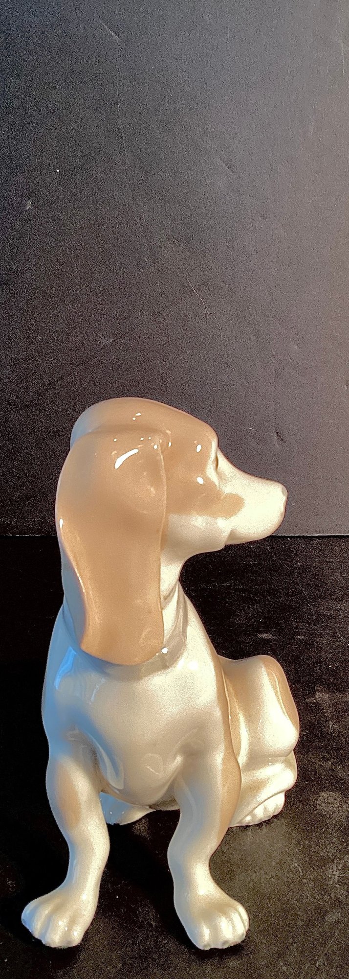 Here we have a very nice porcelain statue of a dog sitting and looking to its left side.