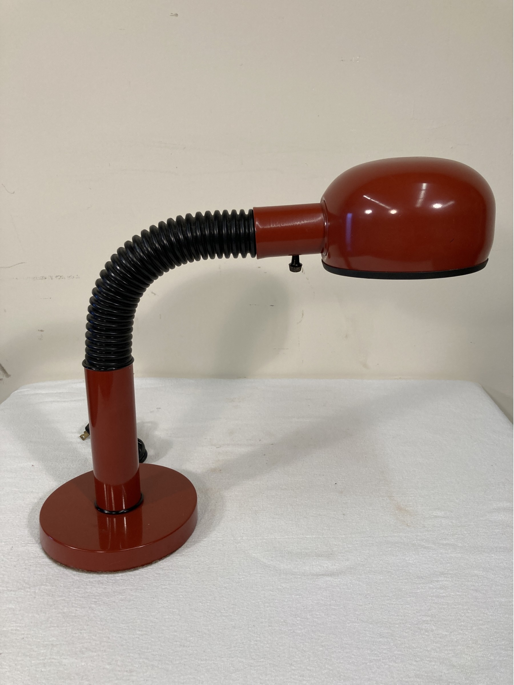 Selling a vintage retro gooseneck table lamp by Heyco. In crimson red. Circa 1970s-1980s.