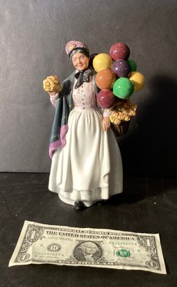 Here we have an exquisite figurine, depicting a Victorian woman selling balloons and flowers.