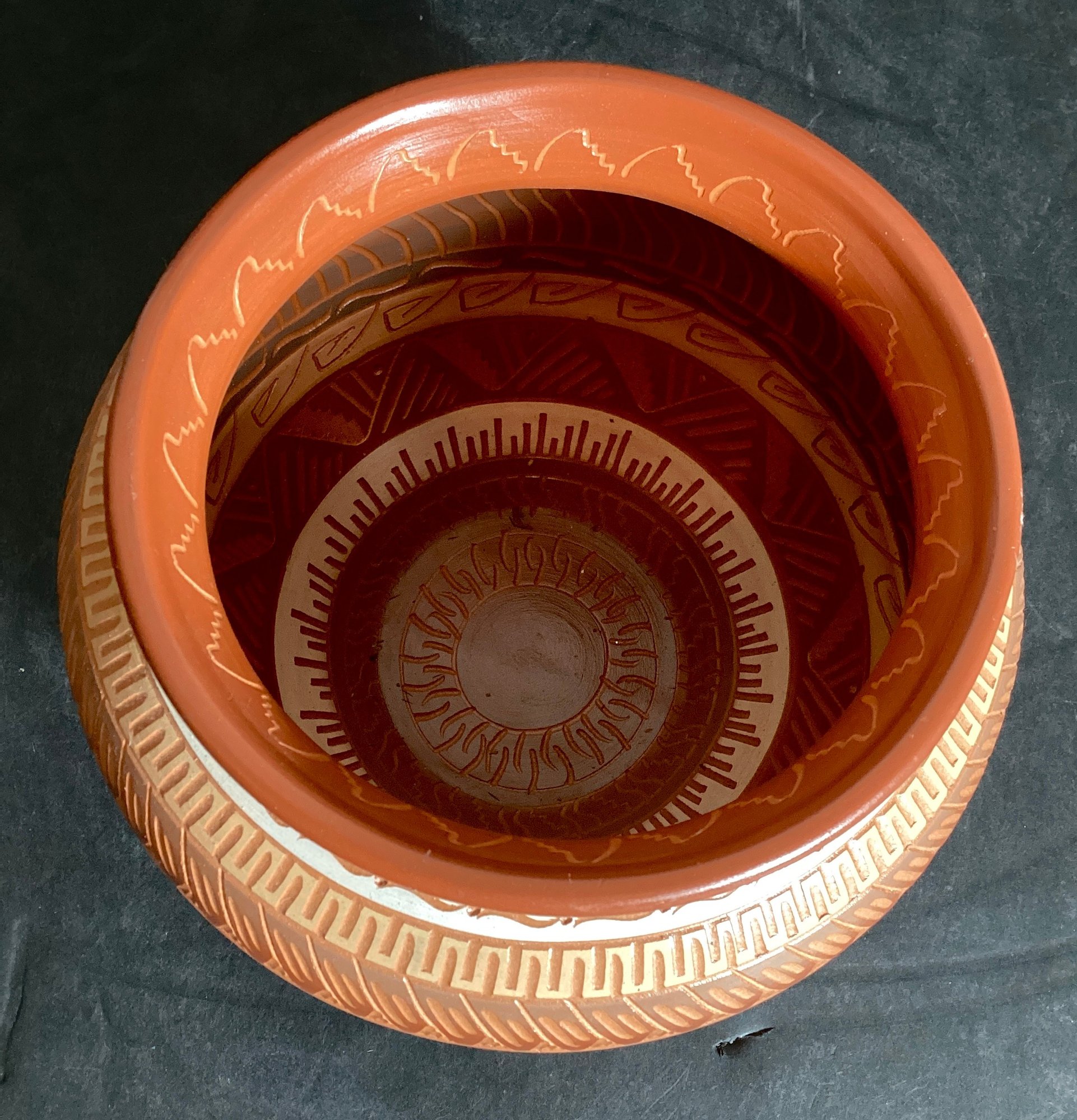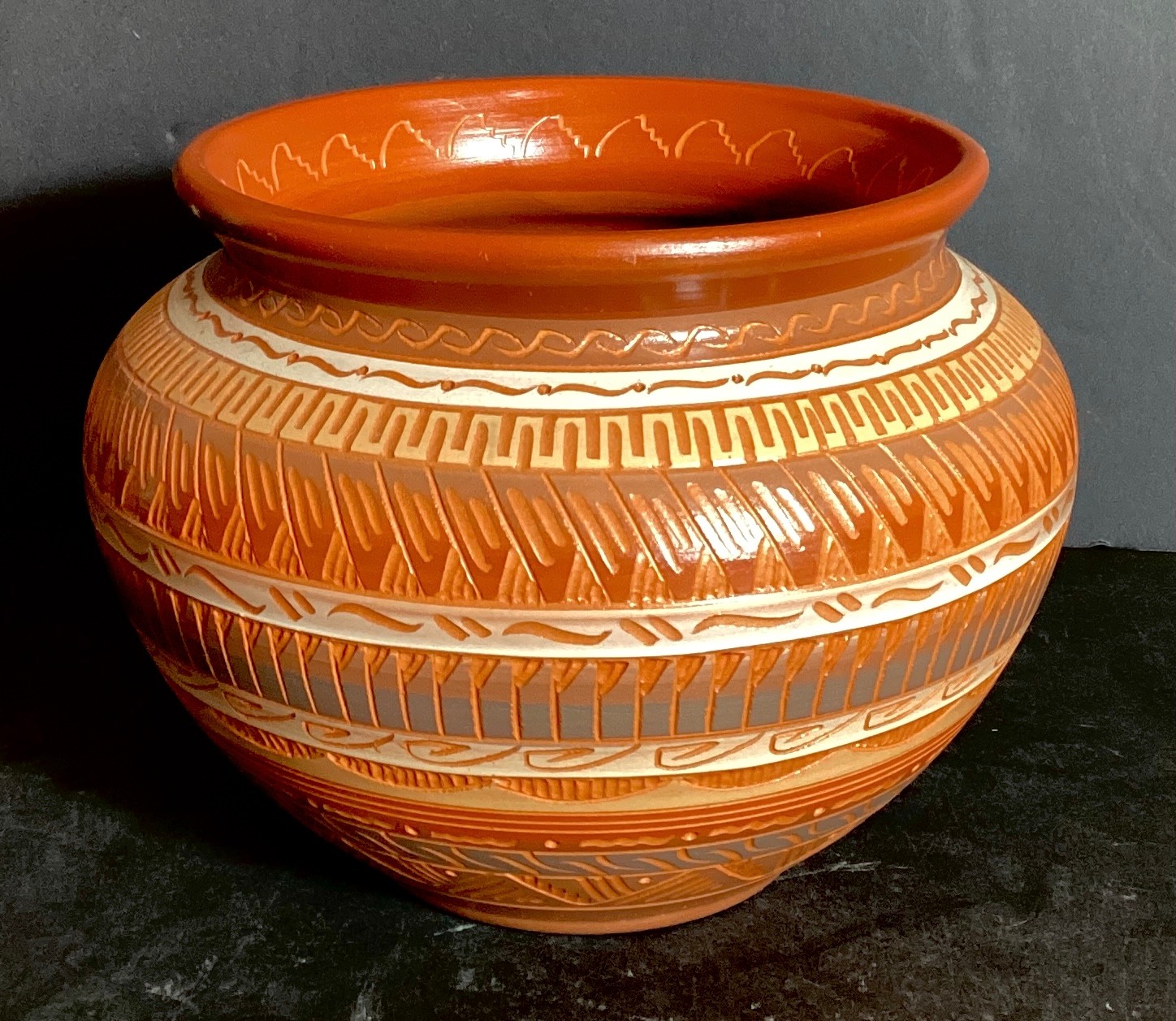 Here we have a beautiful Navajo hand thrown pot in terra cotta clay.