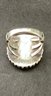 * tri-prong shoulder conforms to a single band, and a ring guard is attached. This makes the ring a size 6, however the ring is actually closer to size 7.