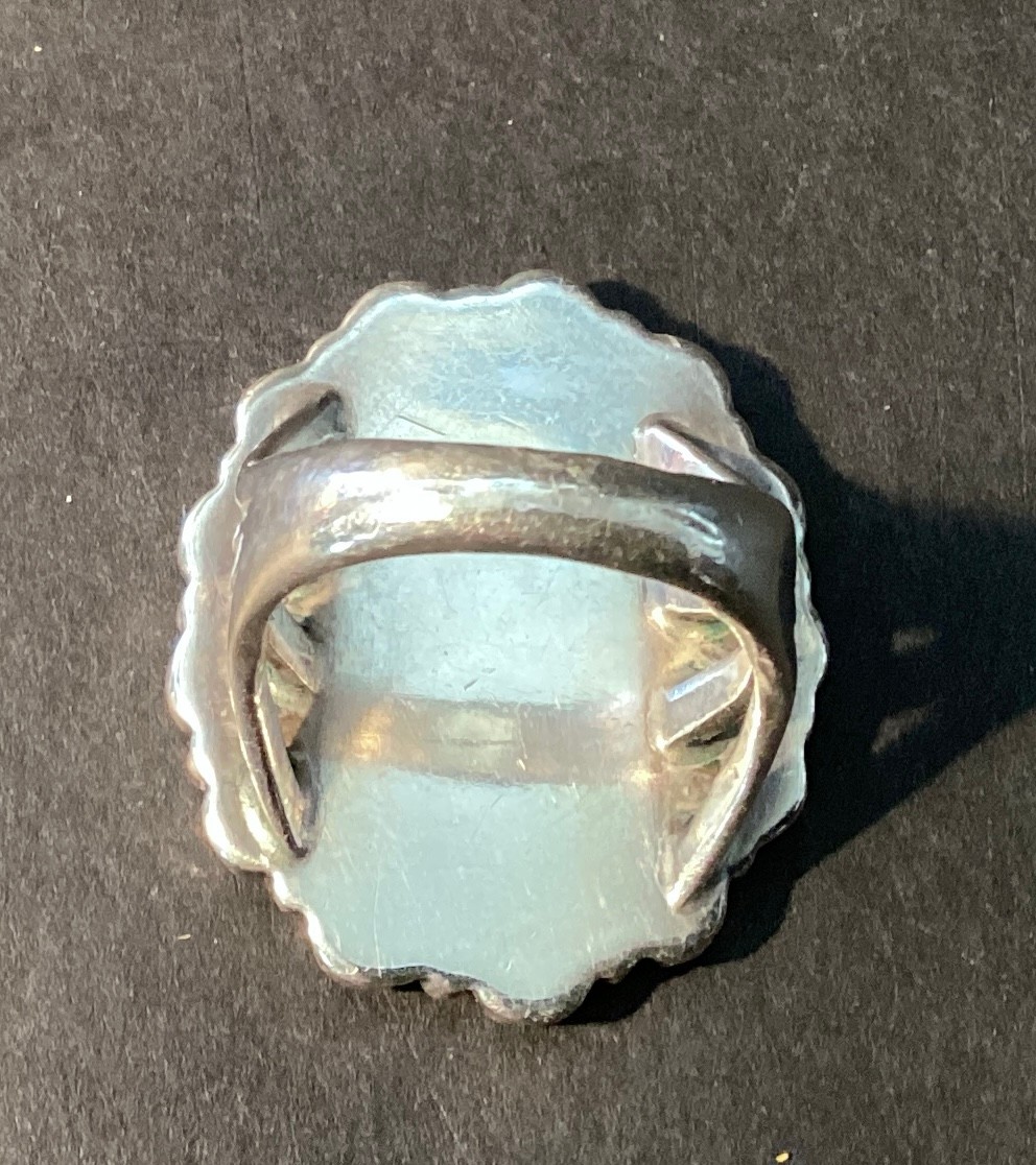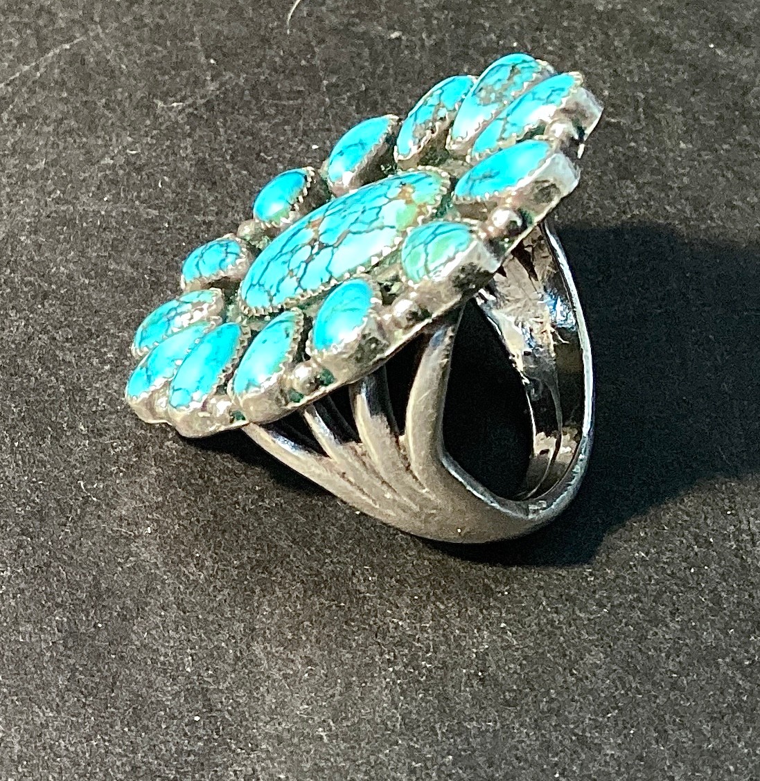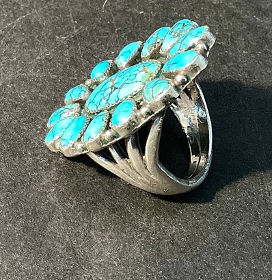 A substantial southwestern sterling silver ring with natural turquoise stones.