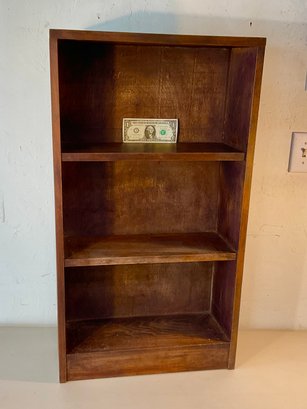 This all wood bookcase is a wonderful size can be used. Almost anywhere in your home. Nice finish all wood no fillers. itβs probably handmade in the 50s