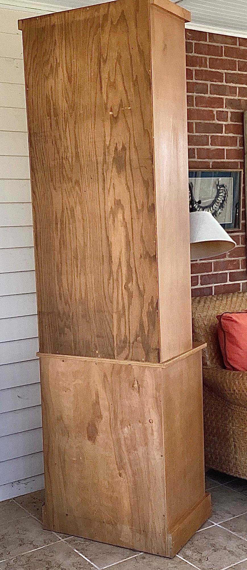 Measurements 85” tall, 25” wide, 16” deep at bottom, 11” deep at top section