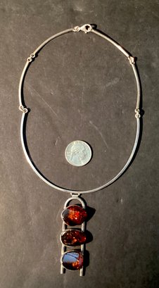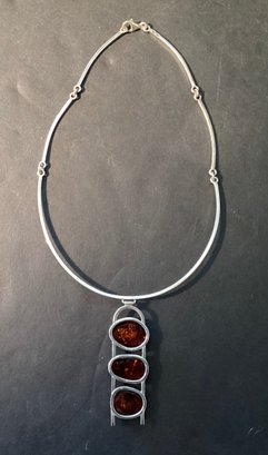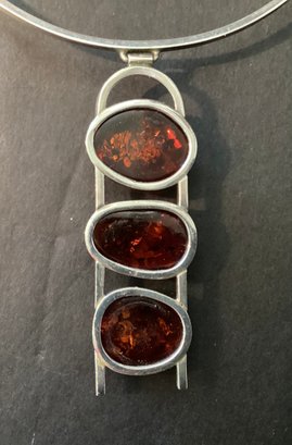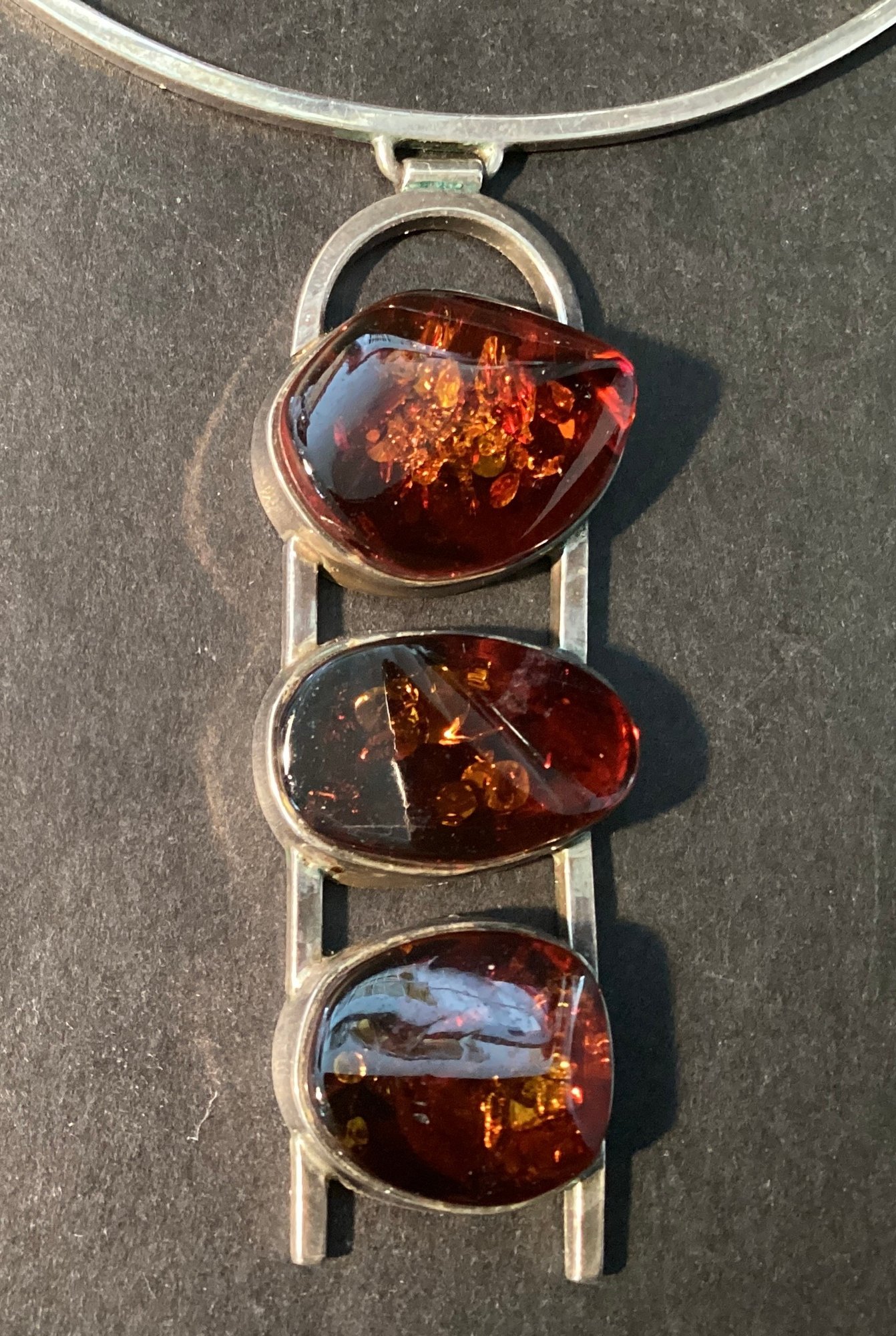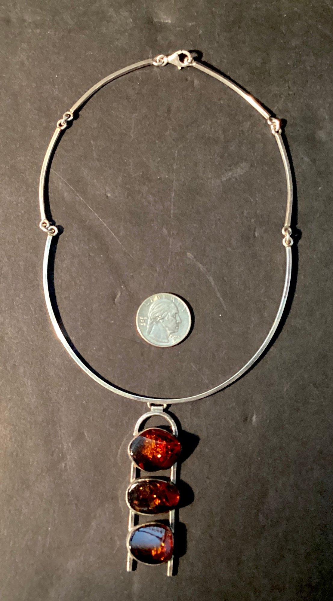 * the necklace has a three cabochon amber and sterling pendant that is permanently attached to the necklace.