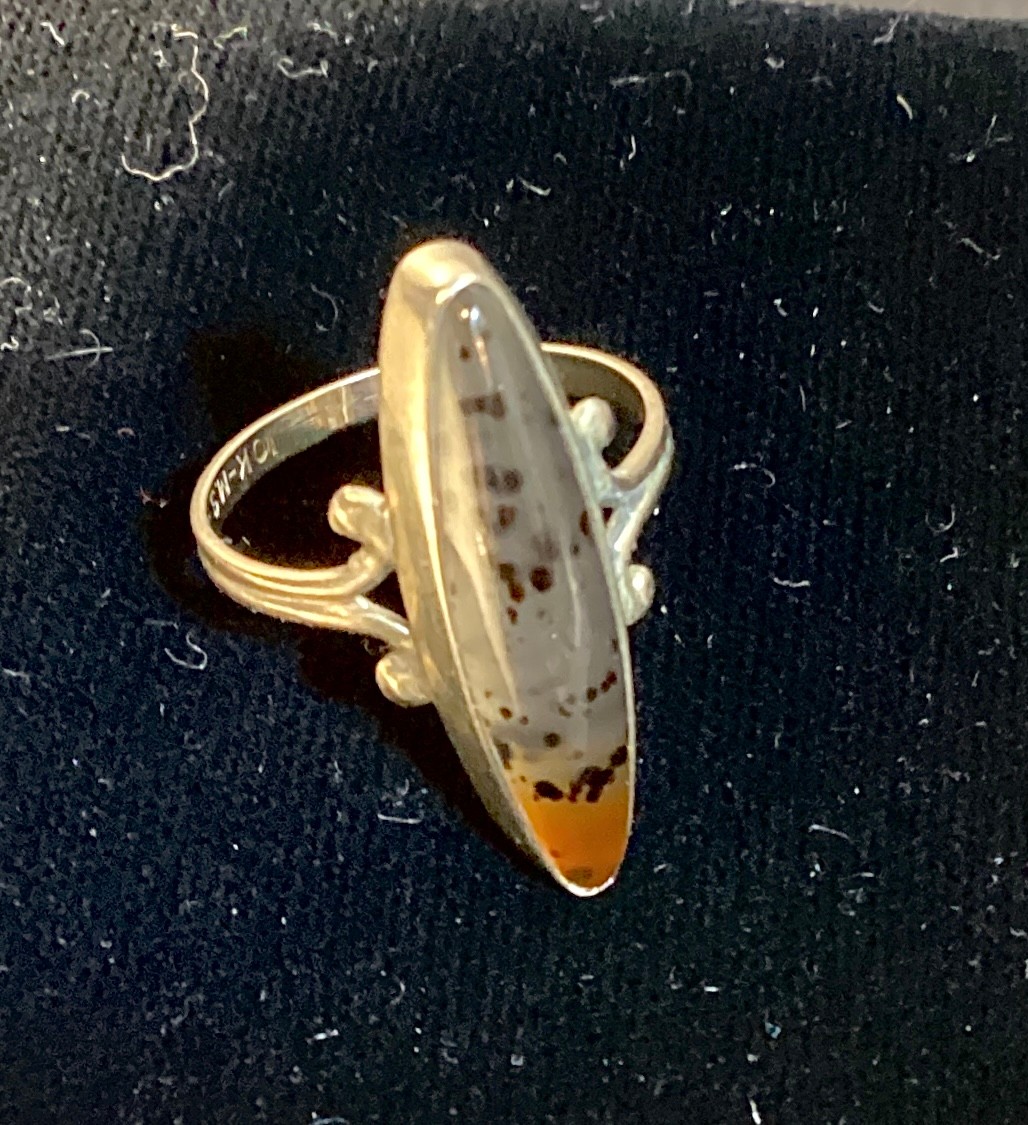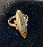 * sterling silver and marquis cut and polished ring approximately size 5. A most unique stone cabochon.