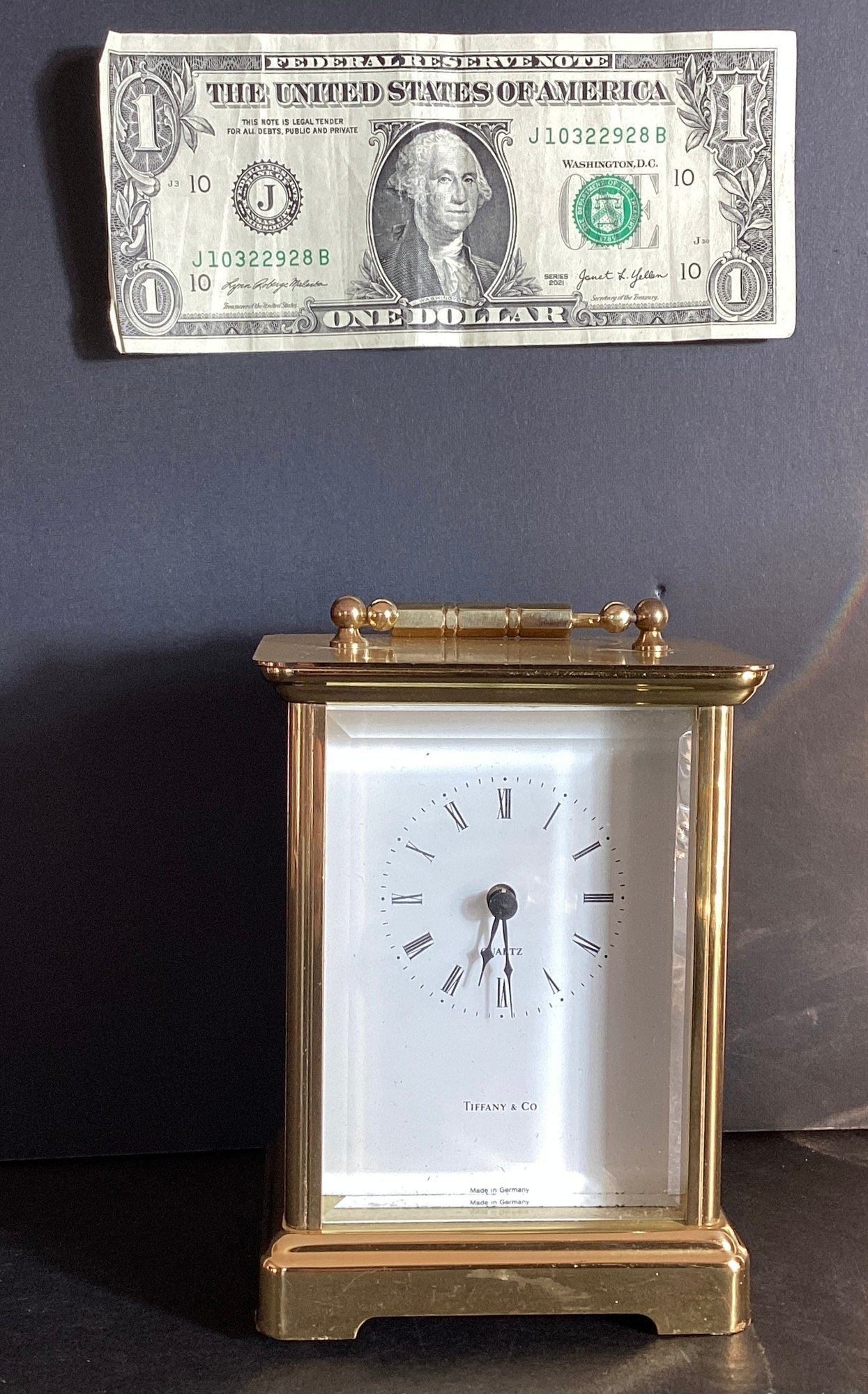 Tiffany & Company brass carriage clock.