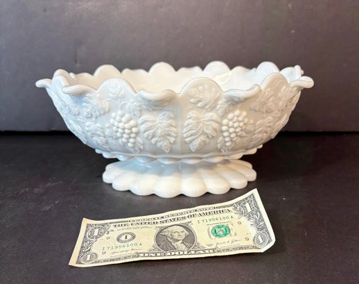 we have a very nice oblong bowl signed Westmoreland. This bowl is in a great pattern with a reticulated border and footed base. Very nice look. Signed on bottom