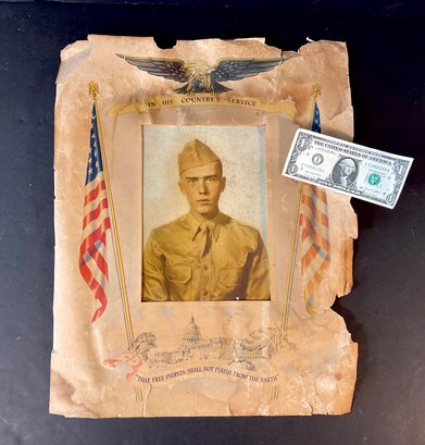 Possibly William Spencer written on back. Saved from the fate of the dumpster this photograph is of William Spencer when he enlisted in the US Army in the 40’s. The photograph is in fairly good condition the rest of it not so good but it’s there.