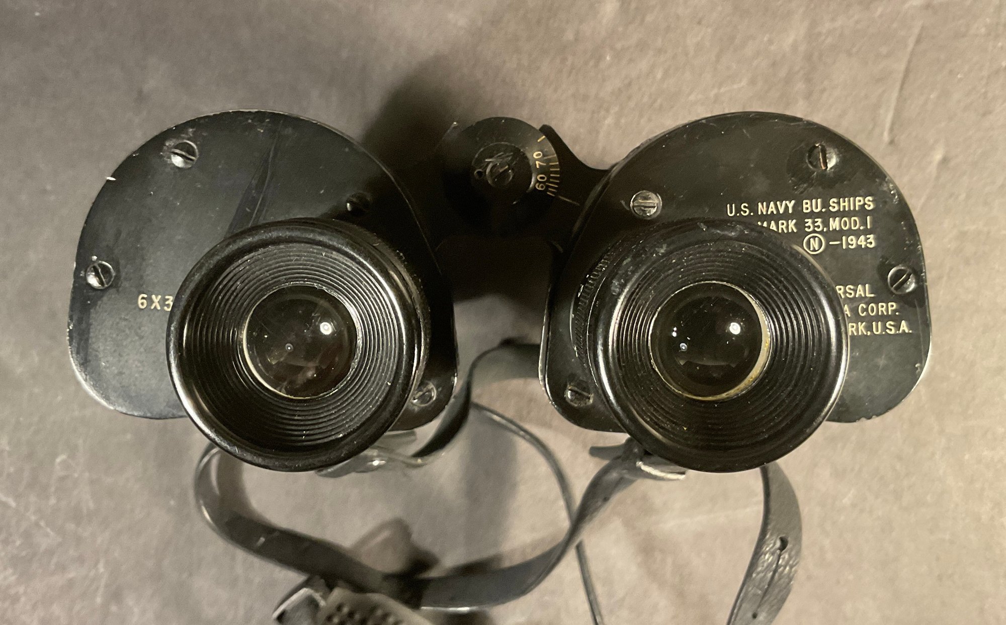 There’s a very nice pair of US Navy World War II ships binoculars. Made by the universal camera corporation in New York 1943 appear to be in very good condition. No issues that can be seen. We have tested them and they are very nicely made and in good condition.