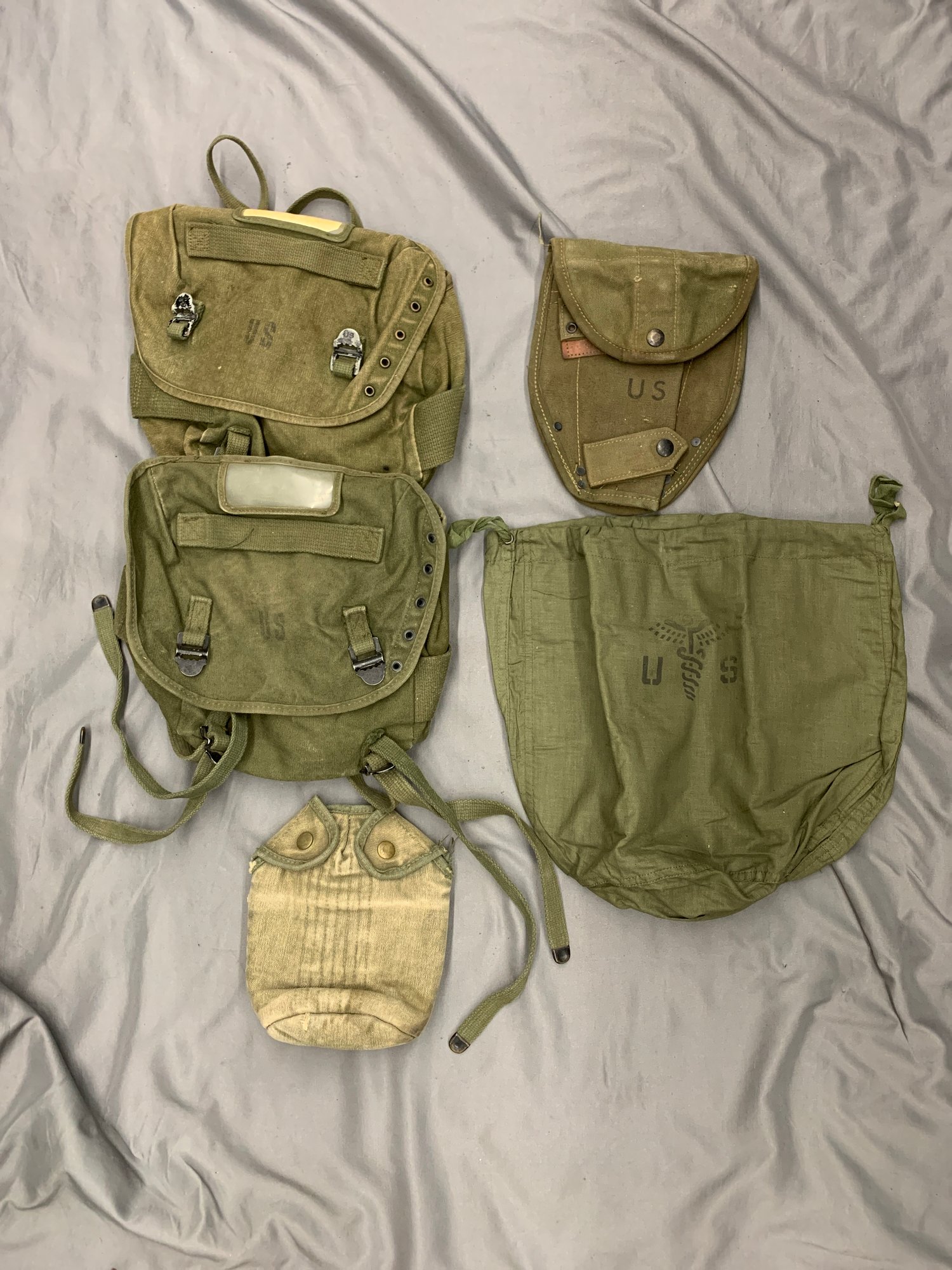 INCLUDES TWO BUTTPACKS, A SHOVEL CARRIER, A PERSONAL EFFECTS BAG, AND A CANTEEN COVER.
