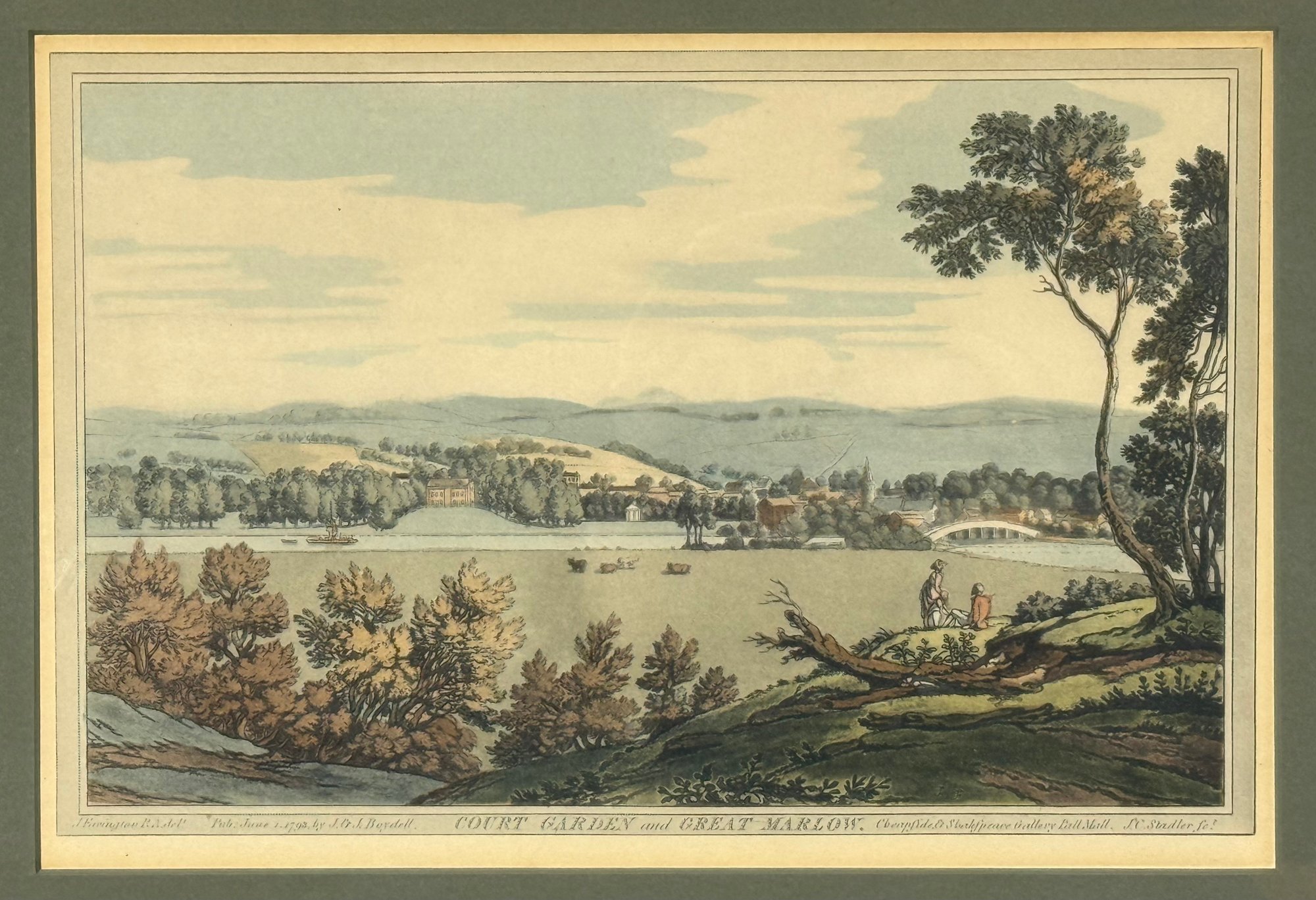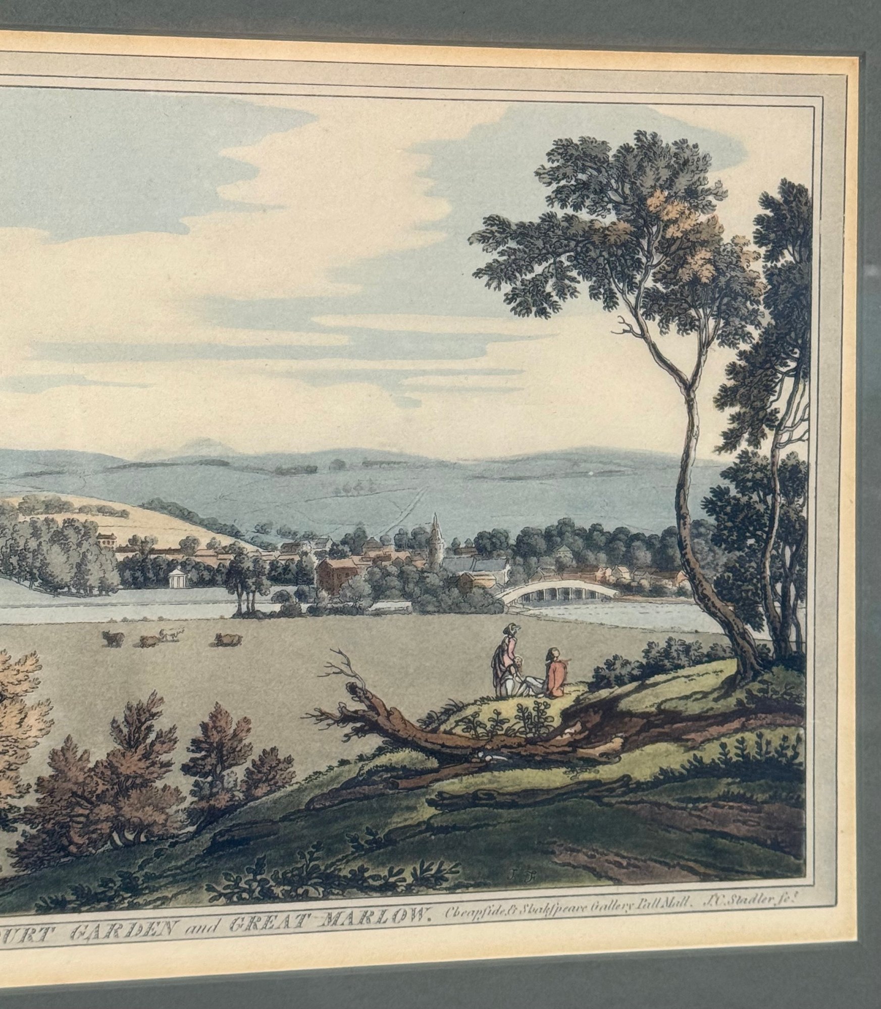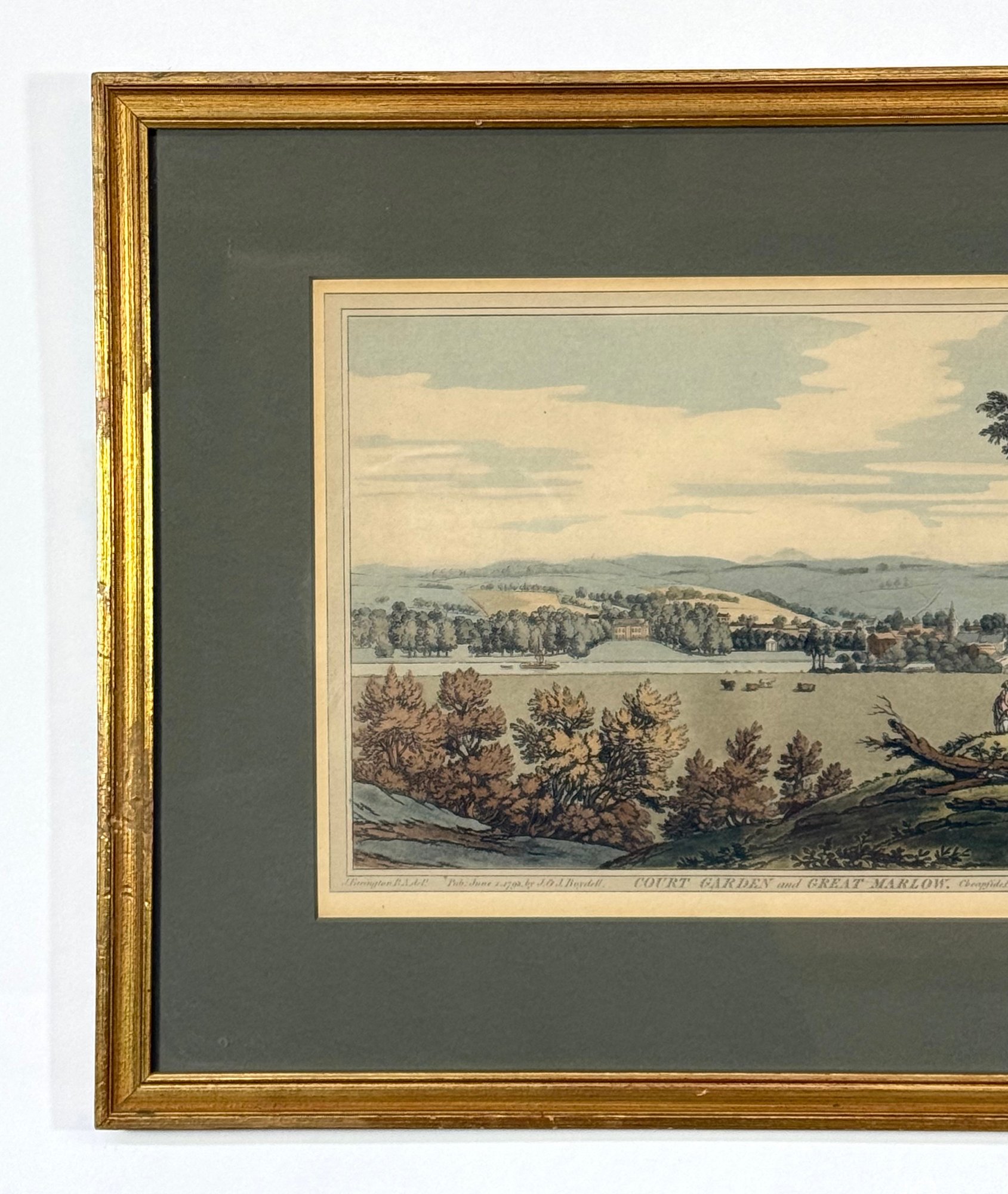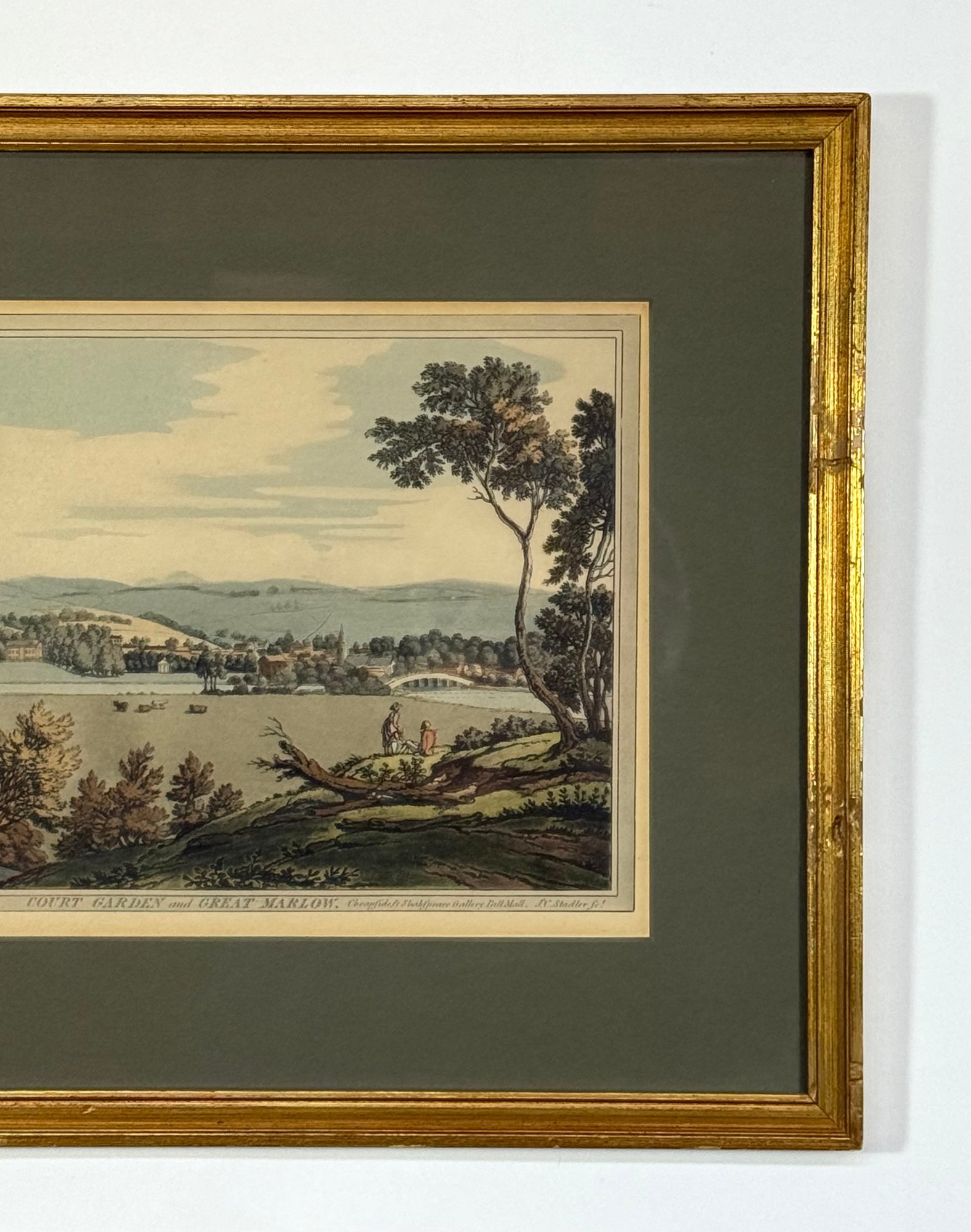 1793 J&J Boydell Hand-Colored Aquatint - Court Garden and Great Marlow