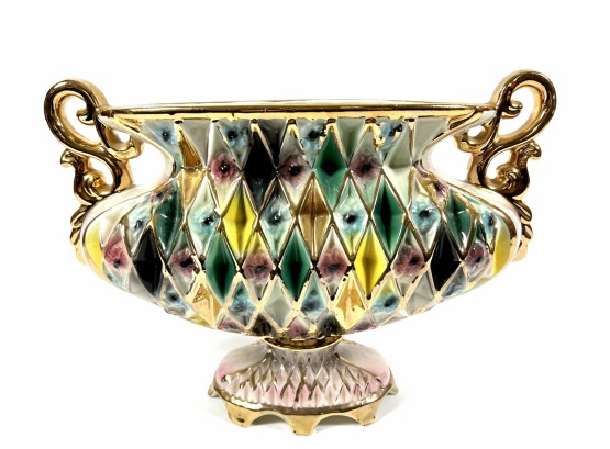 1950s Ceramic Multi-Colored Gold Leaf Urn Vase