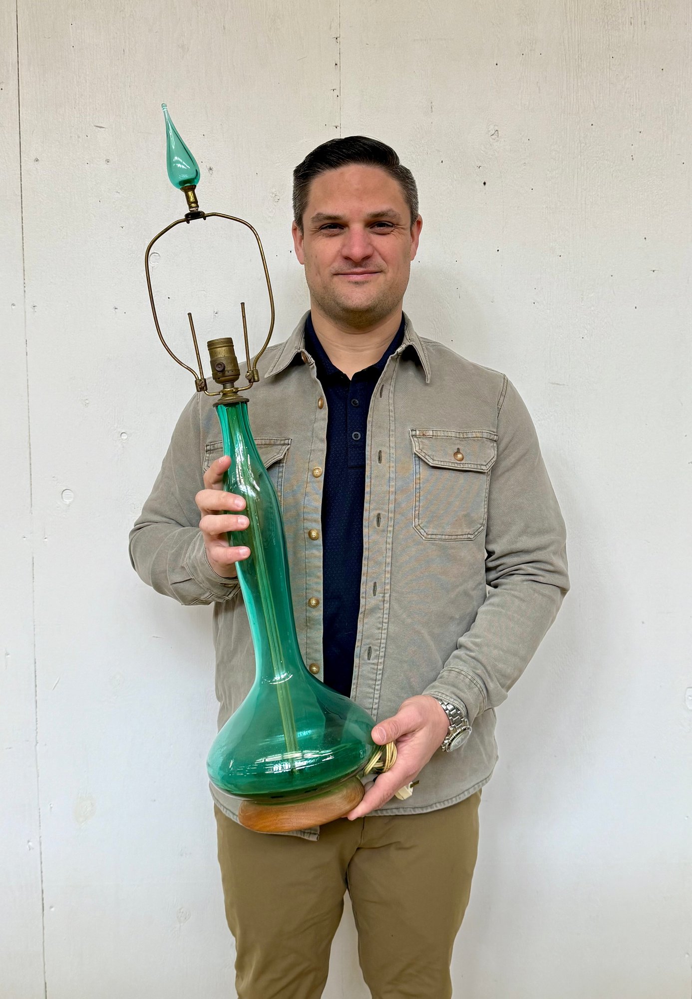 1958 Blenko Genie Bottle Table Lamp - Walnut Base