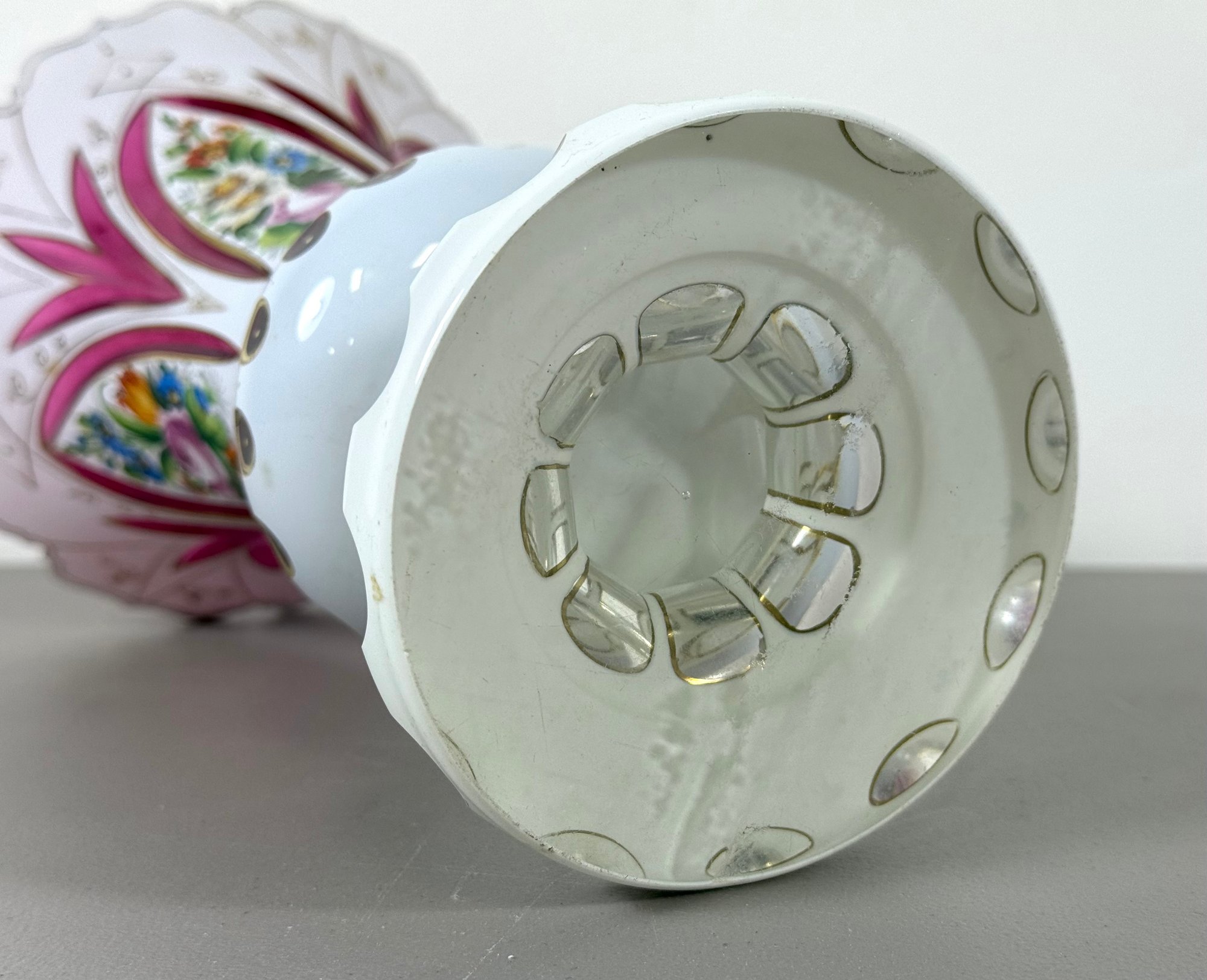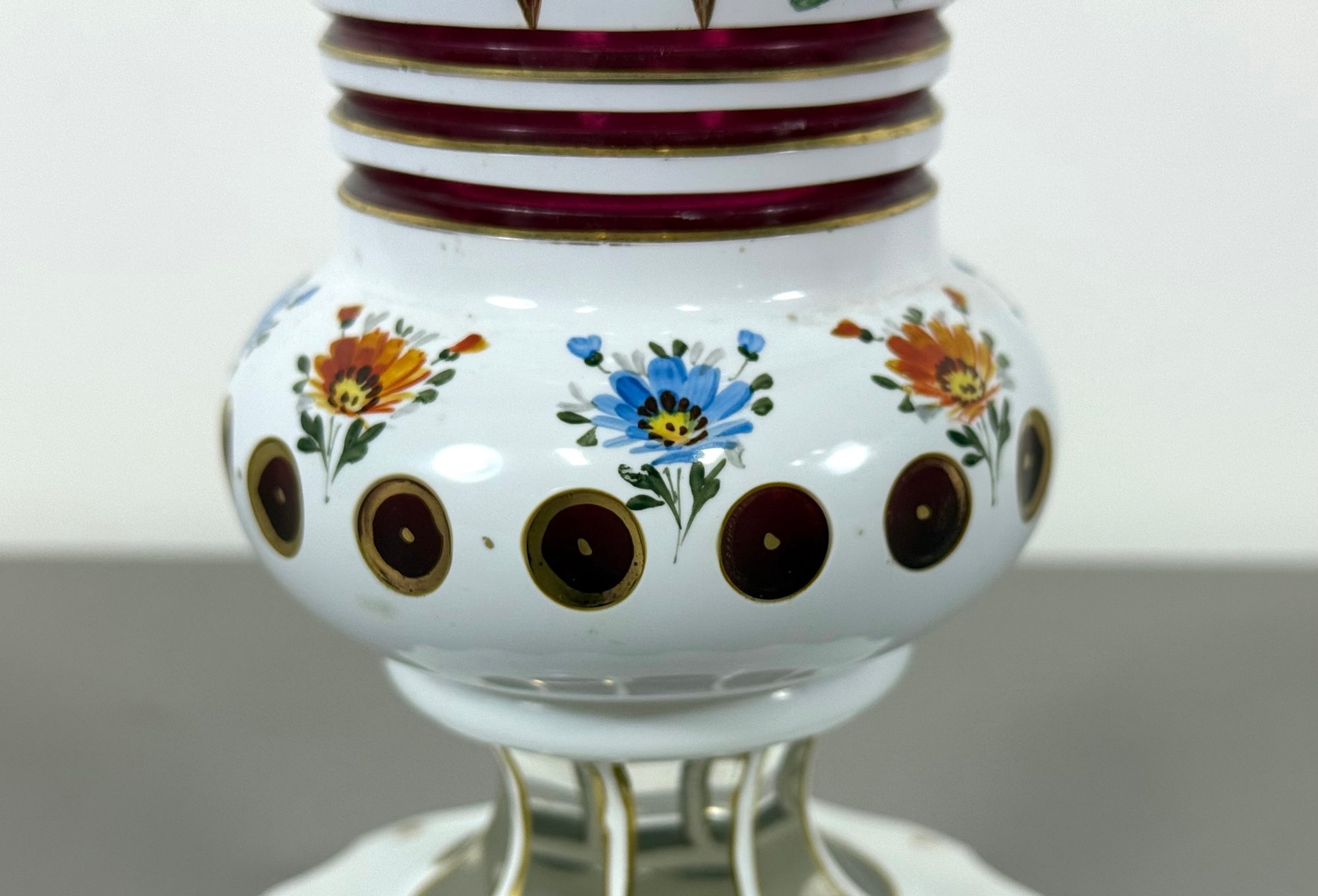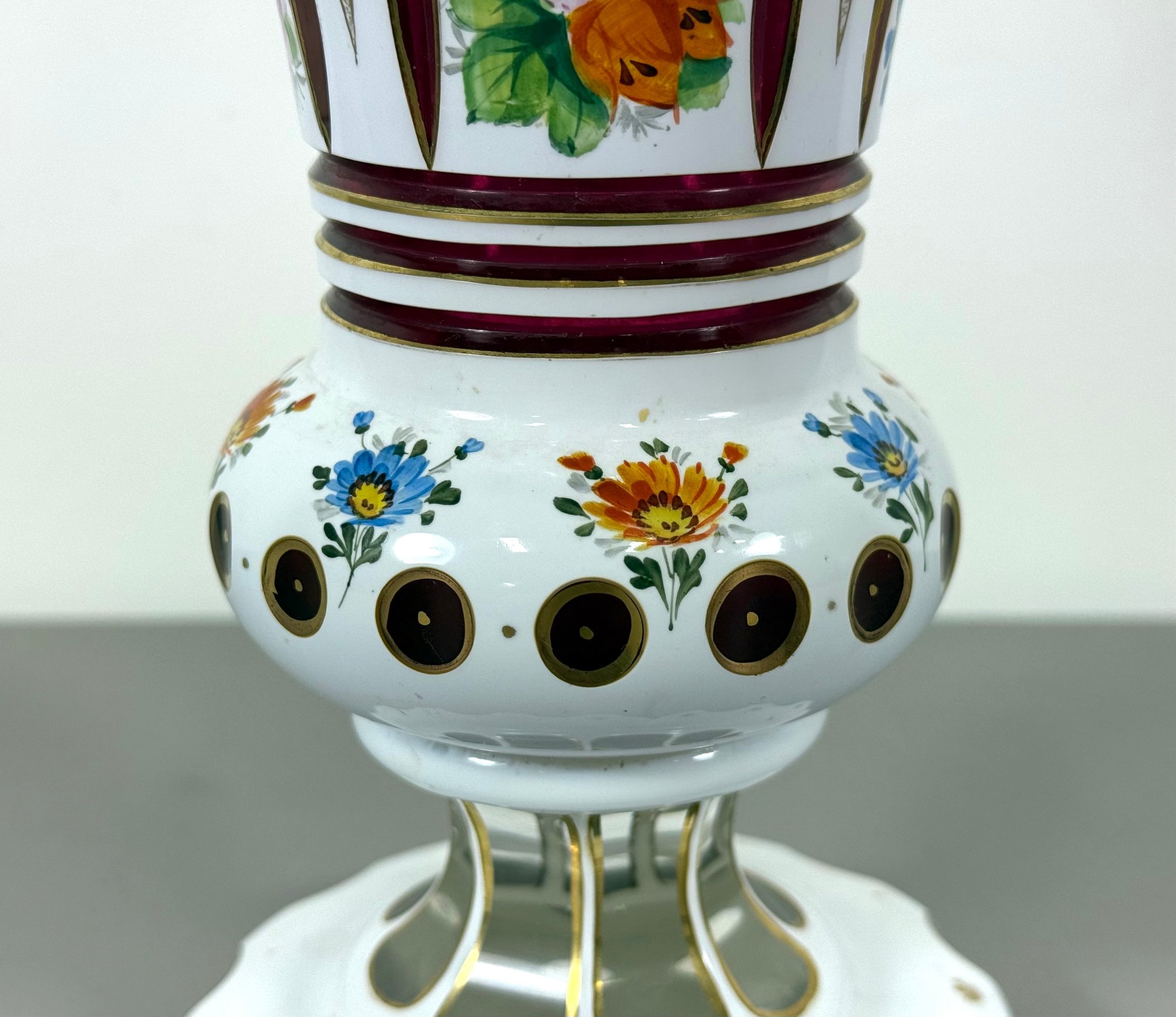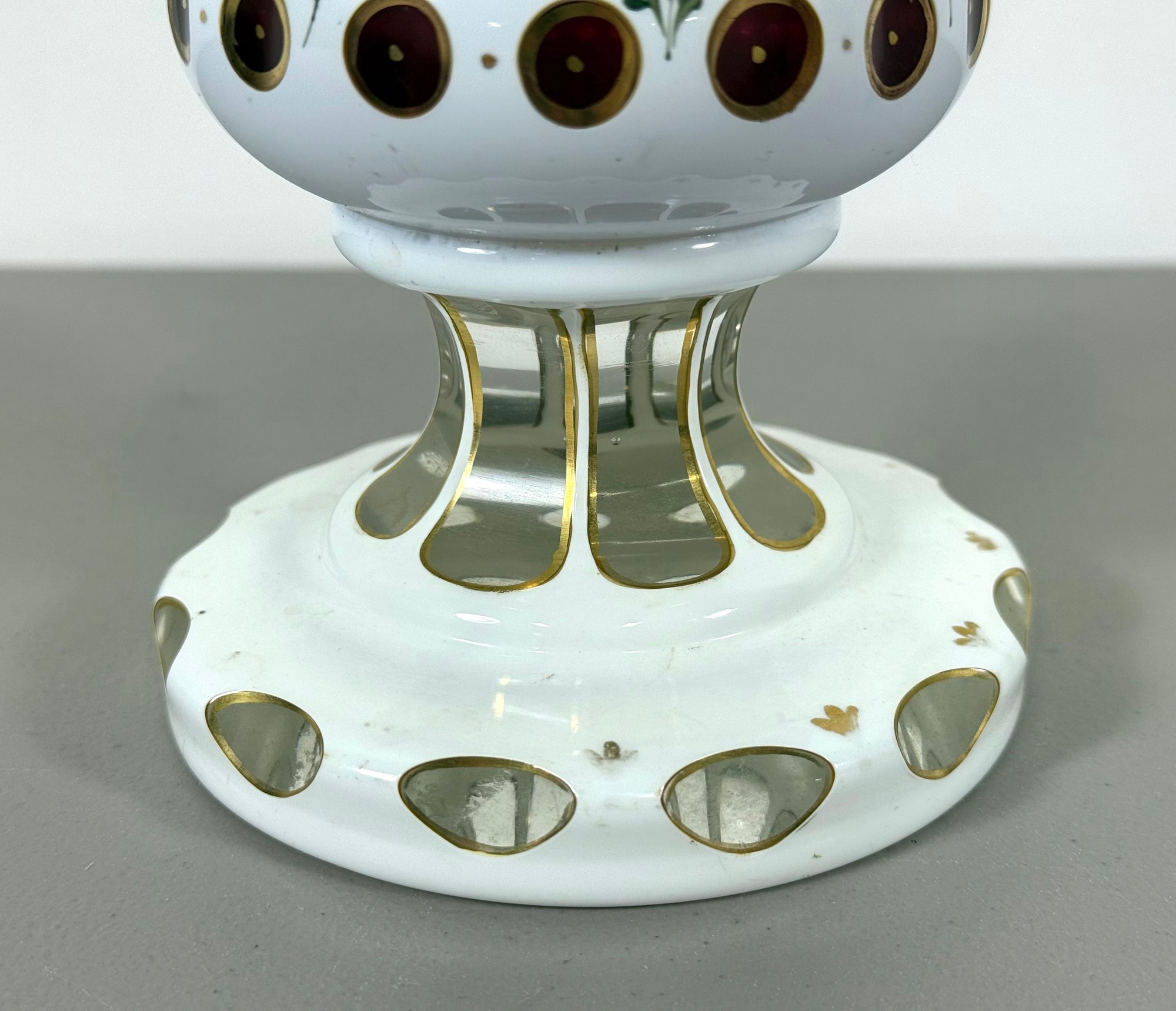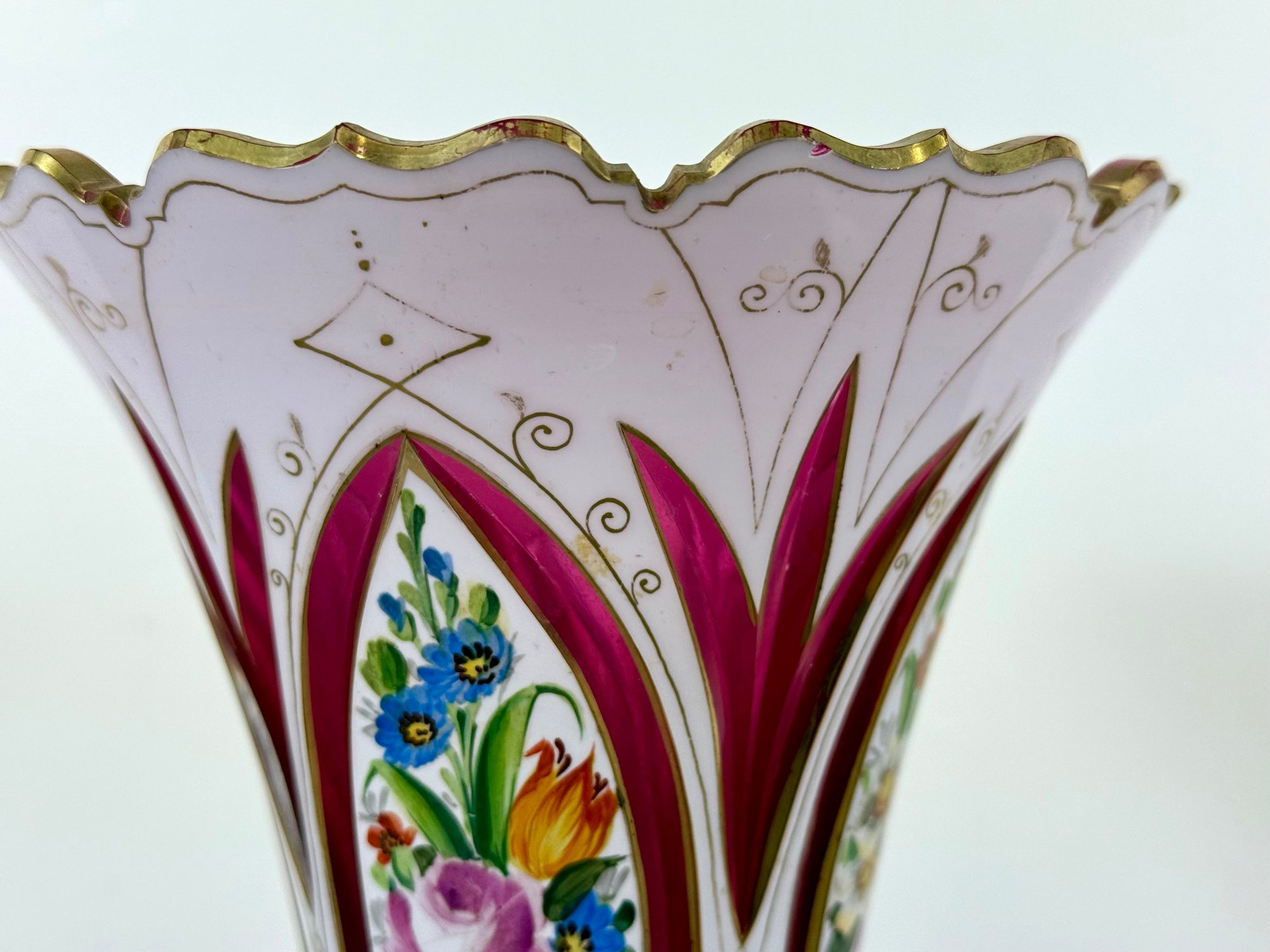 19th C. Cut to Clear/Cranberry Enamel Overlay Vase