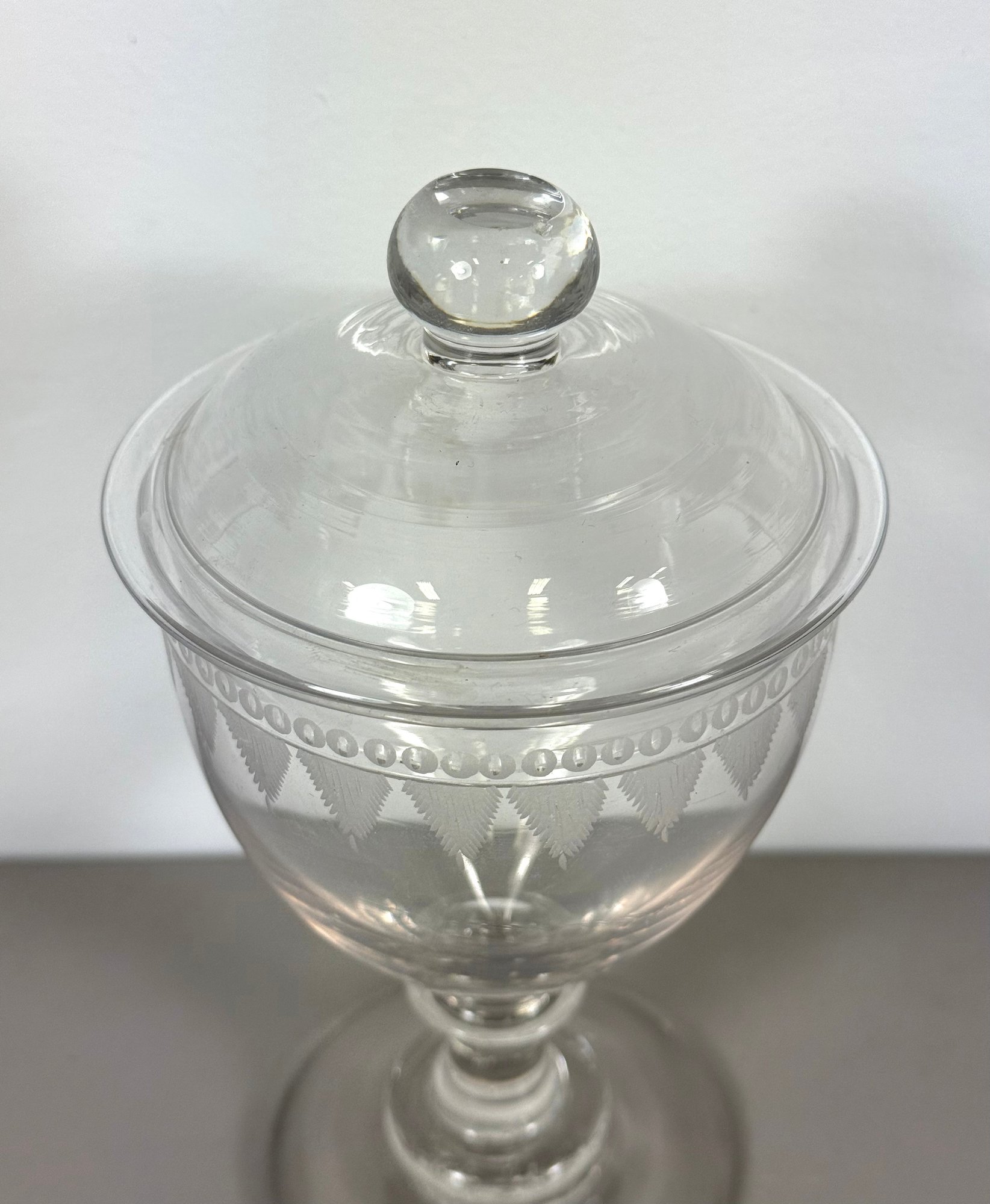 19th C. Etched Glass Candy Jar & Lid