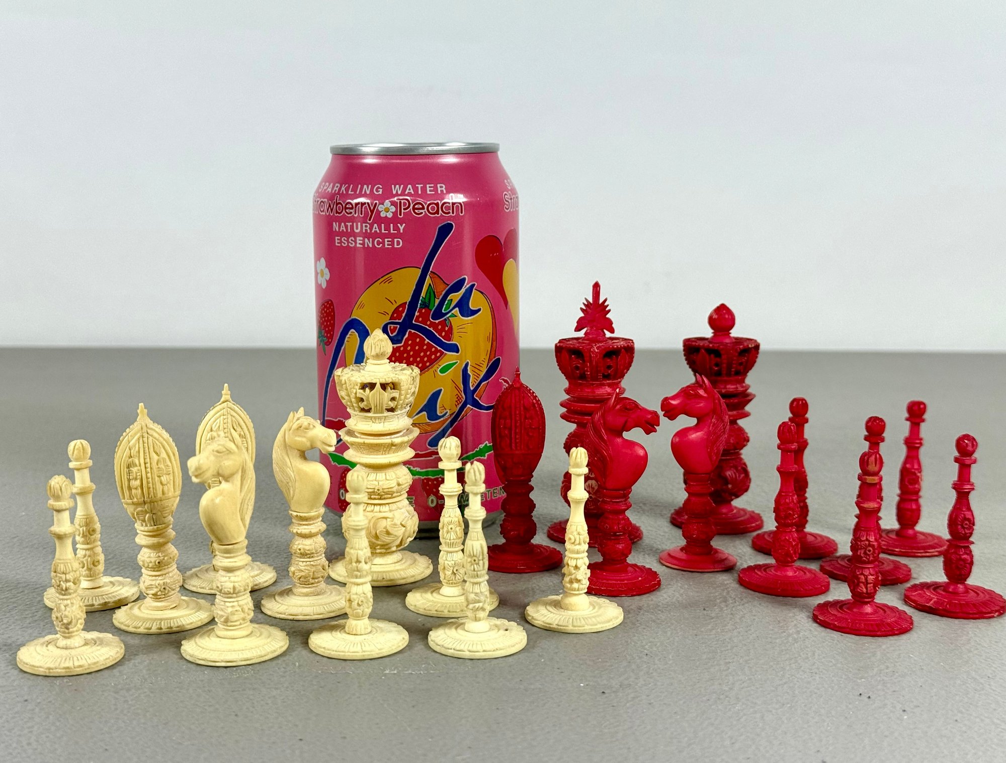 19th C. Hand Carved Burmese Chess Set - Broken Pieces Pictured