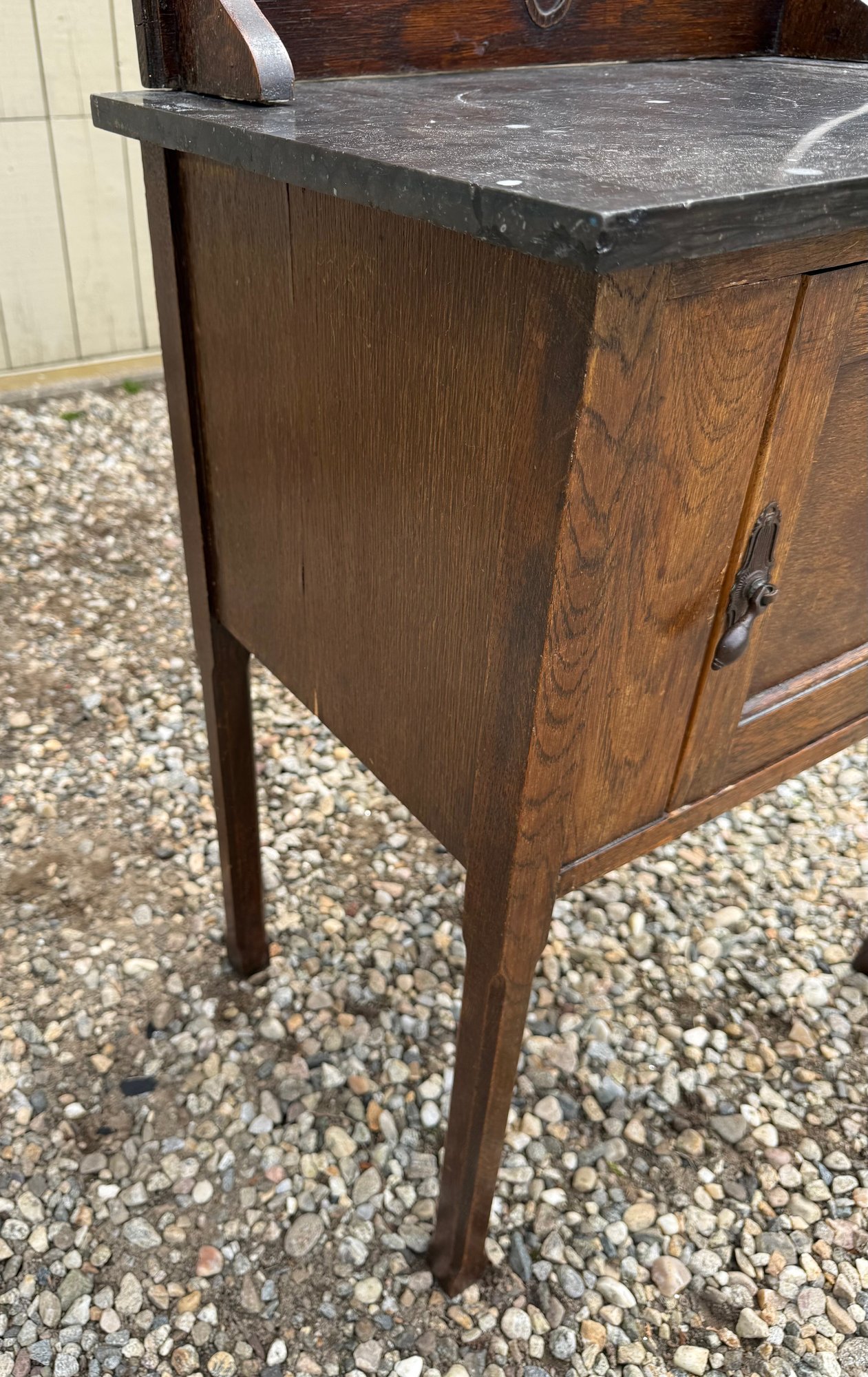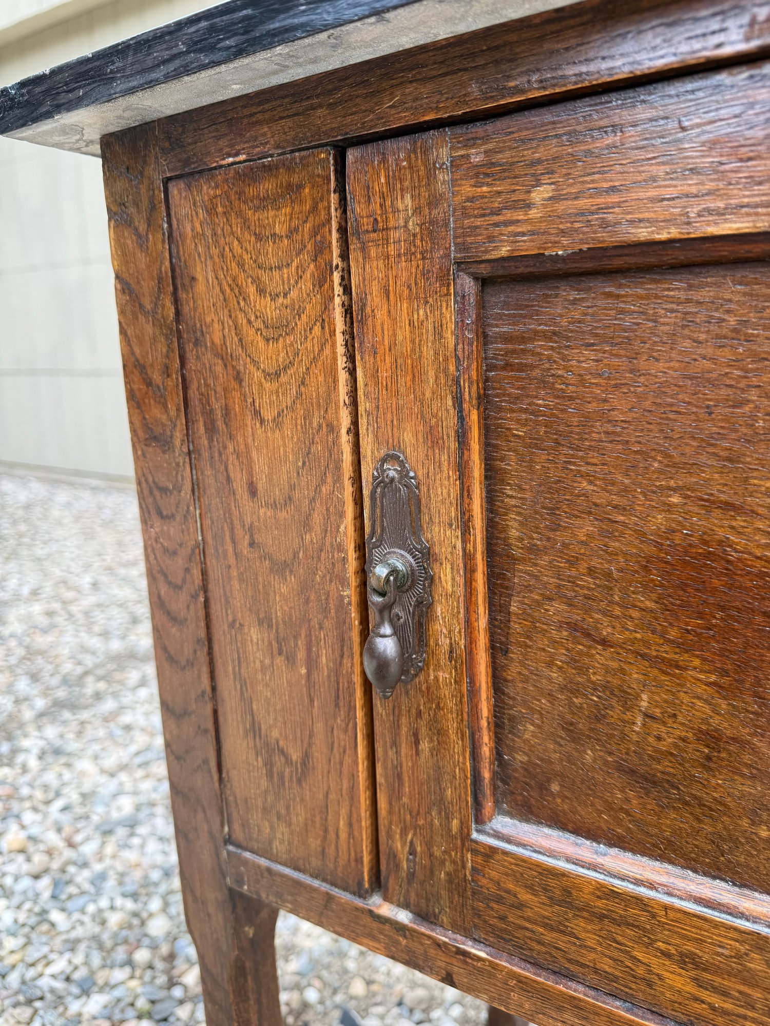 19th C. Marble Top Oak Cabinet/Wash Stand