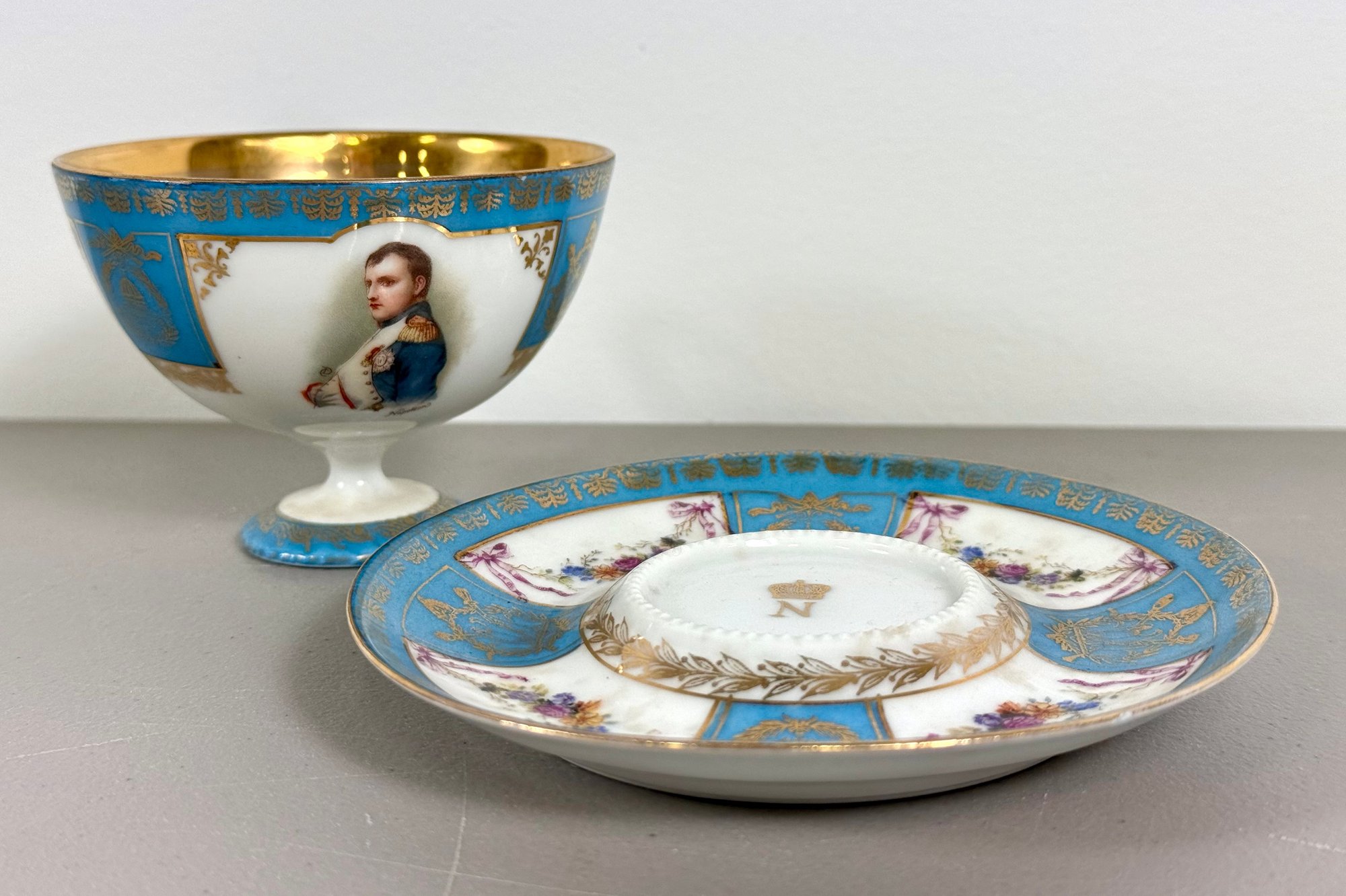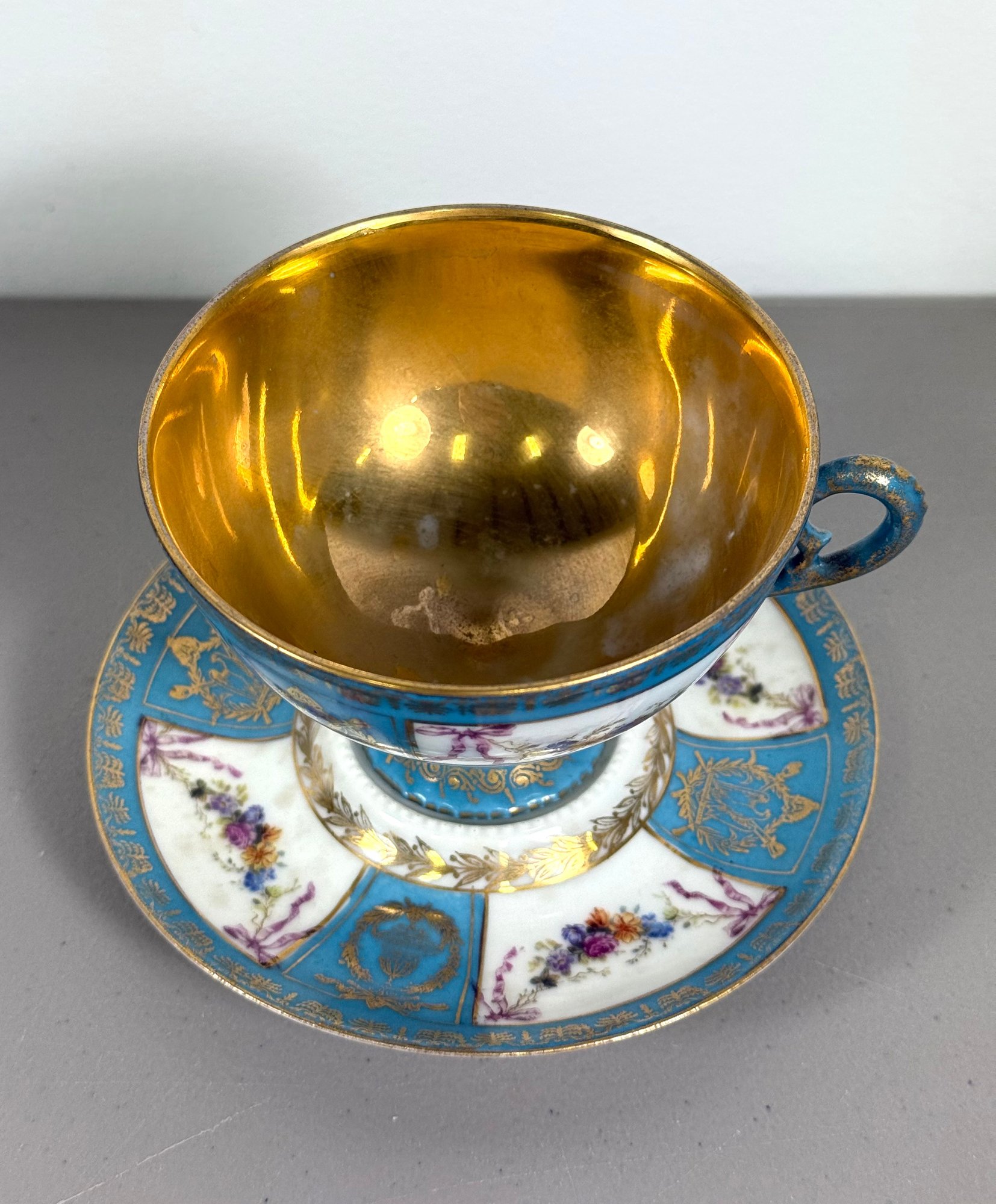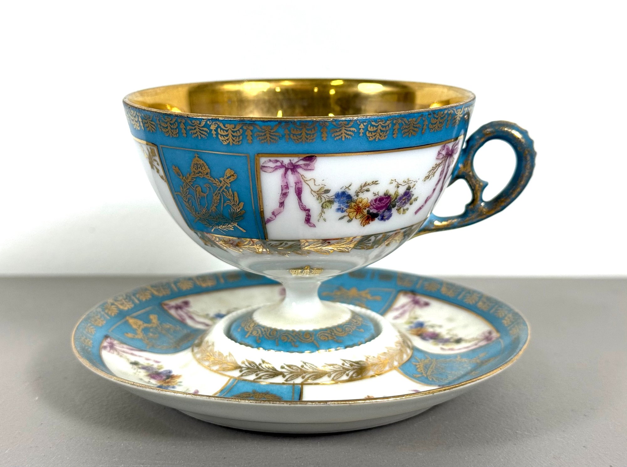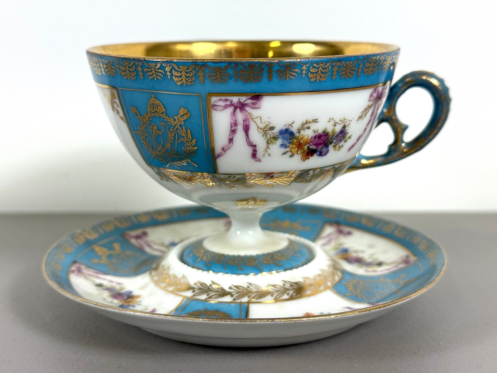 19th C. Sevres Napoleon Teacup & Saucer