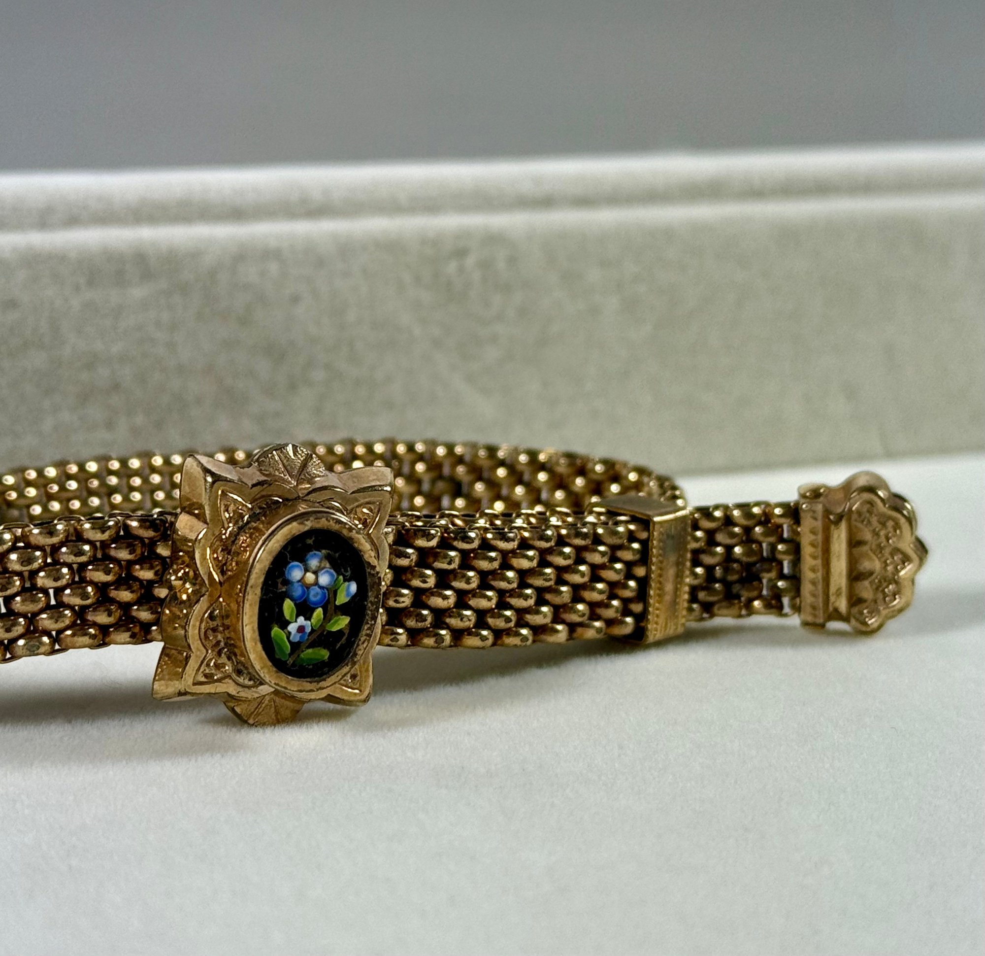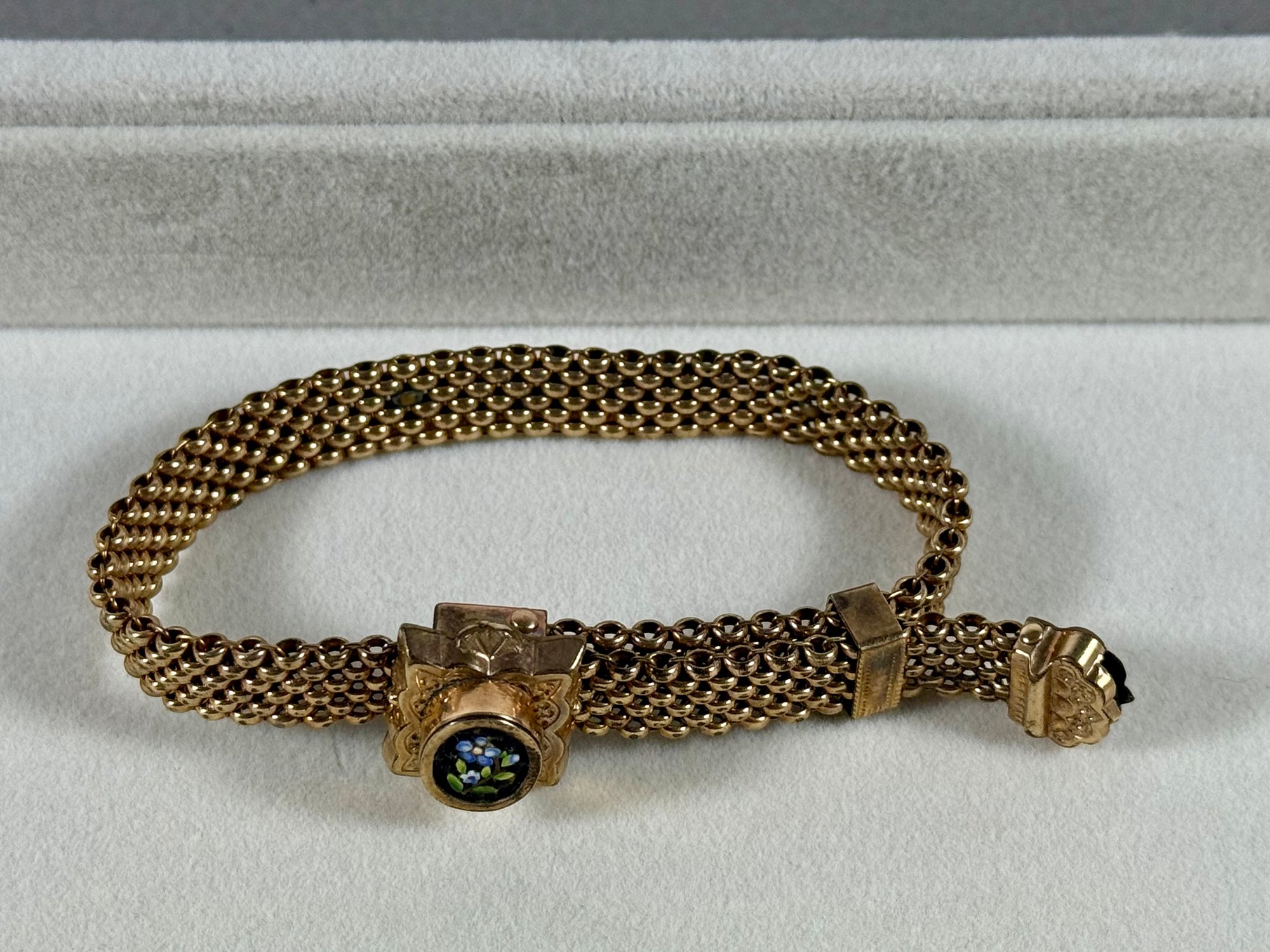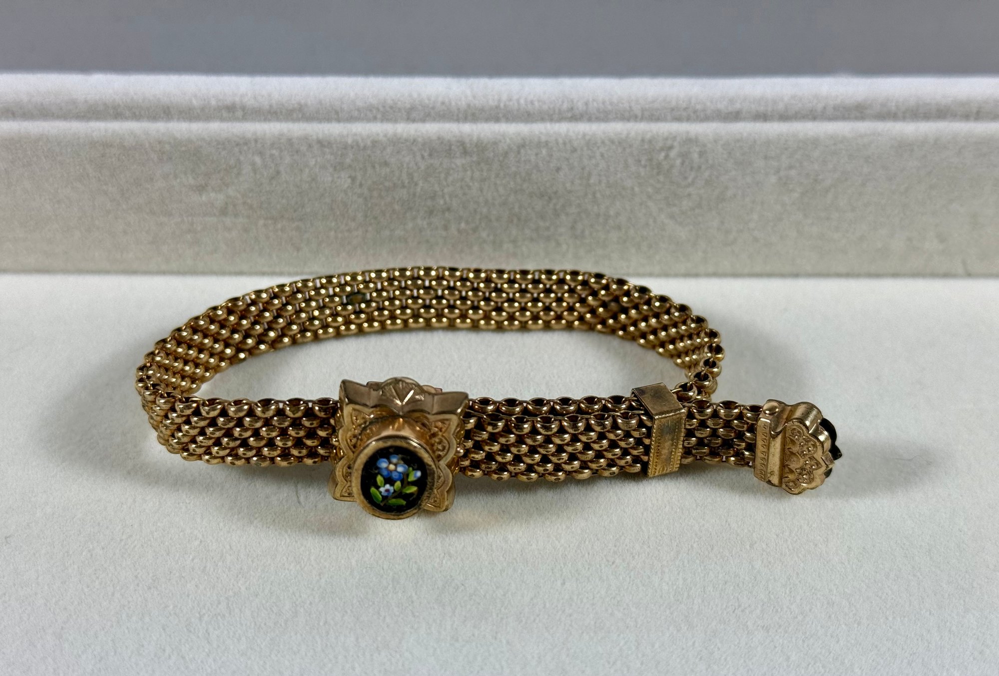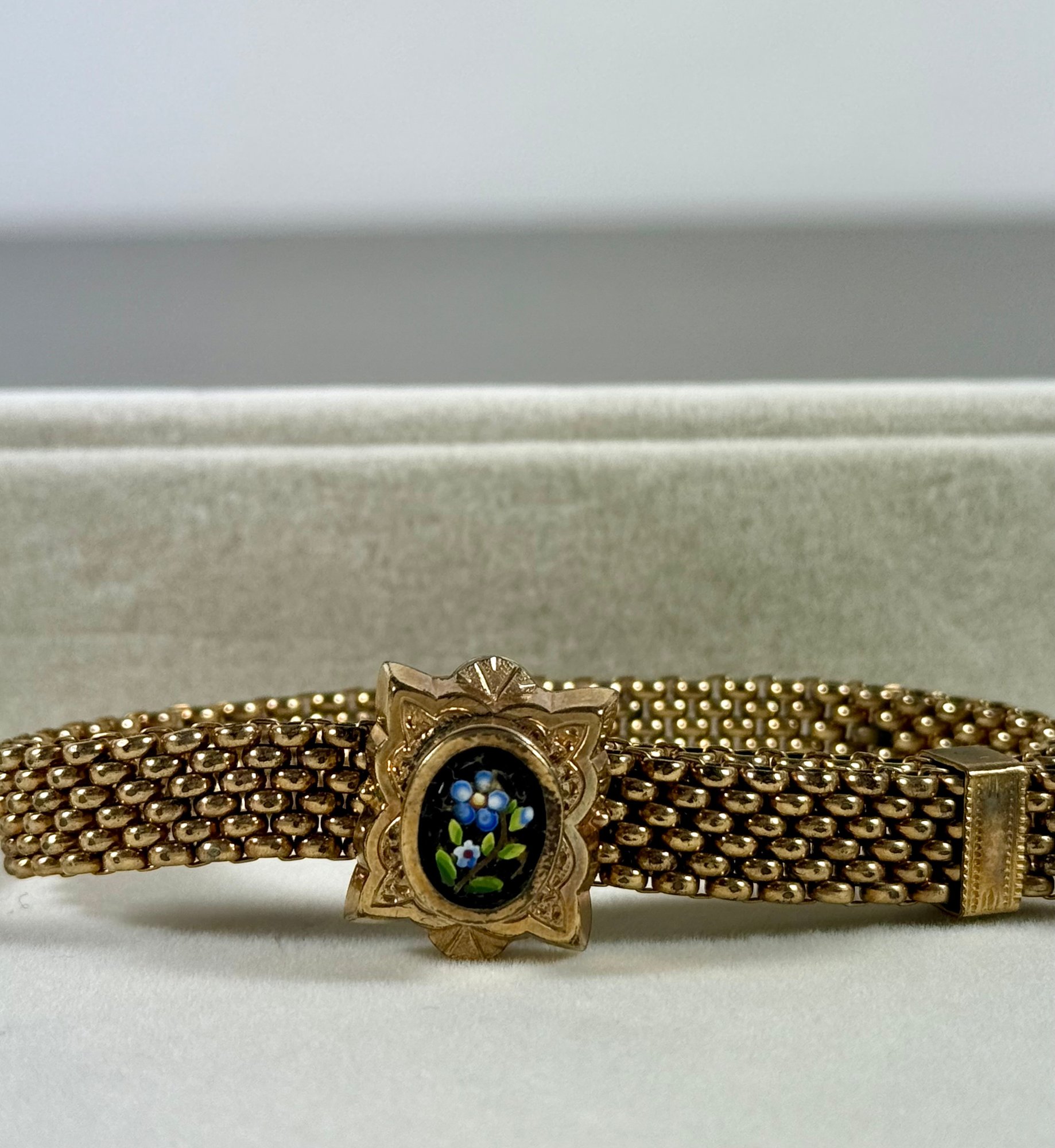 19th C. Victorian Slide Bracelet With Hand Painted Floral