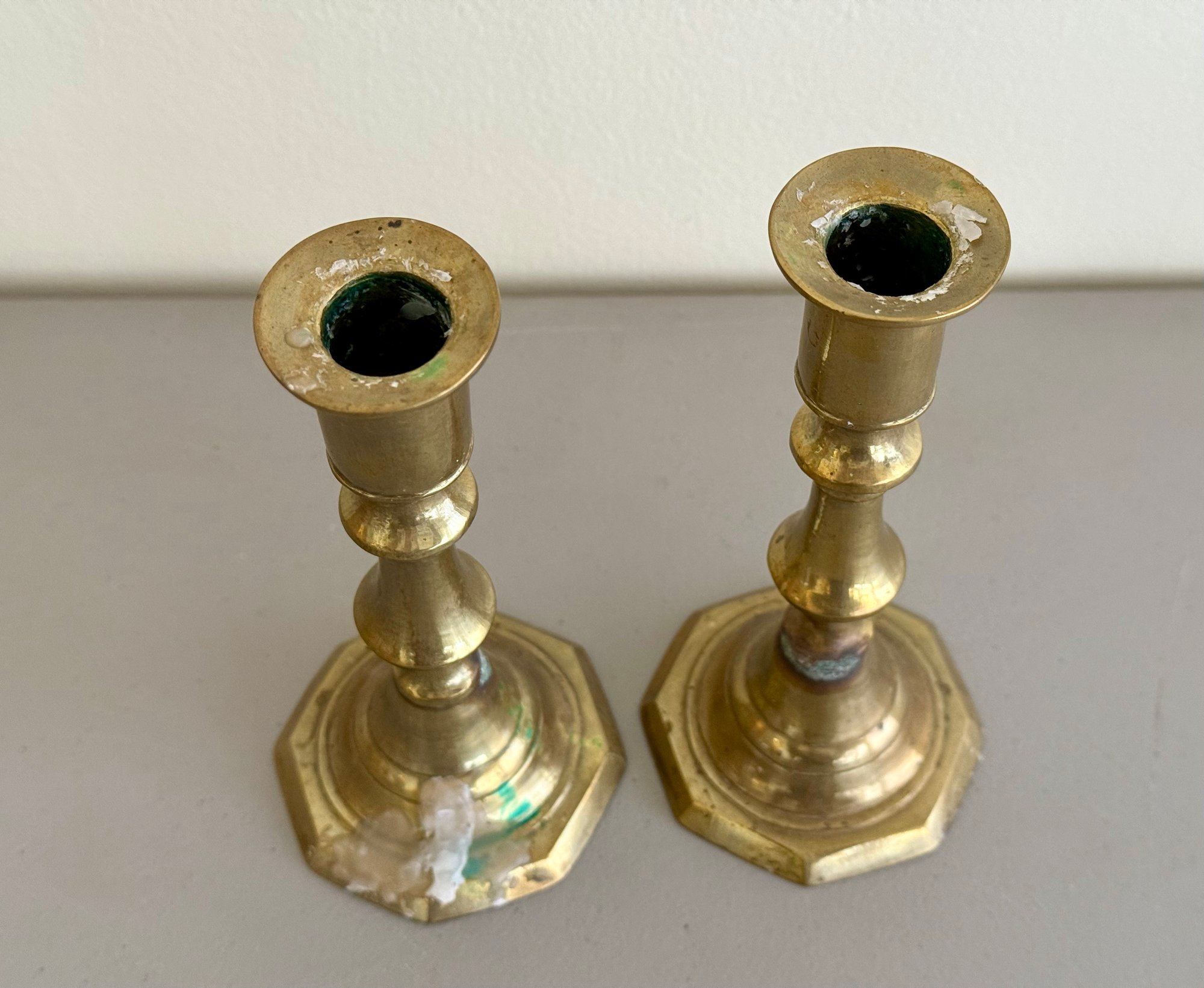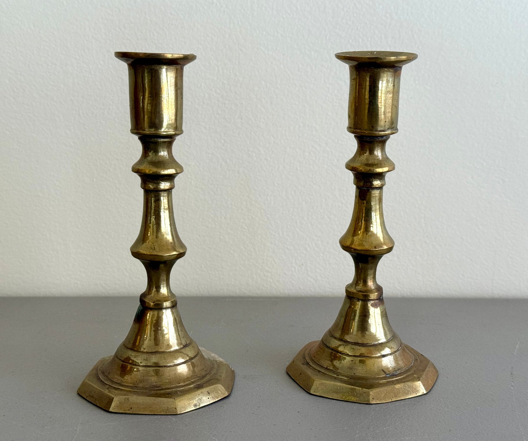(2) Pairs of 19th C. Solid Brass Candlesticks