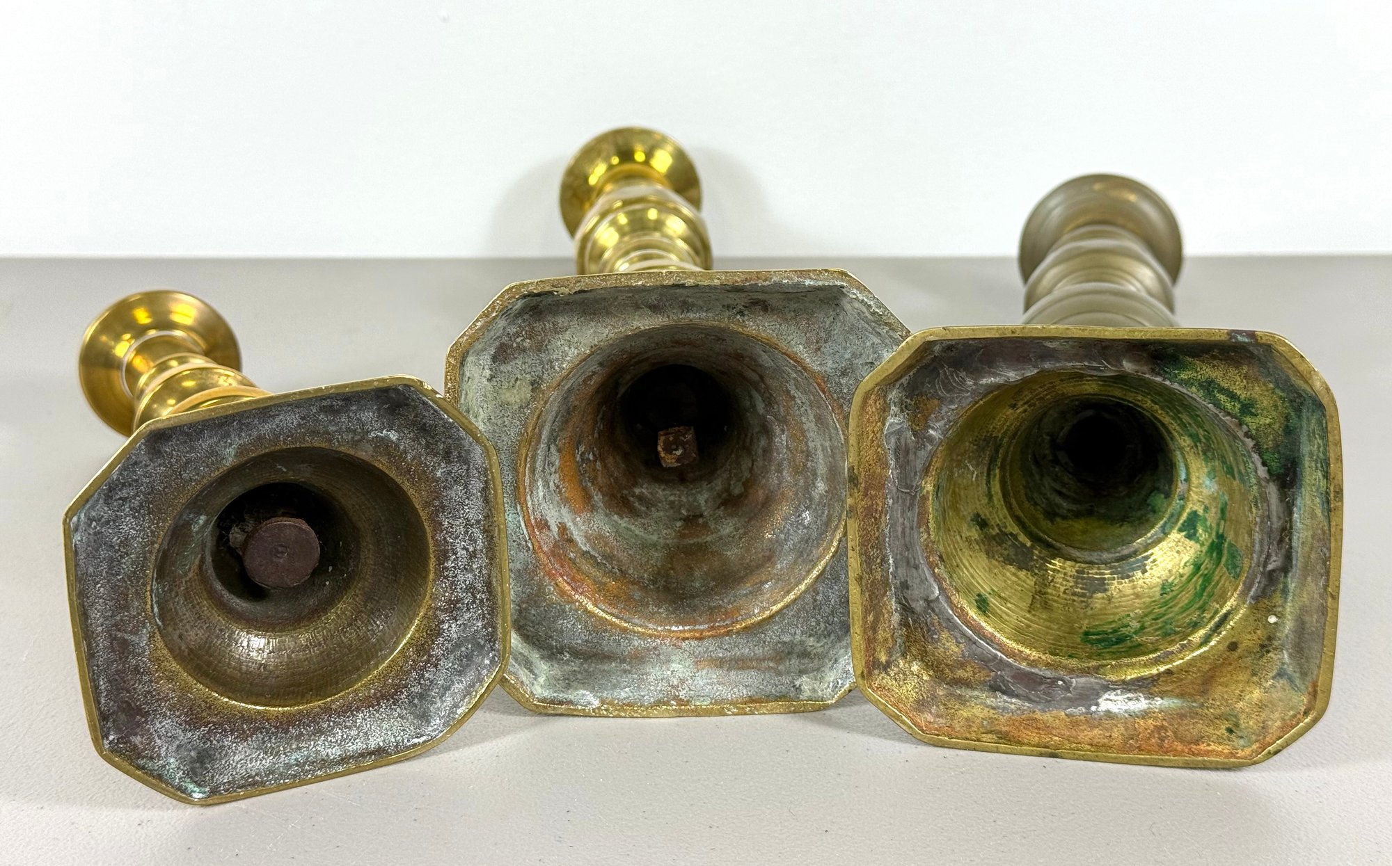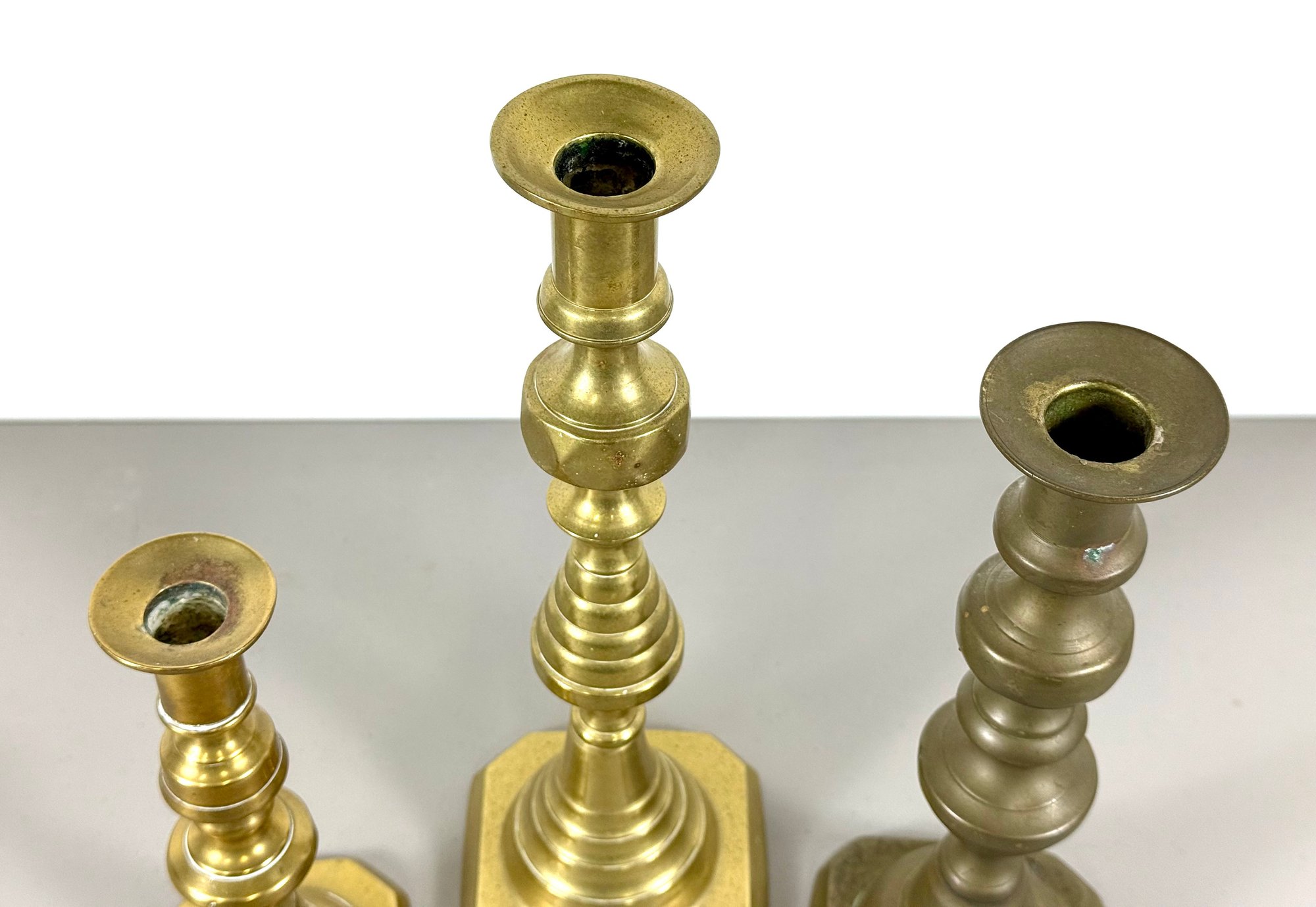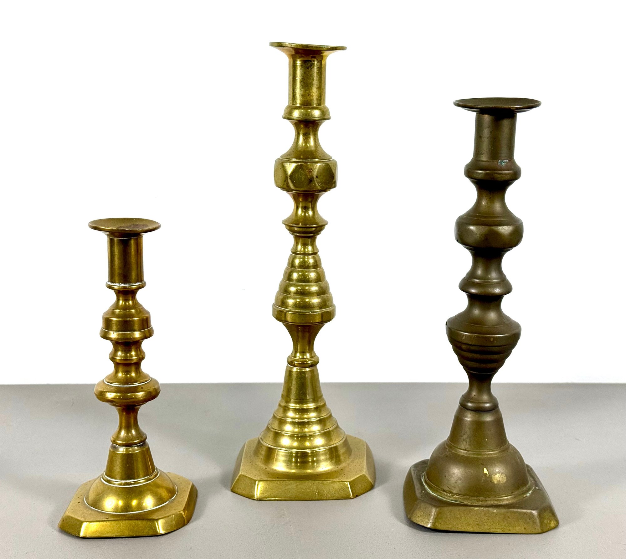 (3) 18th C. Brass Candlesticks