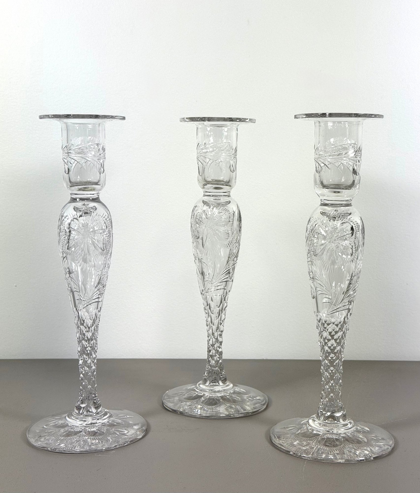 (3) 19th C. Pairpoint Cut Glass Candlesticks