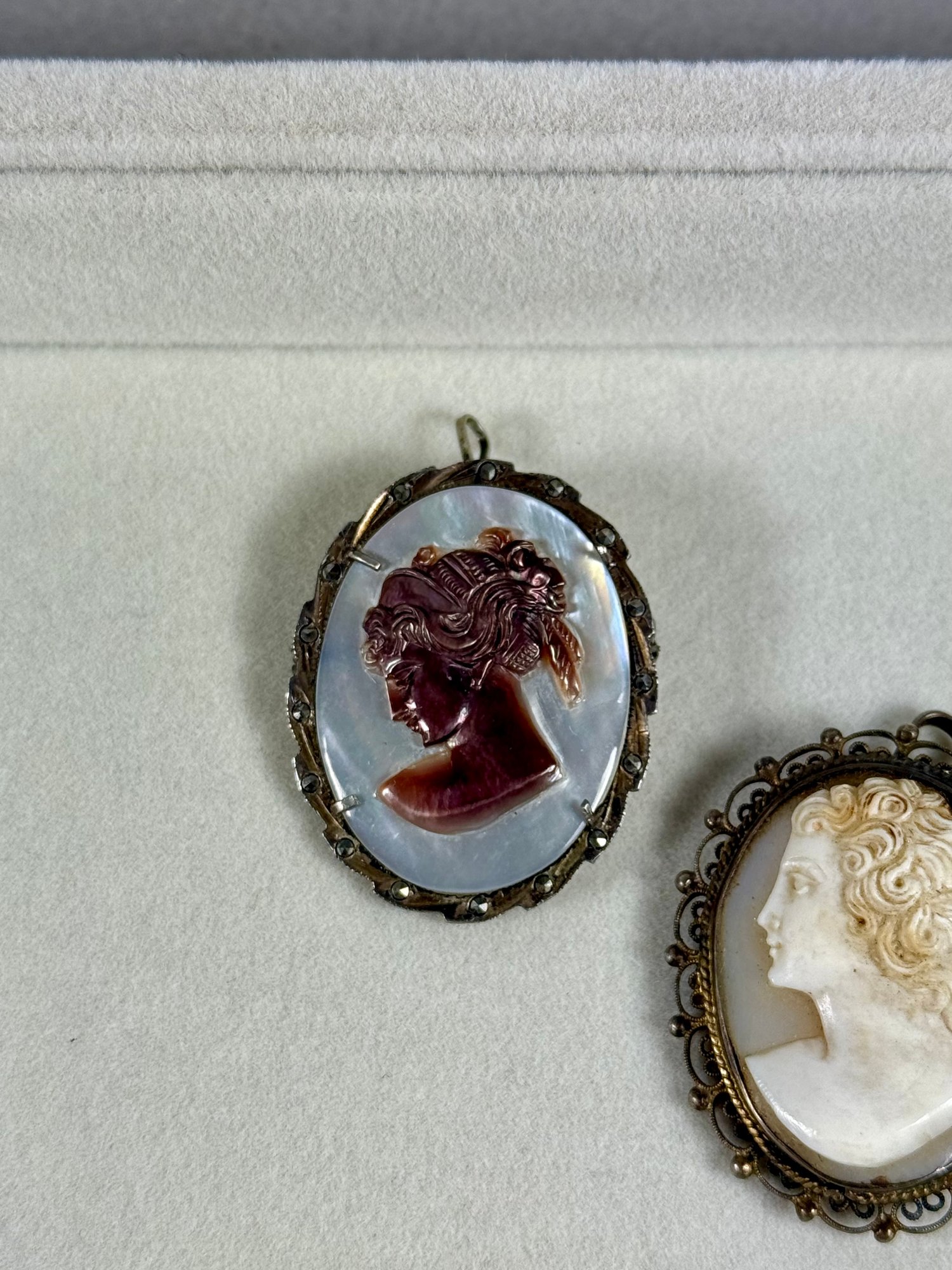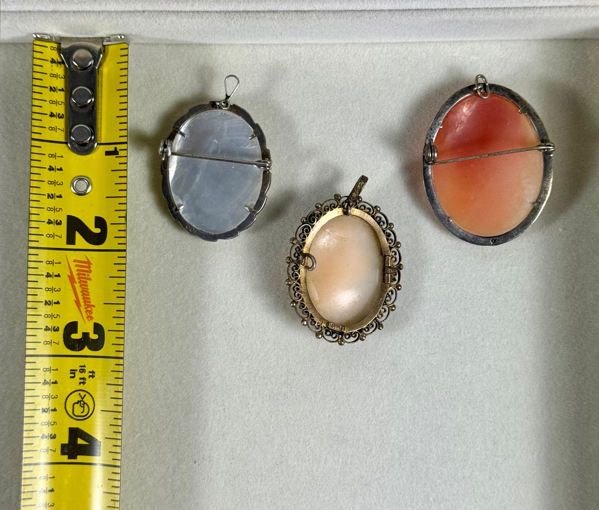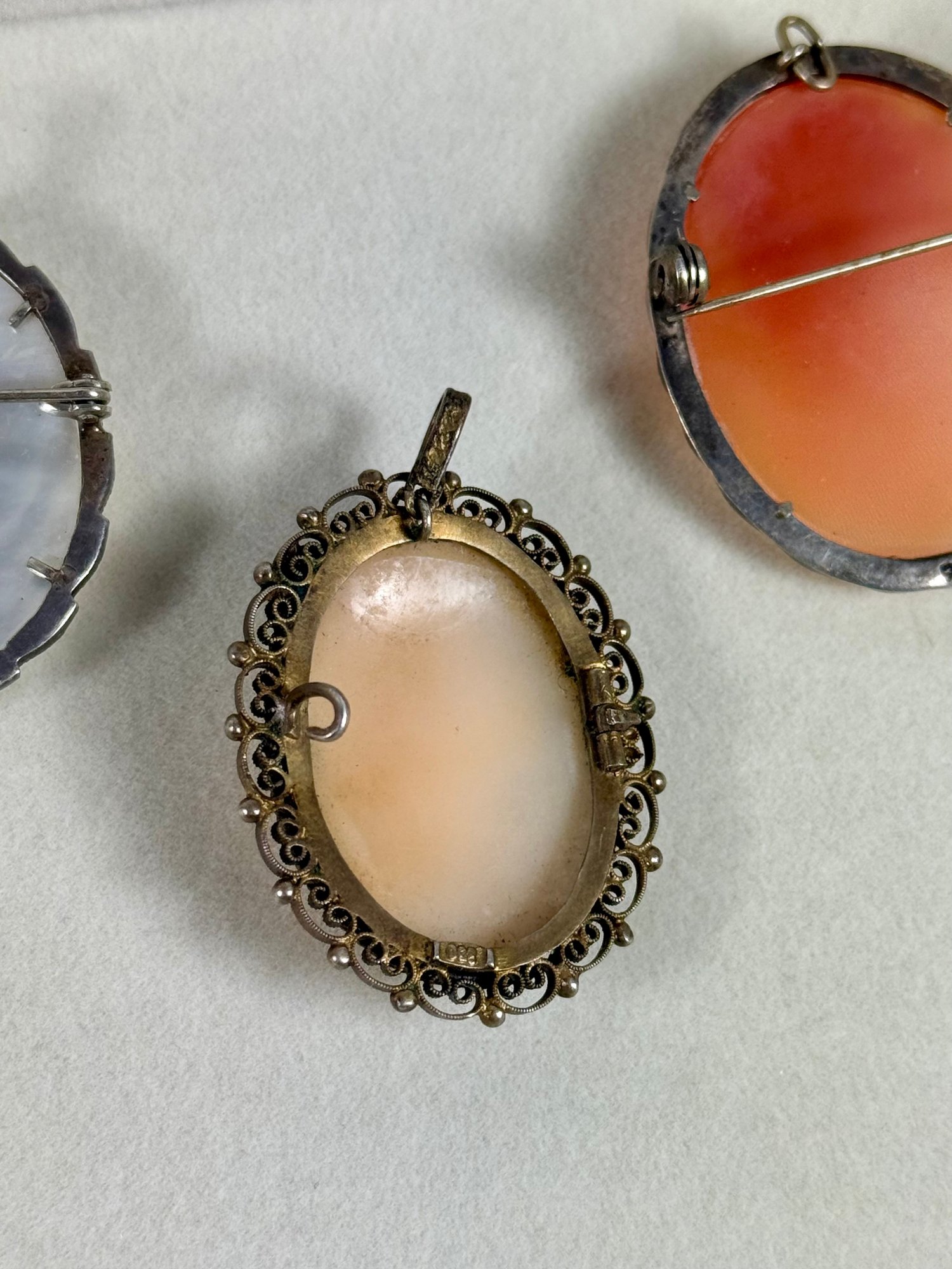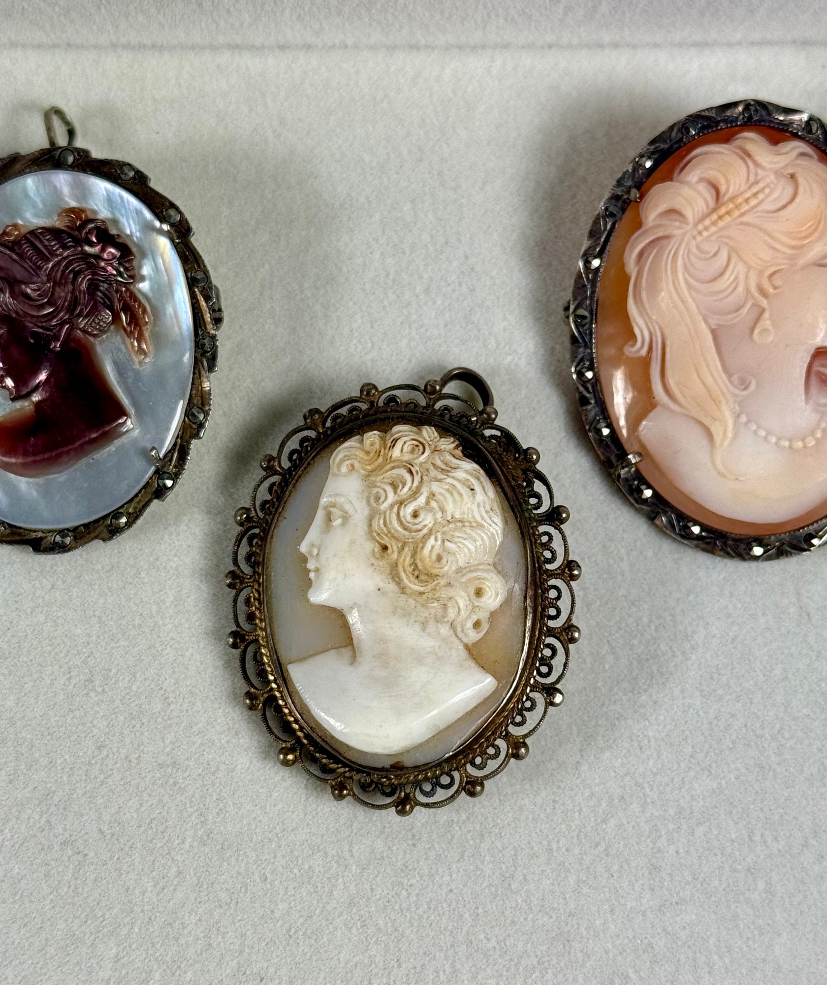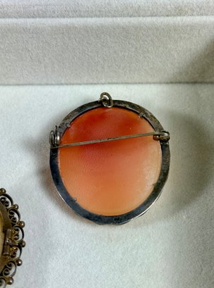 (3) Antique Cameo Brooches - Marked .800 Silver