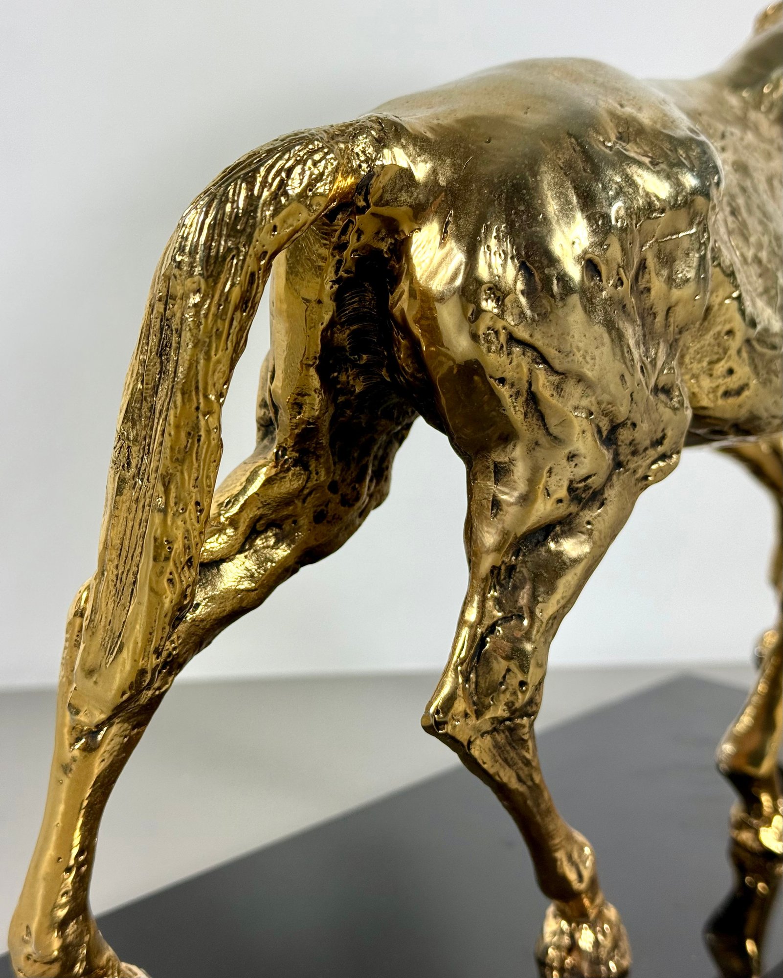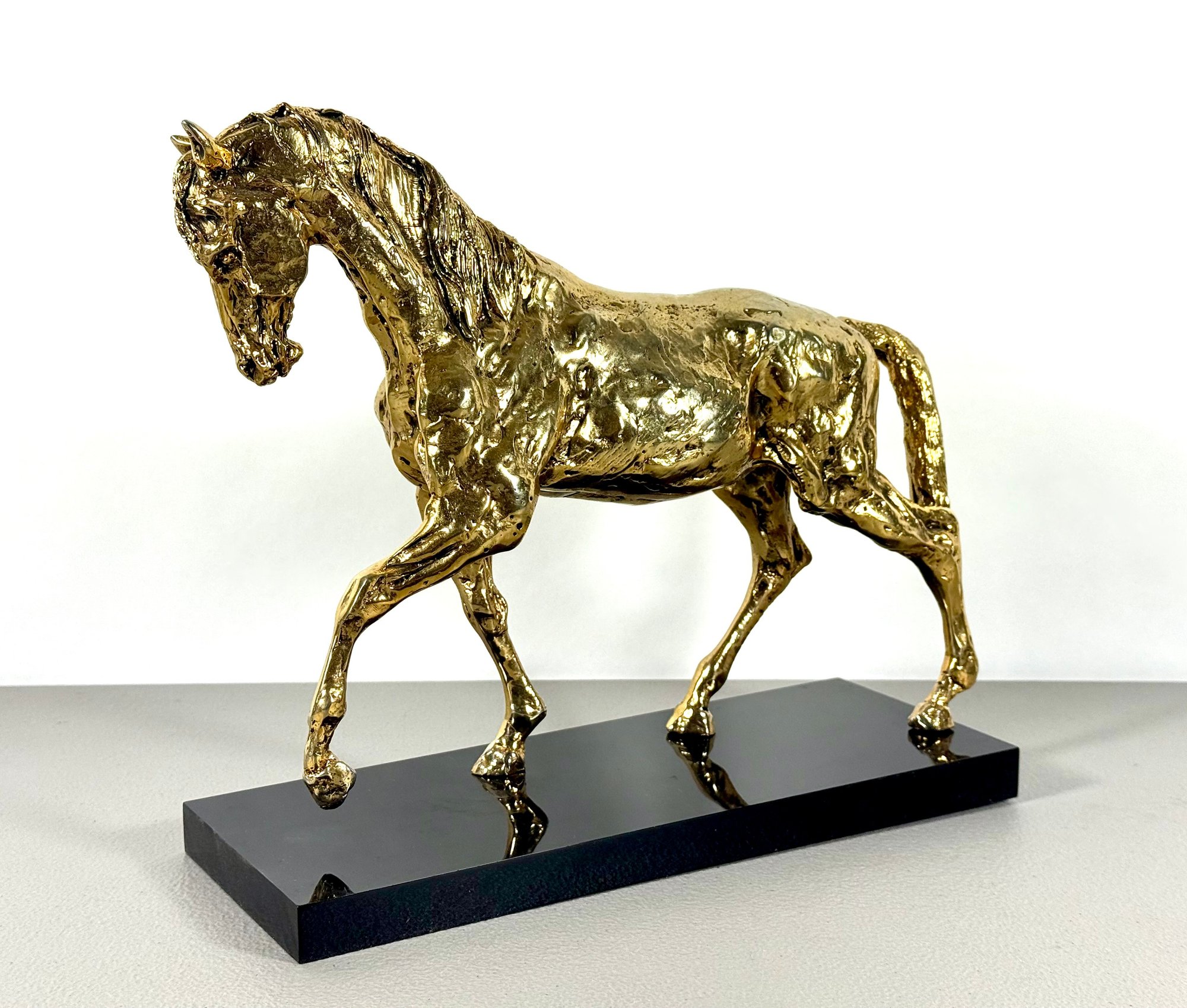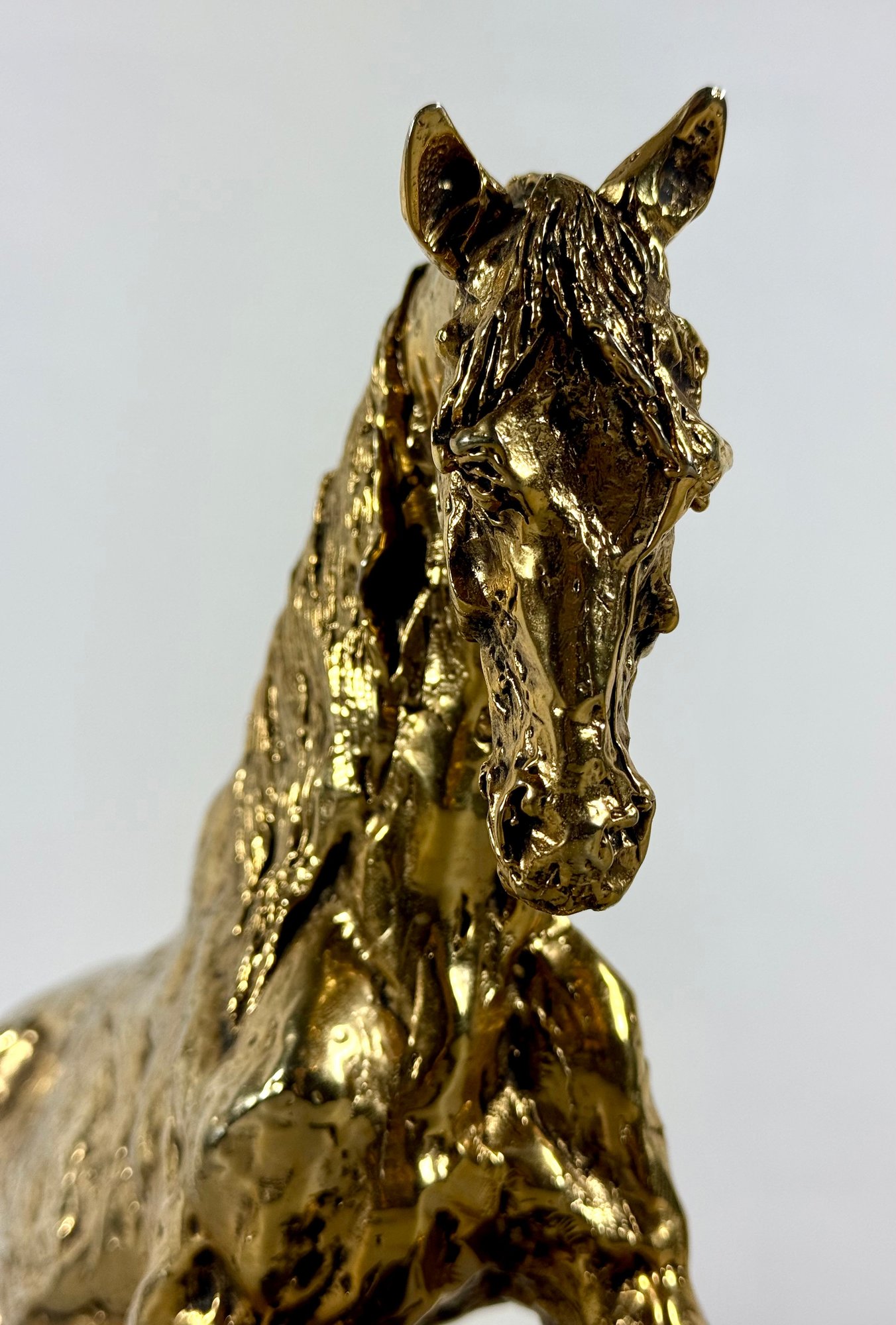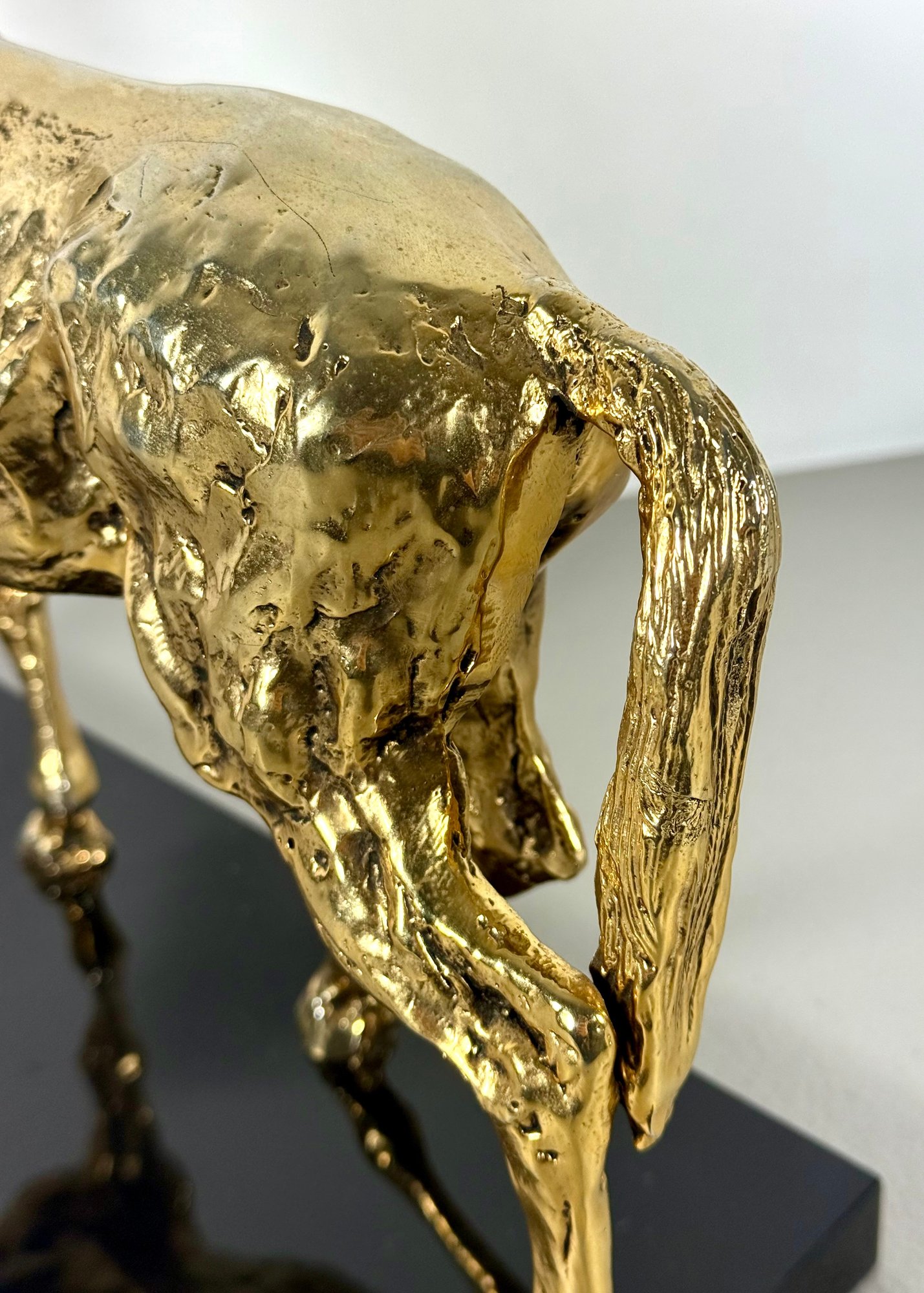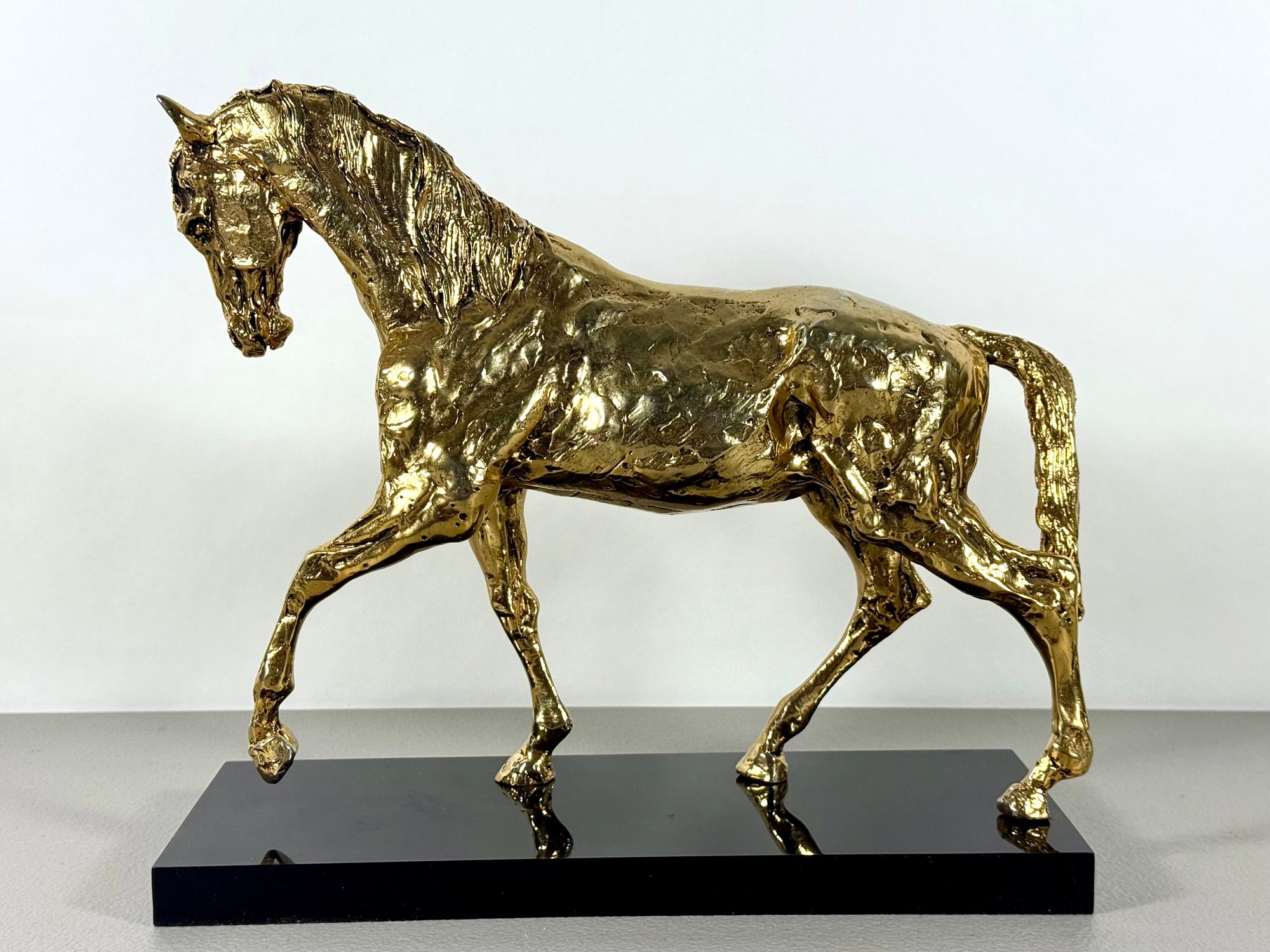 A Hefty Gilted Bronze Horse on Stone Base -1950s