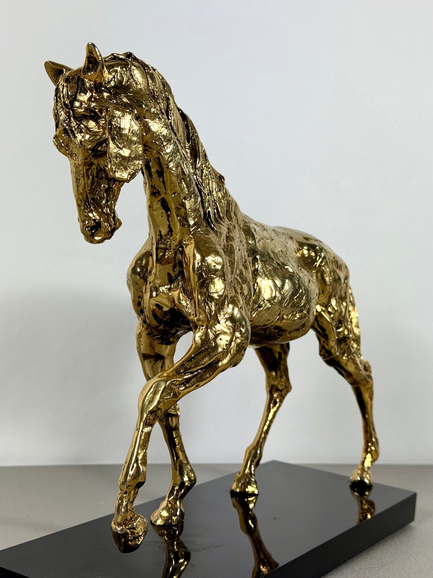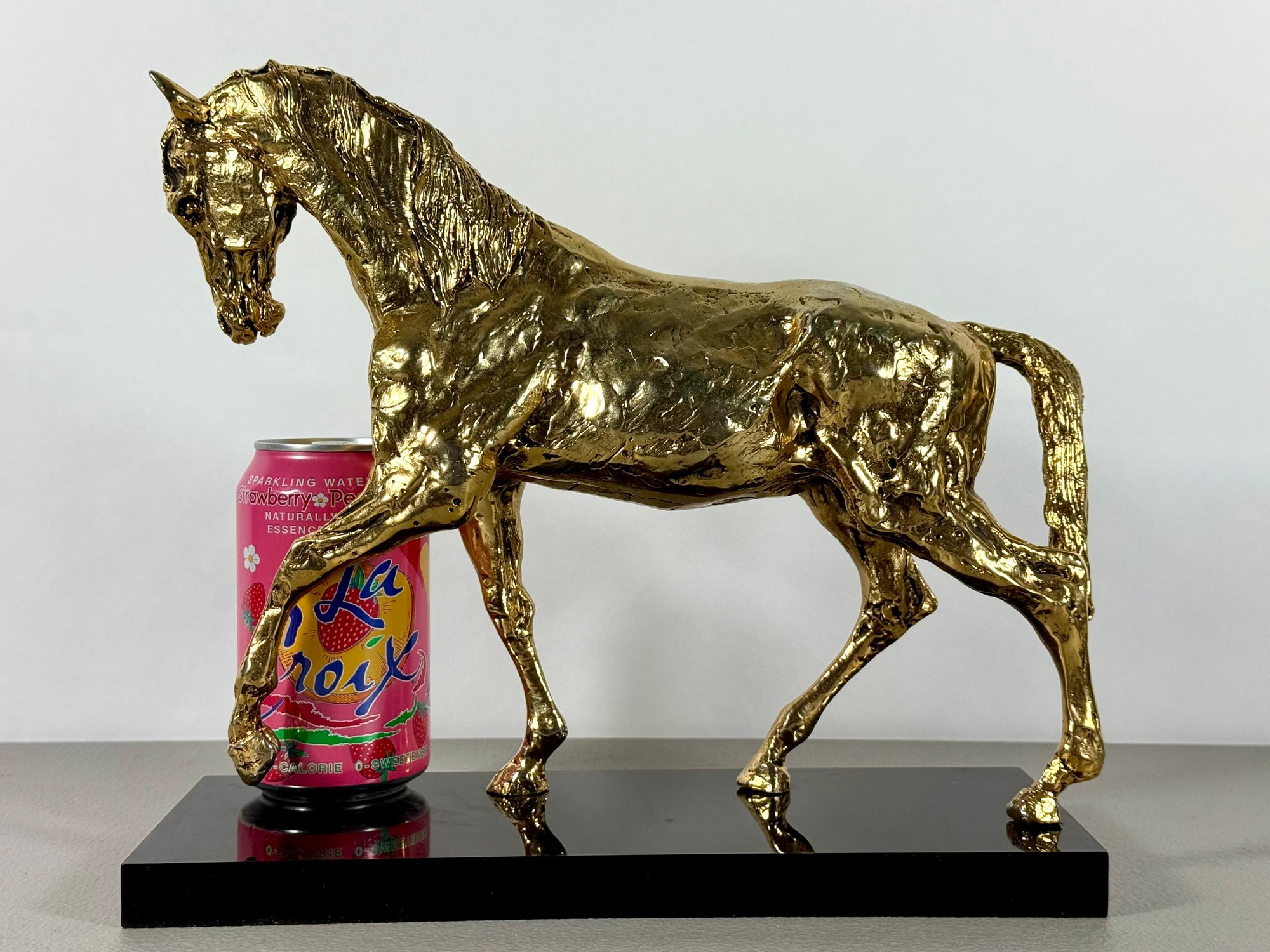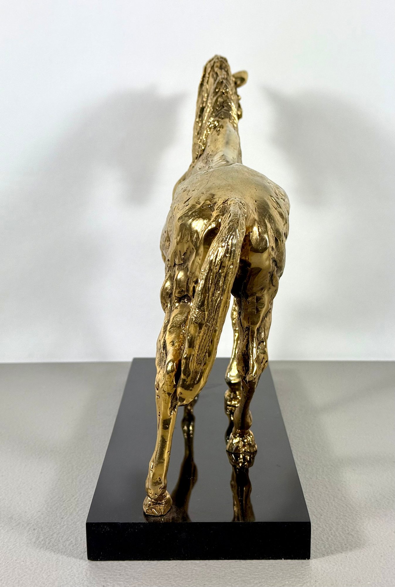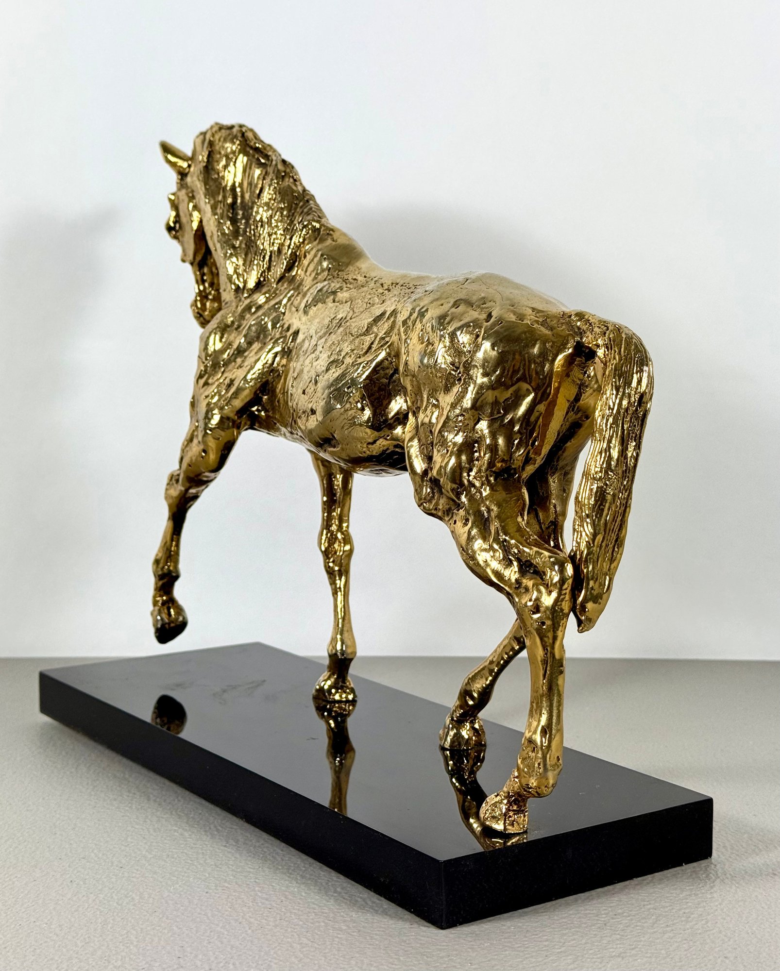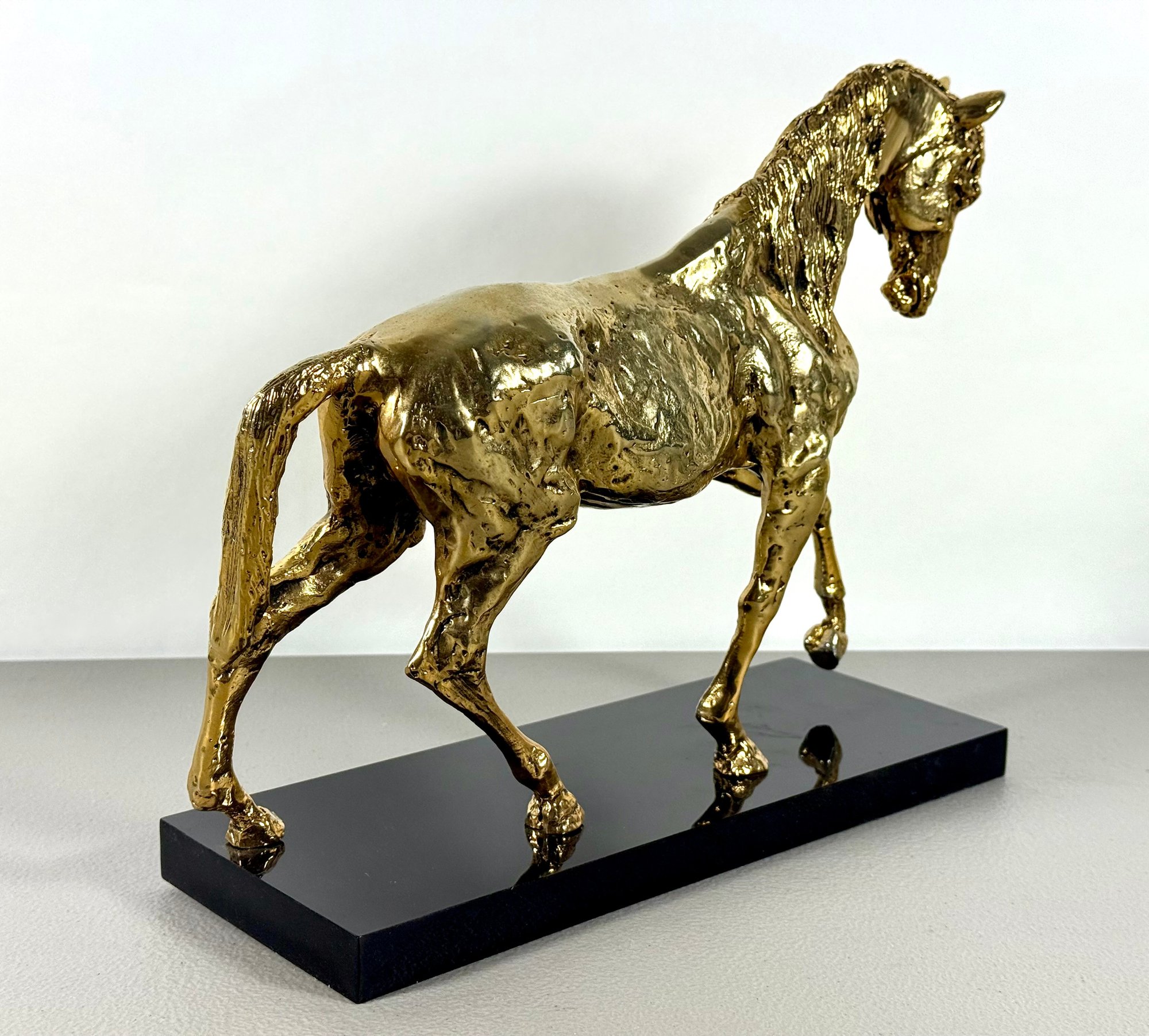 A Hefty Gilted Bronze Horse on Stone Base -1950s