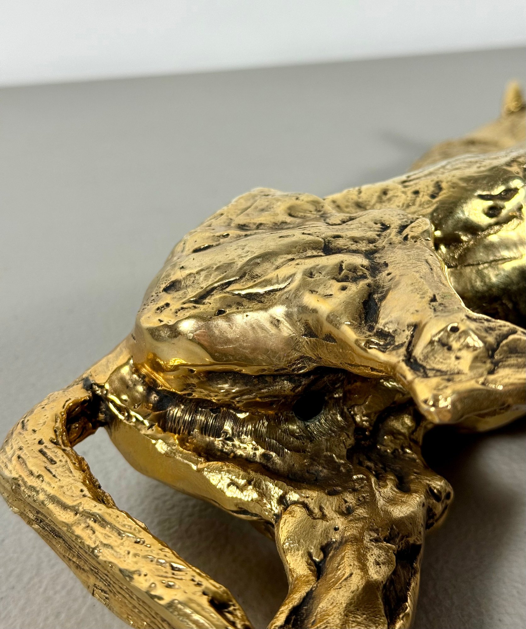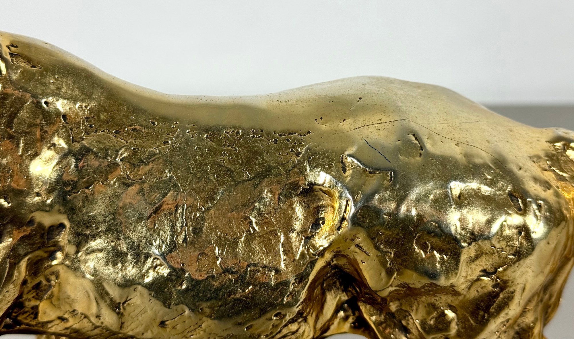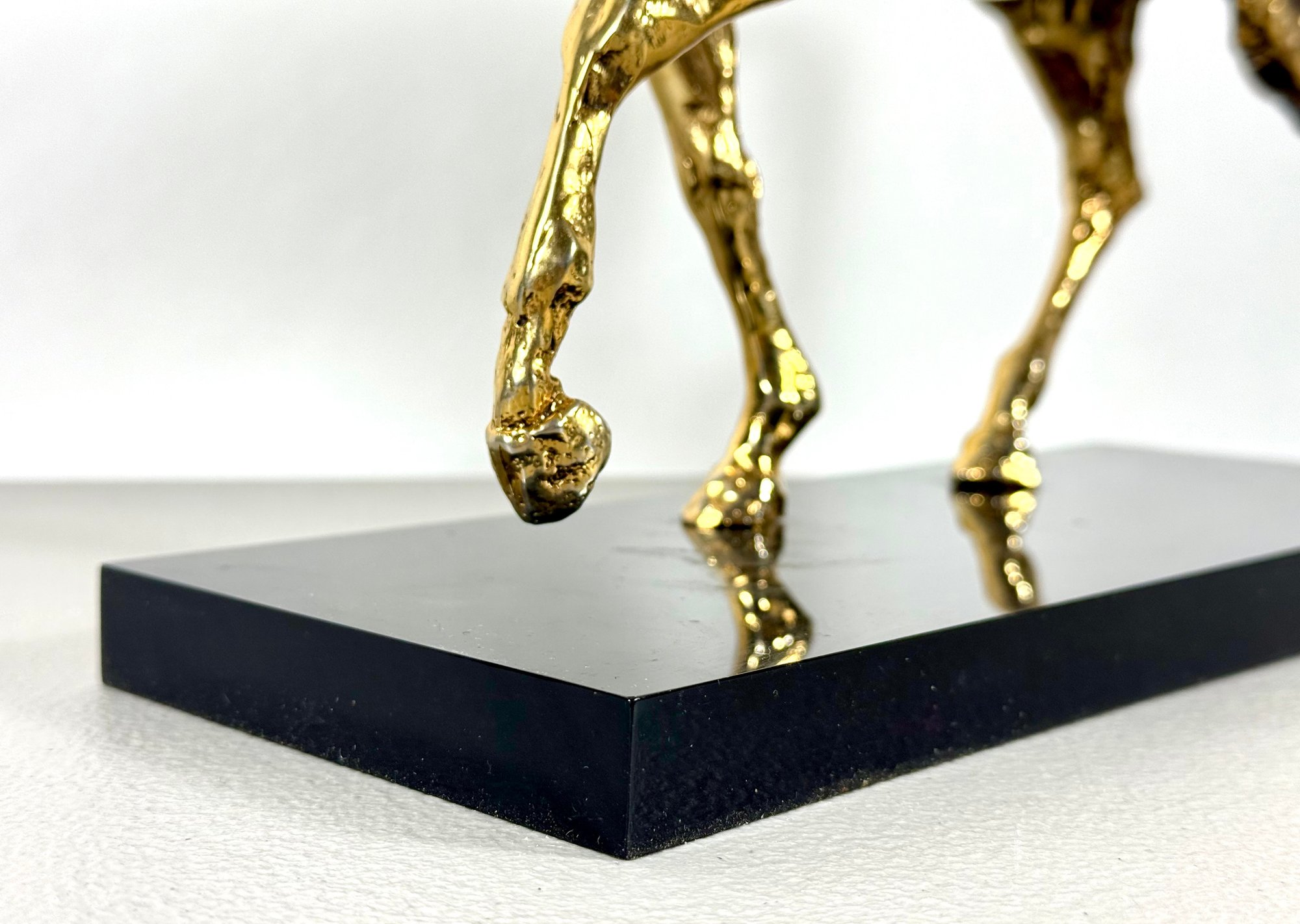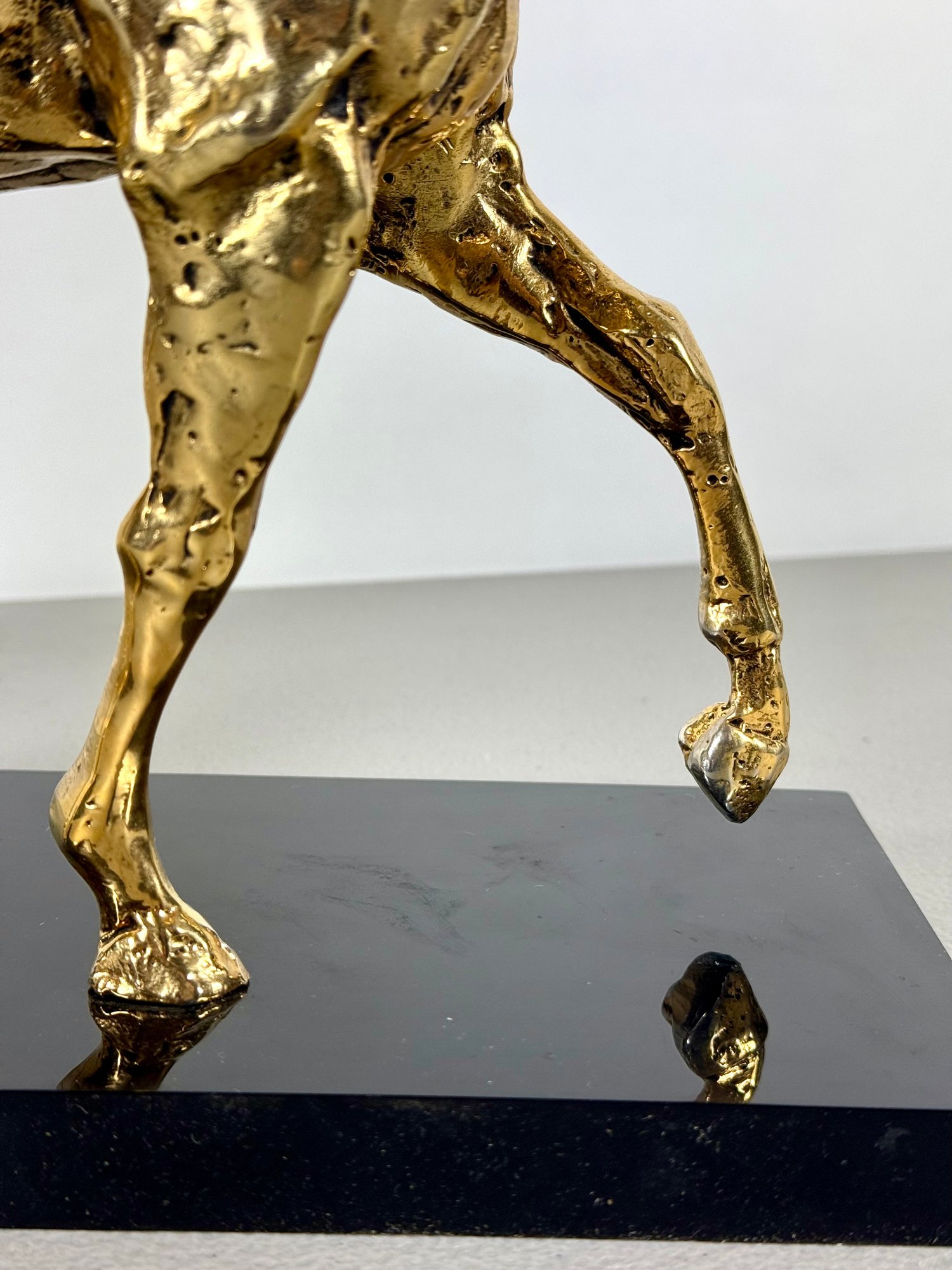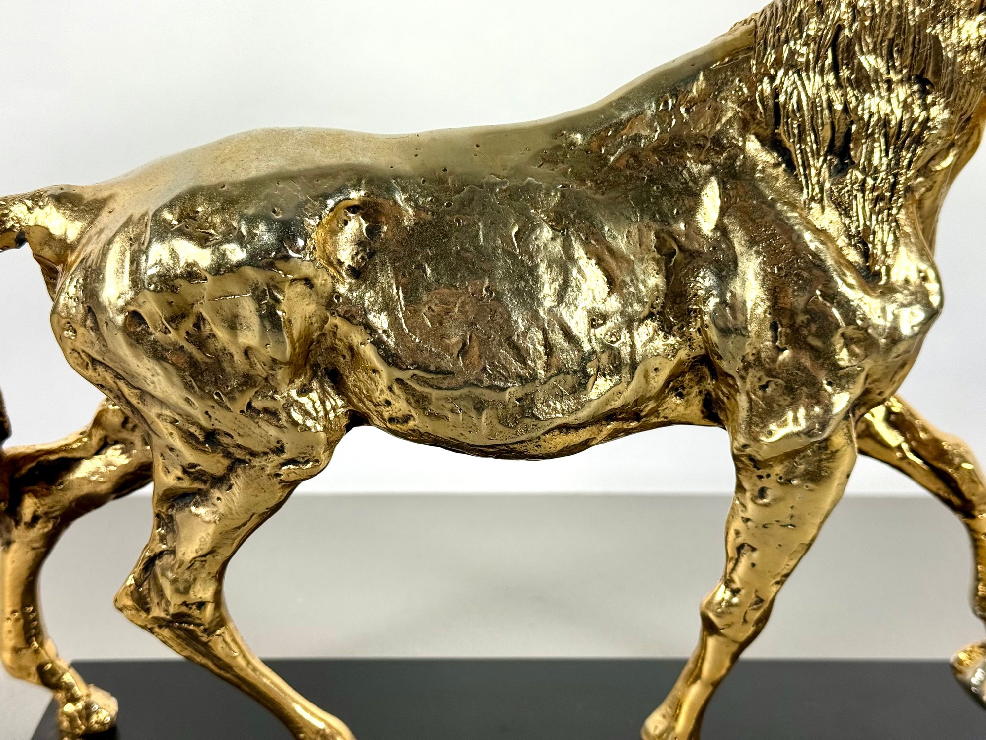 A Hefty Gilted Bronze Horse on Stone Base -1950s
