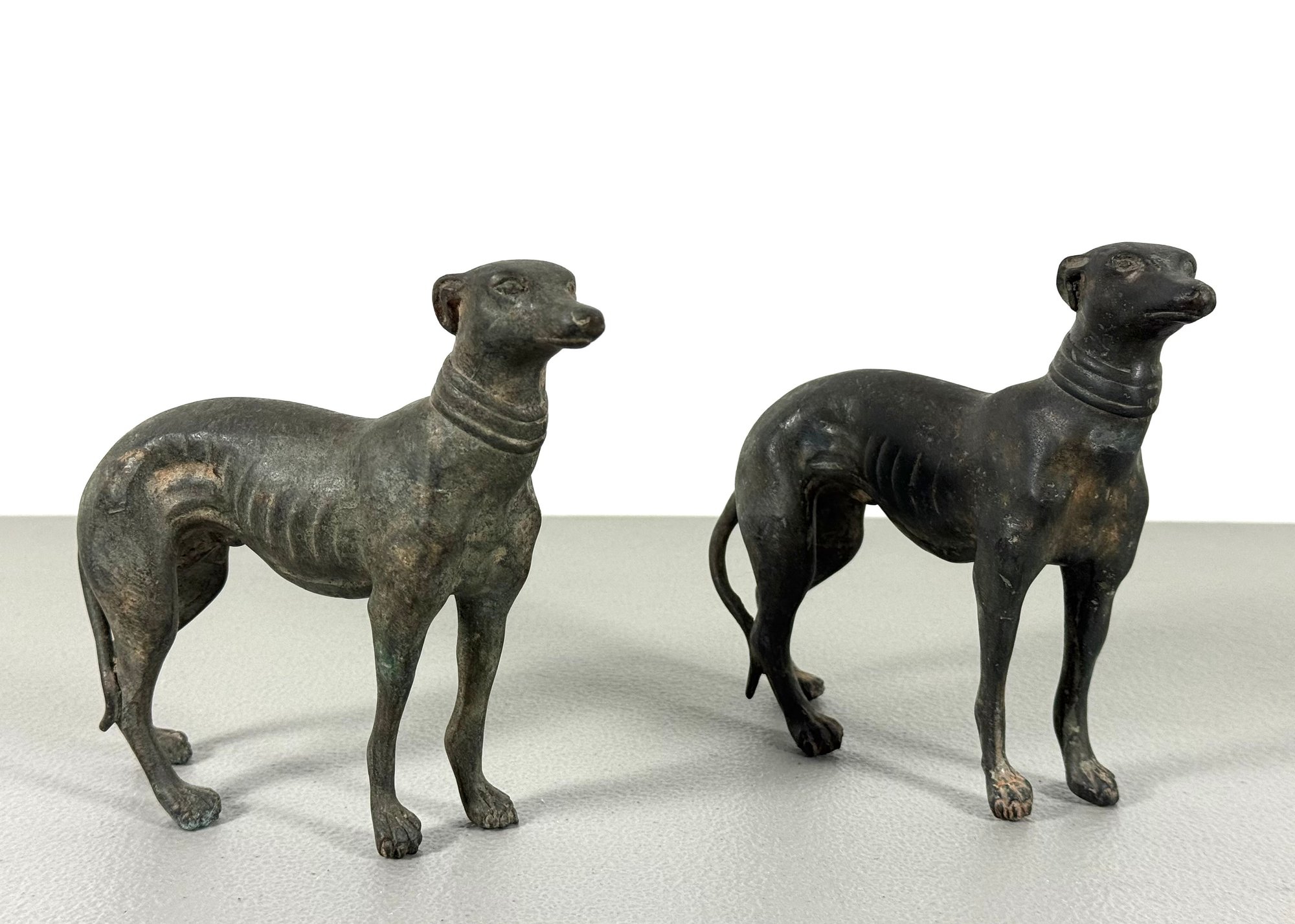 A Lovely Pair of 1880-1930 French Bronze Greyhound Sculptures