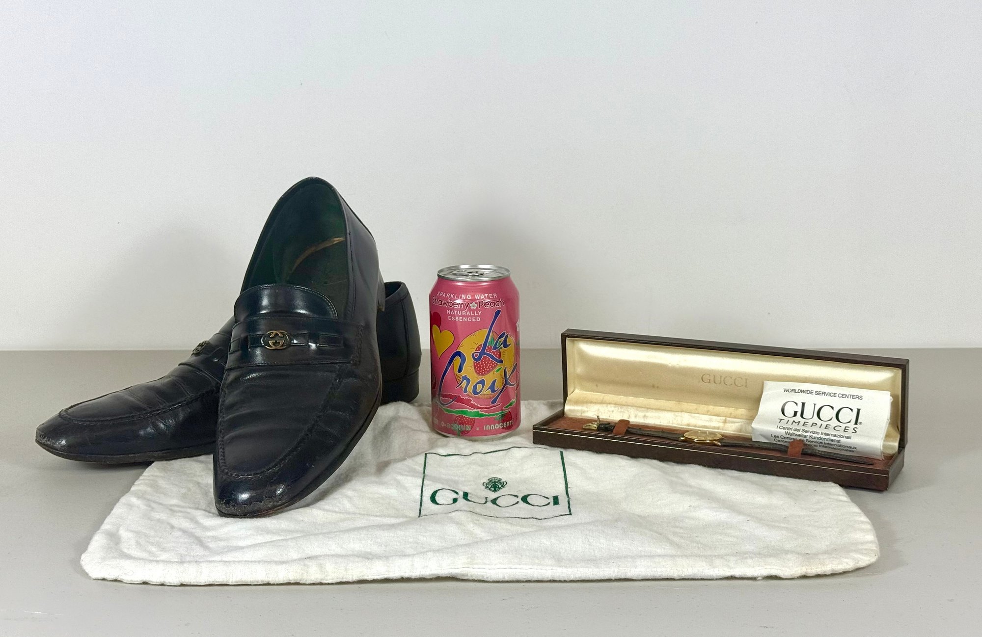 Pair of Gucci Leather Loafers & Wrist Watch #3000L