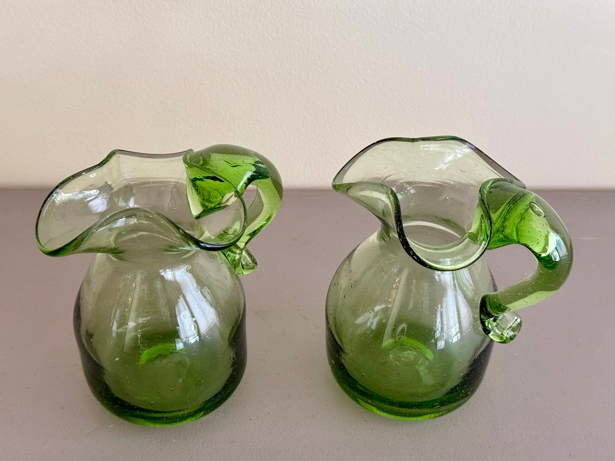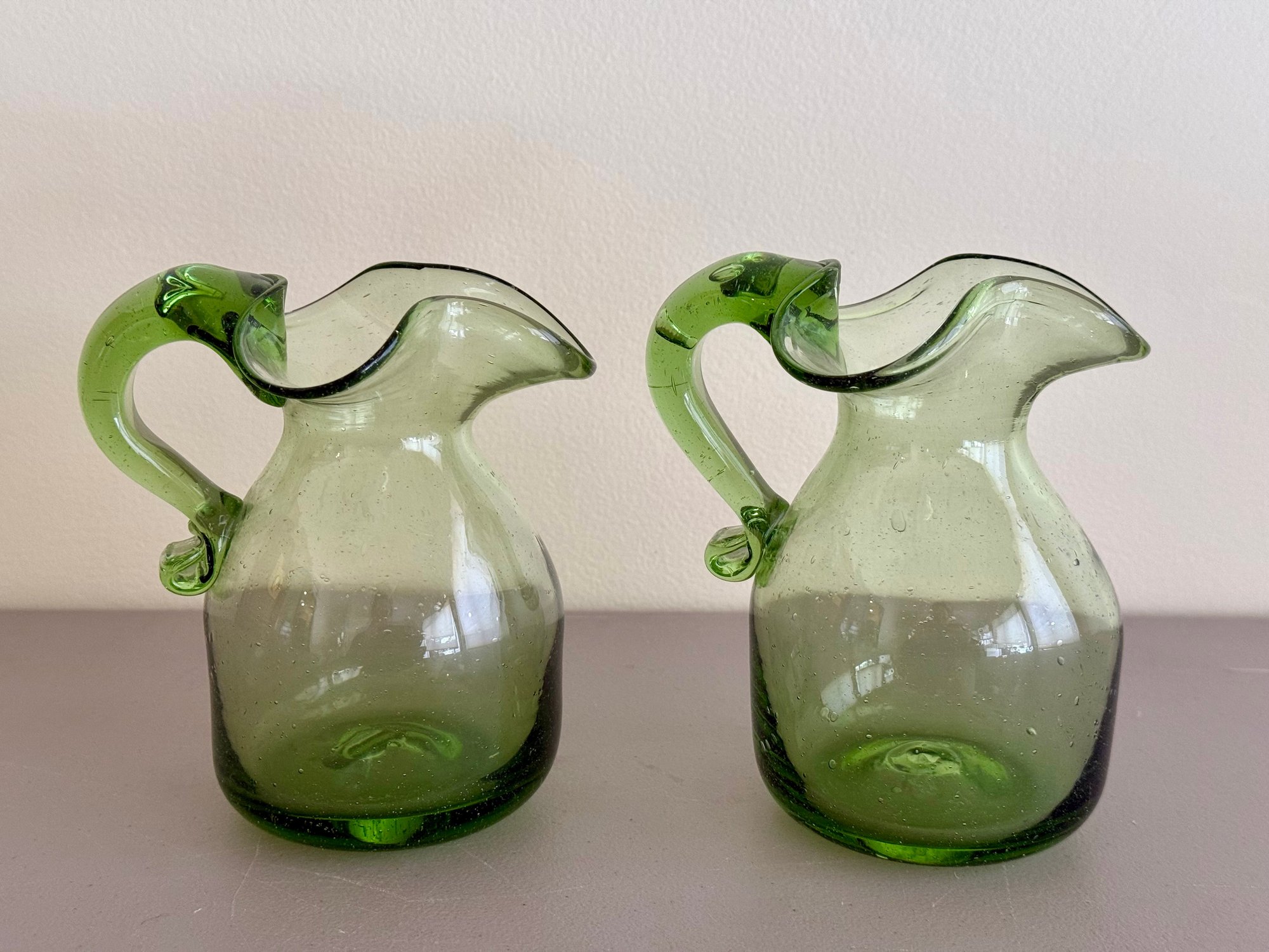Pair of Mid-Century Art Glass Blown Pitchers
