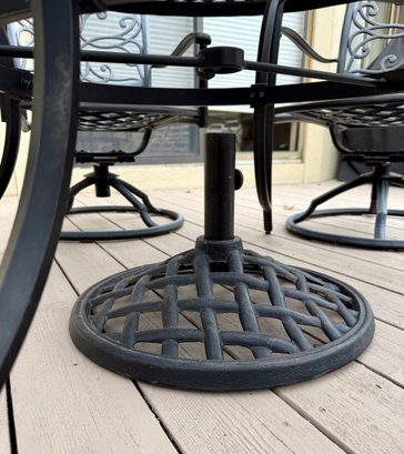 Cast Aluminum Round Patio Table, Chairs & Umbrella