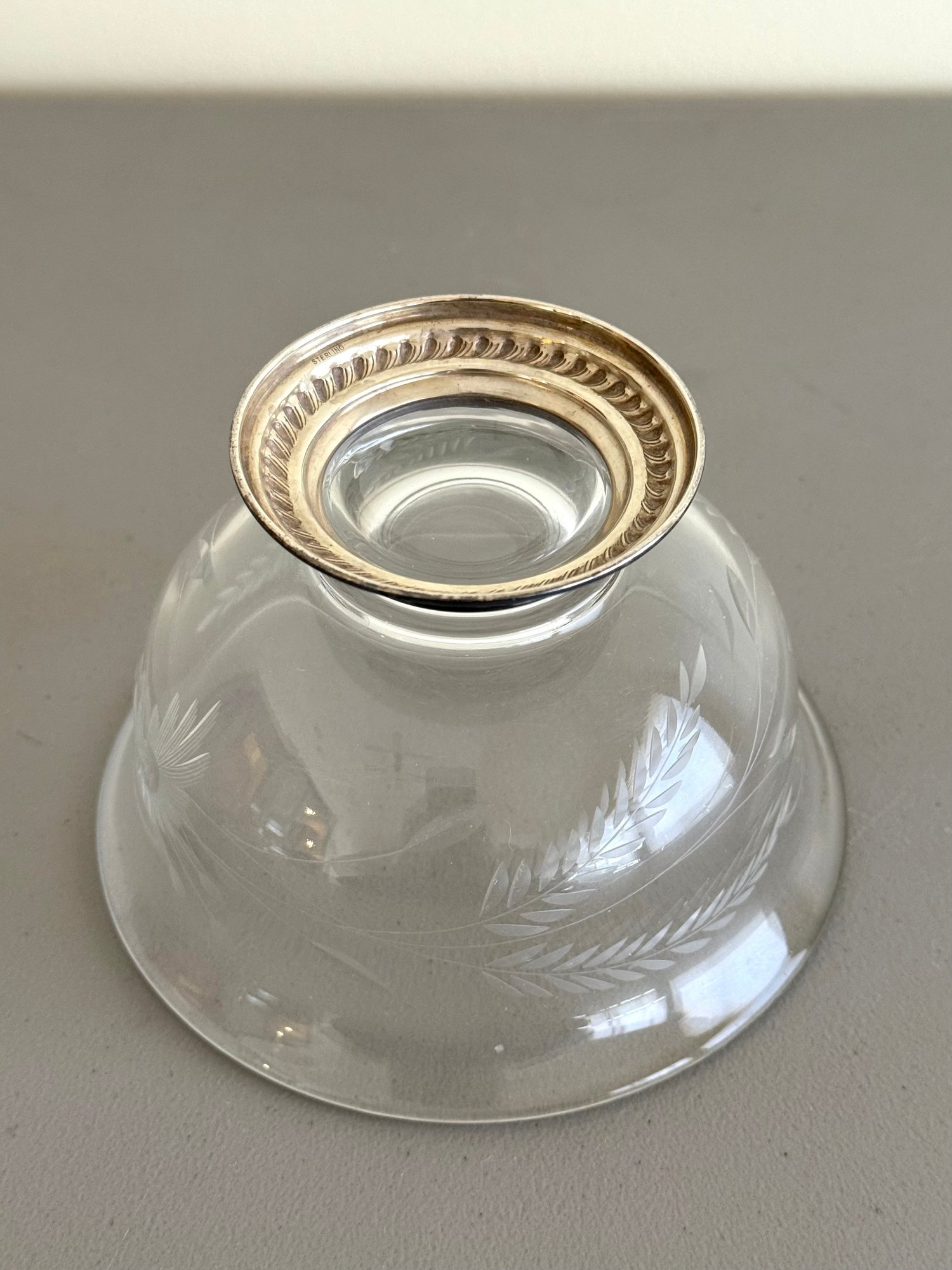 Etched Glass Vase & Sterling Silver Rimmed Bowl