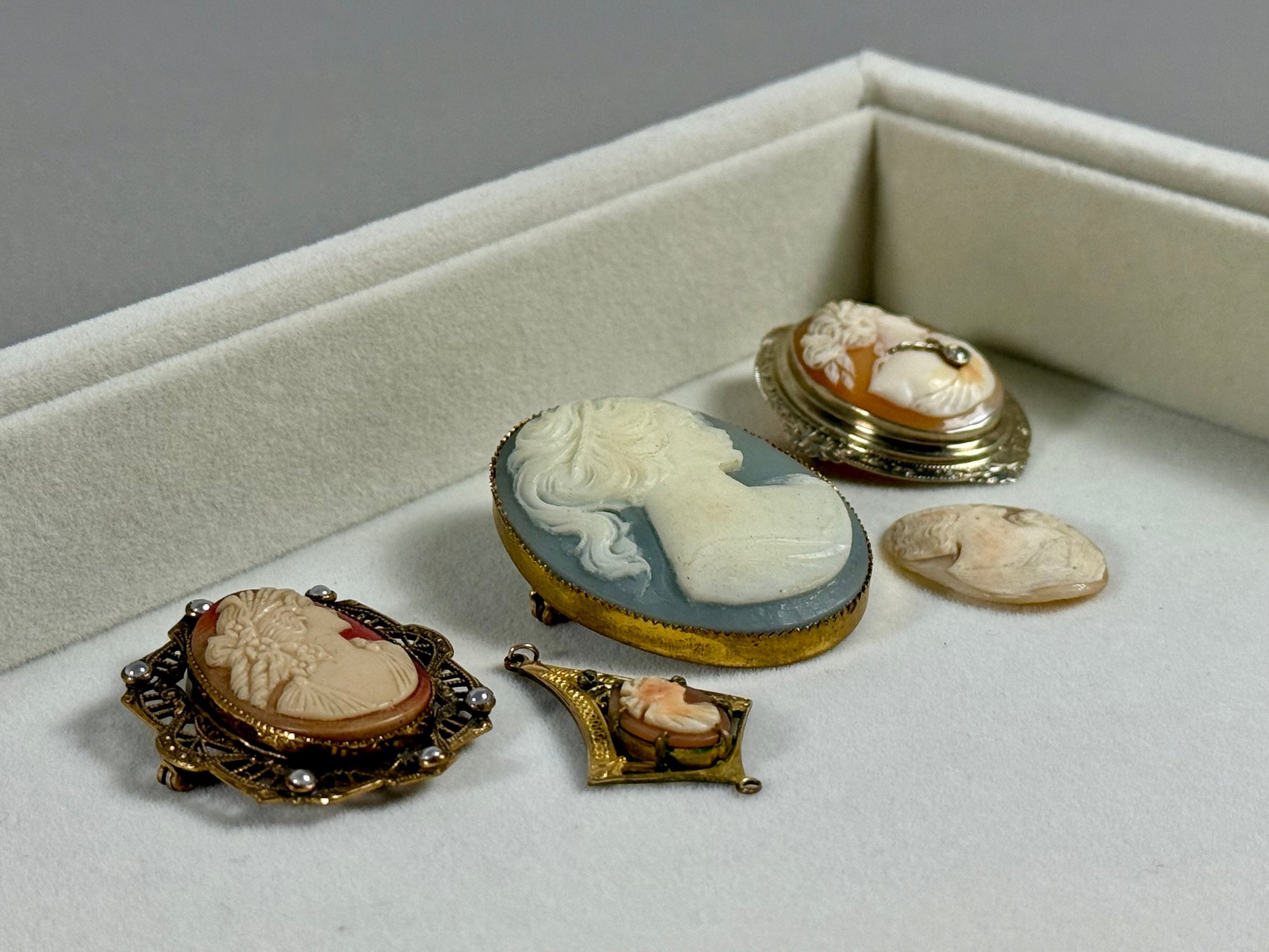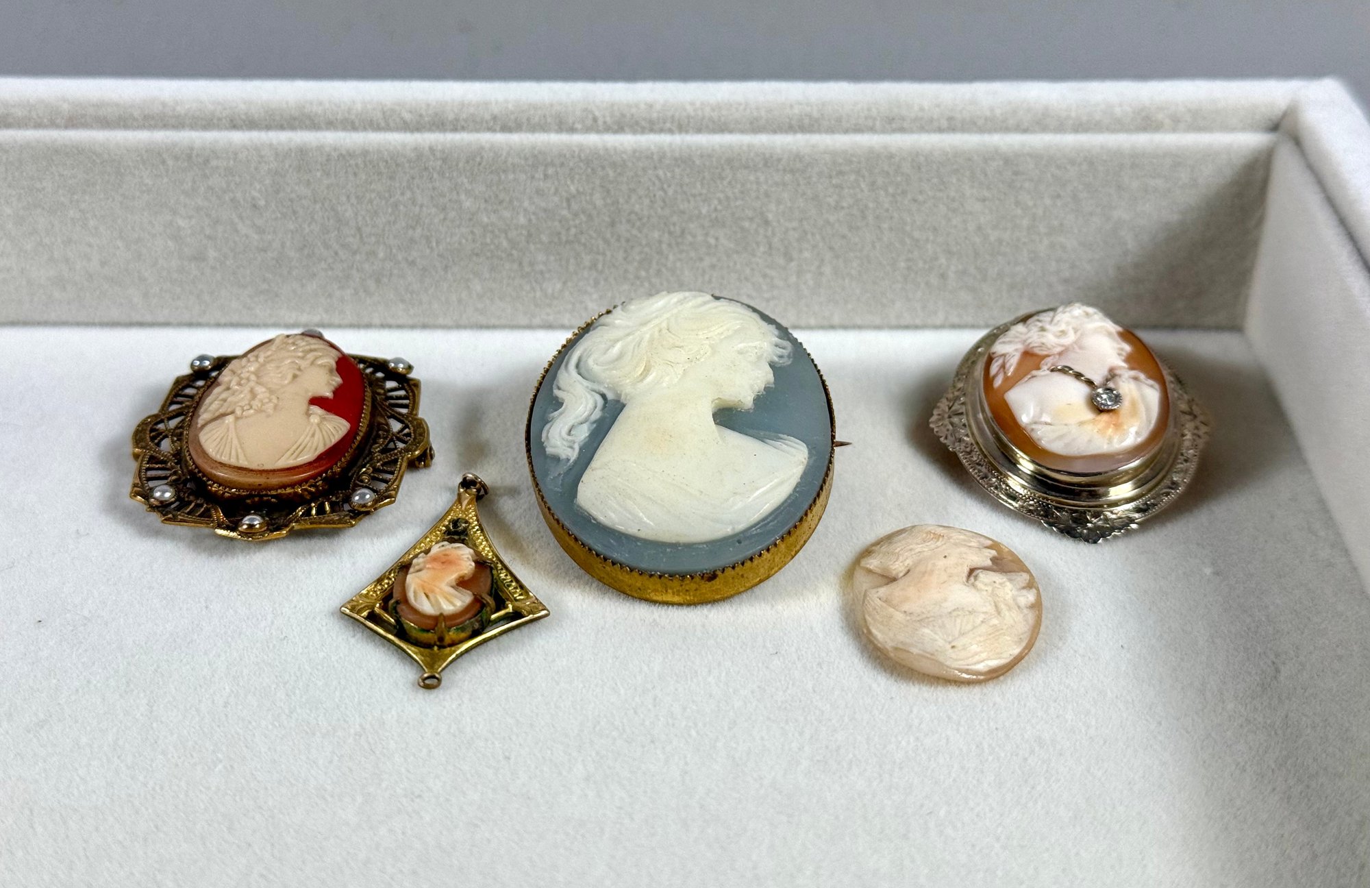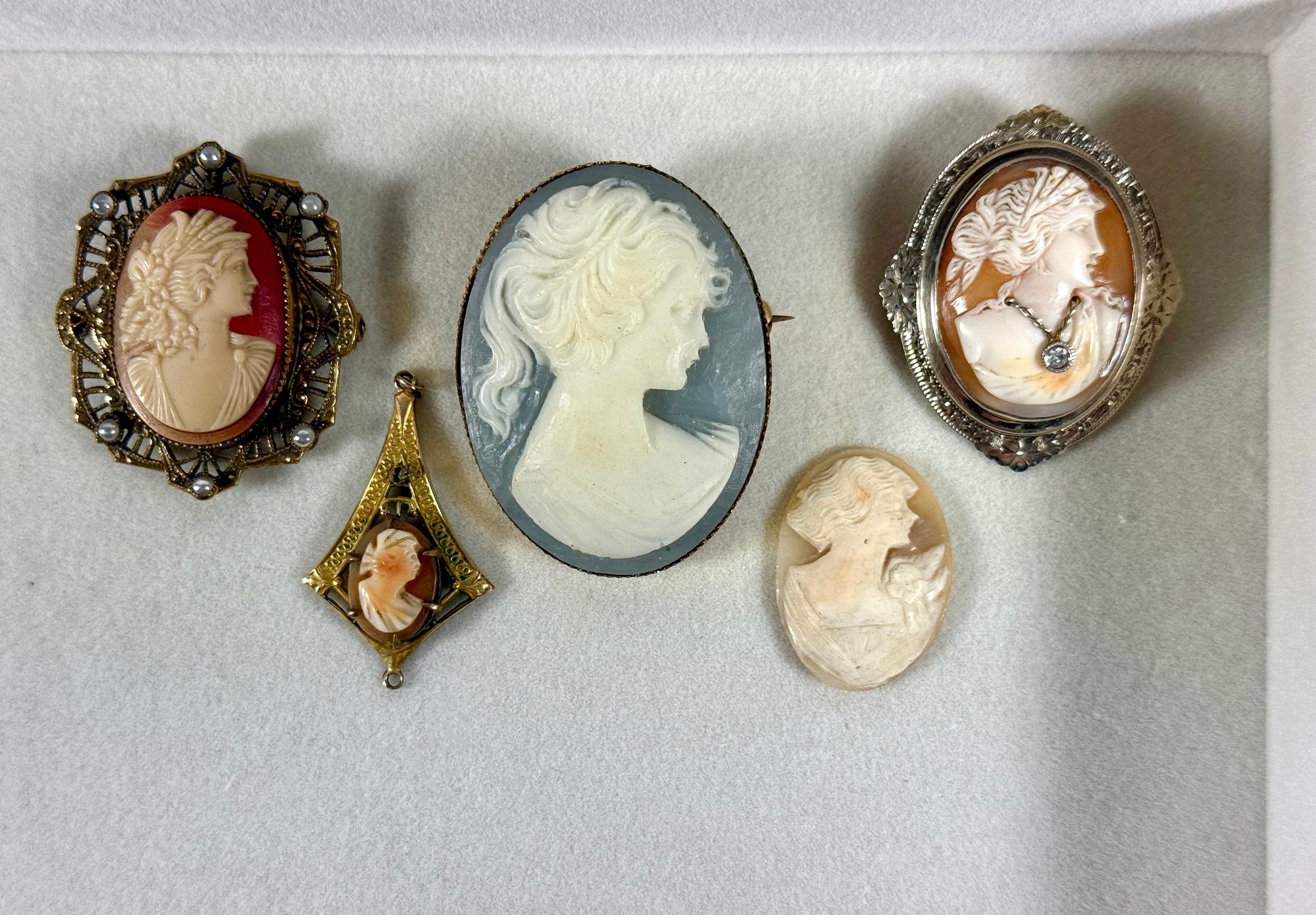 Five Antique Cameo Brooches