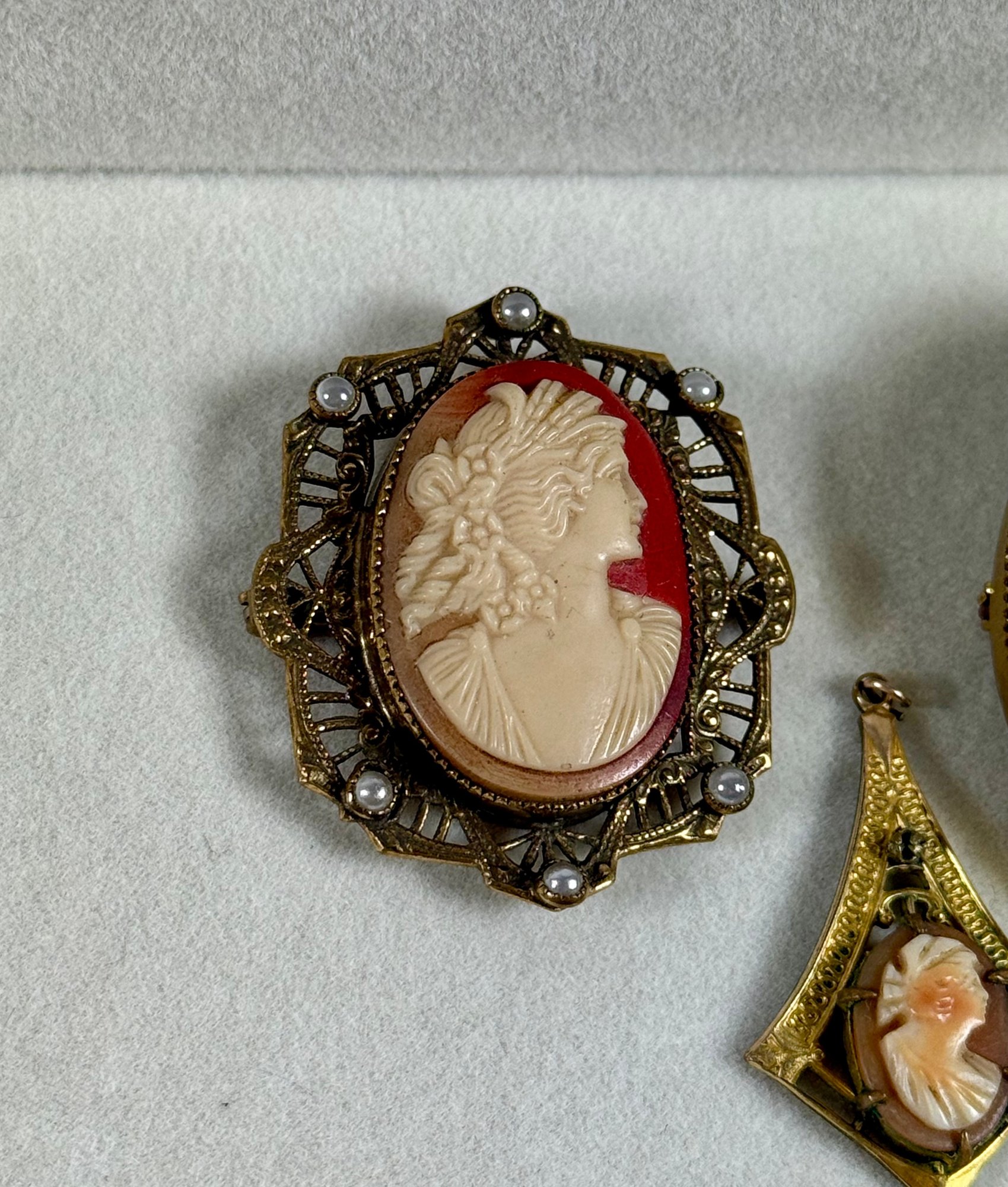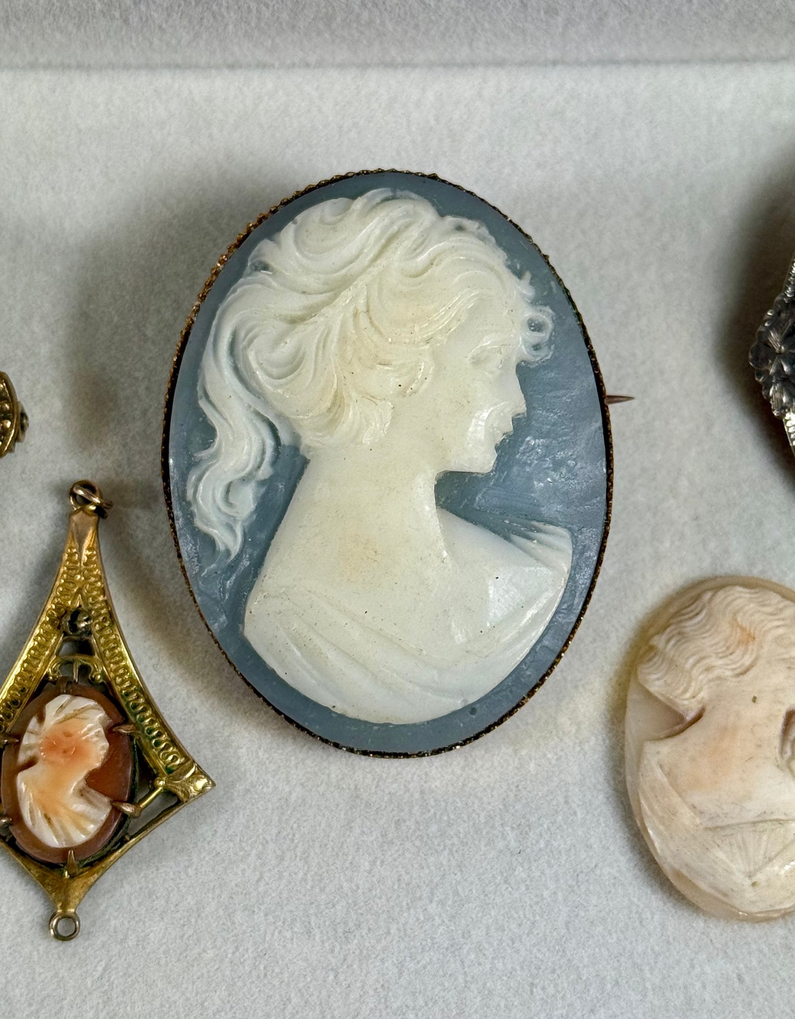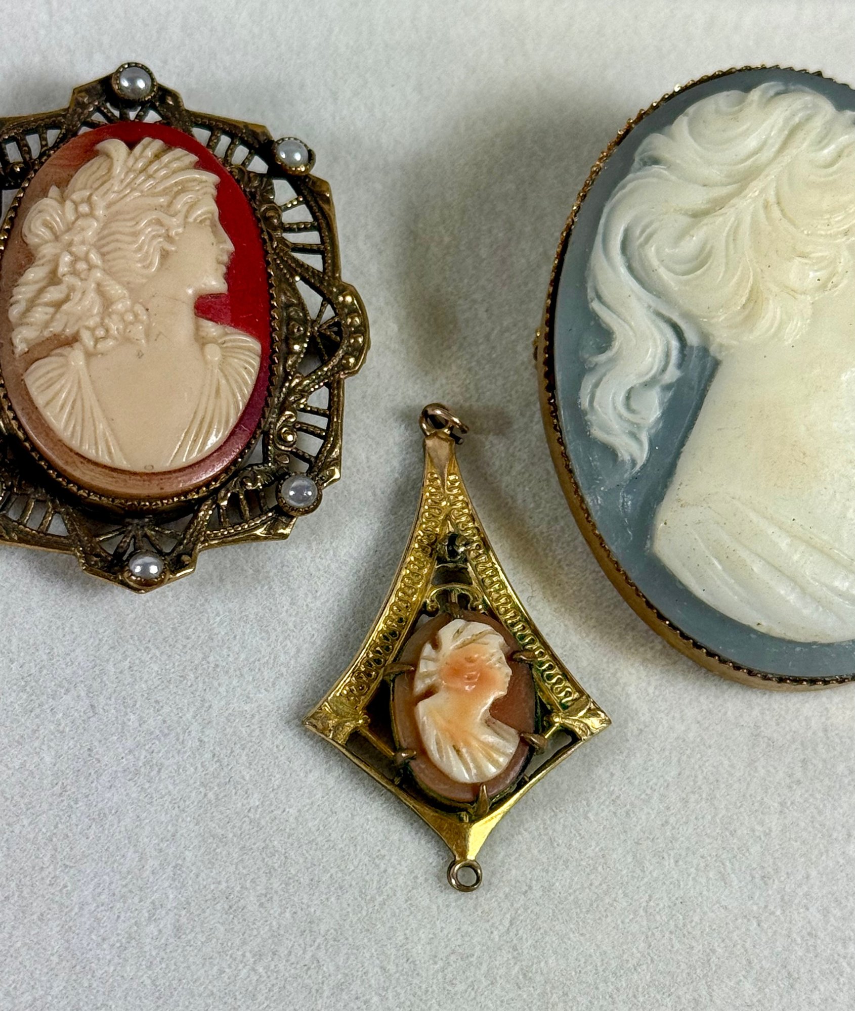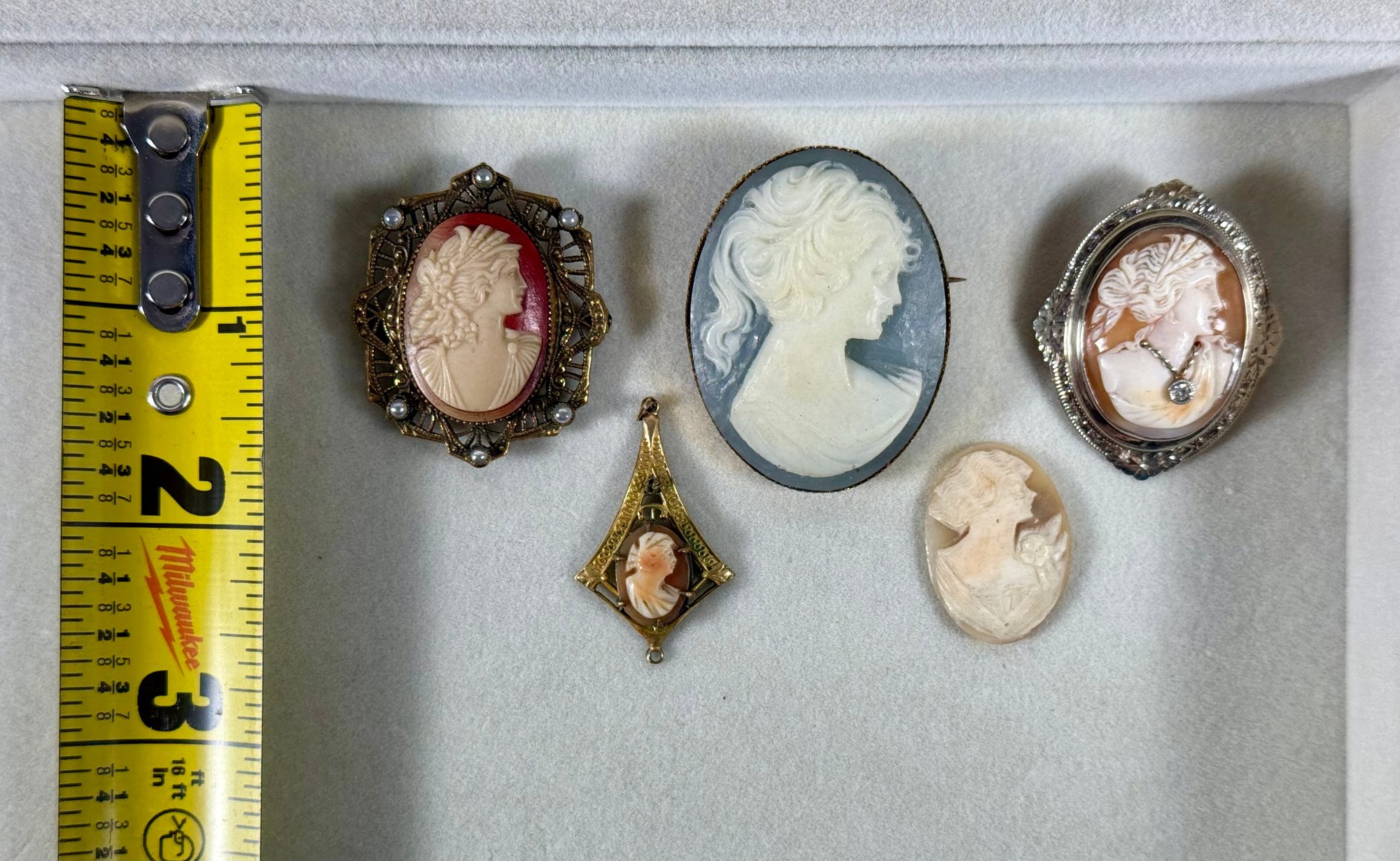 Five Antique Cameo Brooches